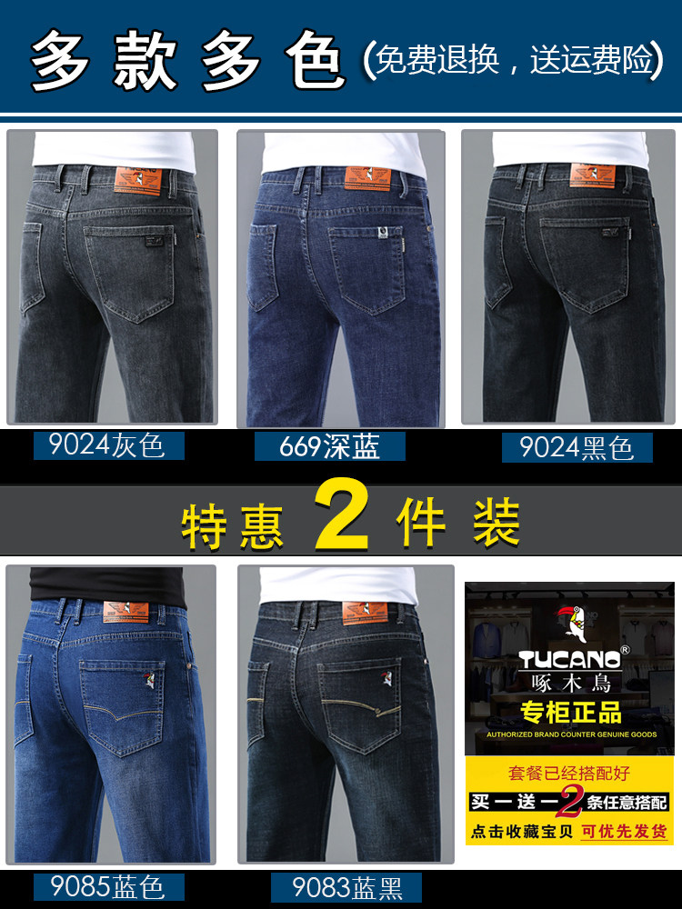 啄木鳥牛仔褲男秋冬季2025修身直筒寬鬆加絨保暖潮牌青年休閒長褲