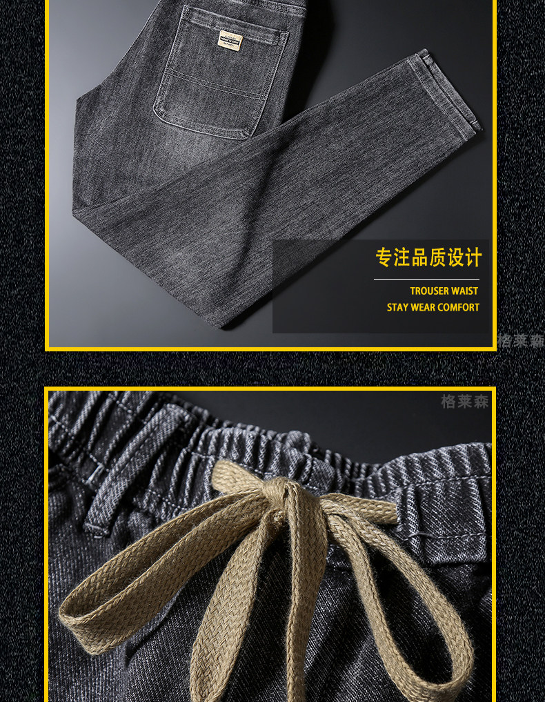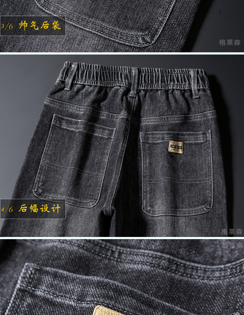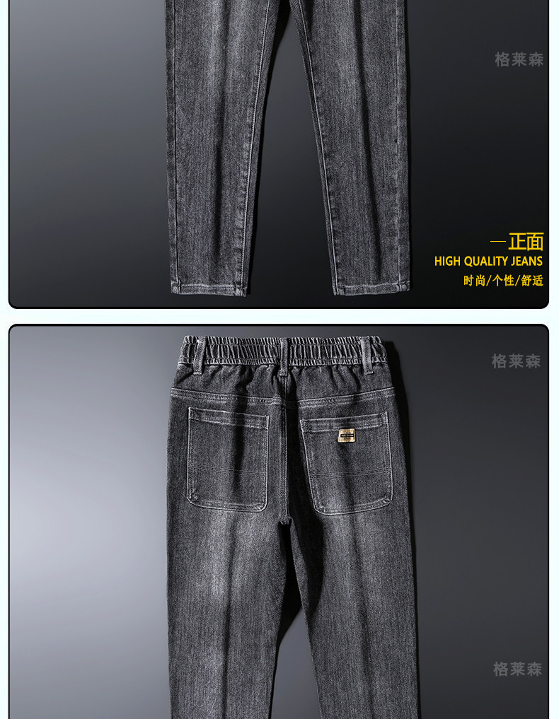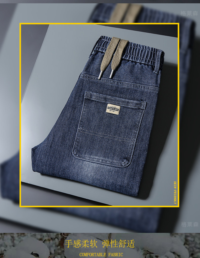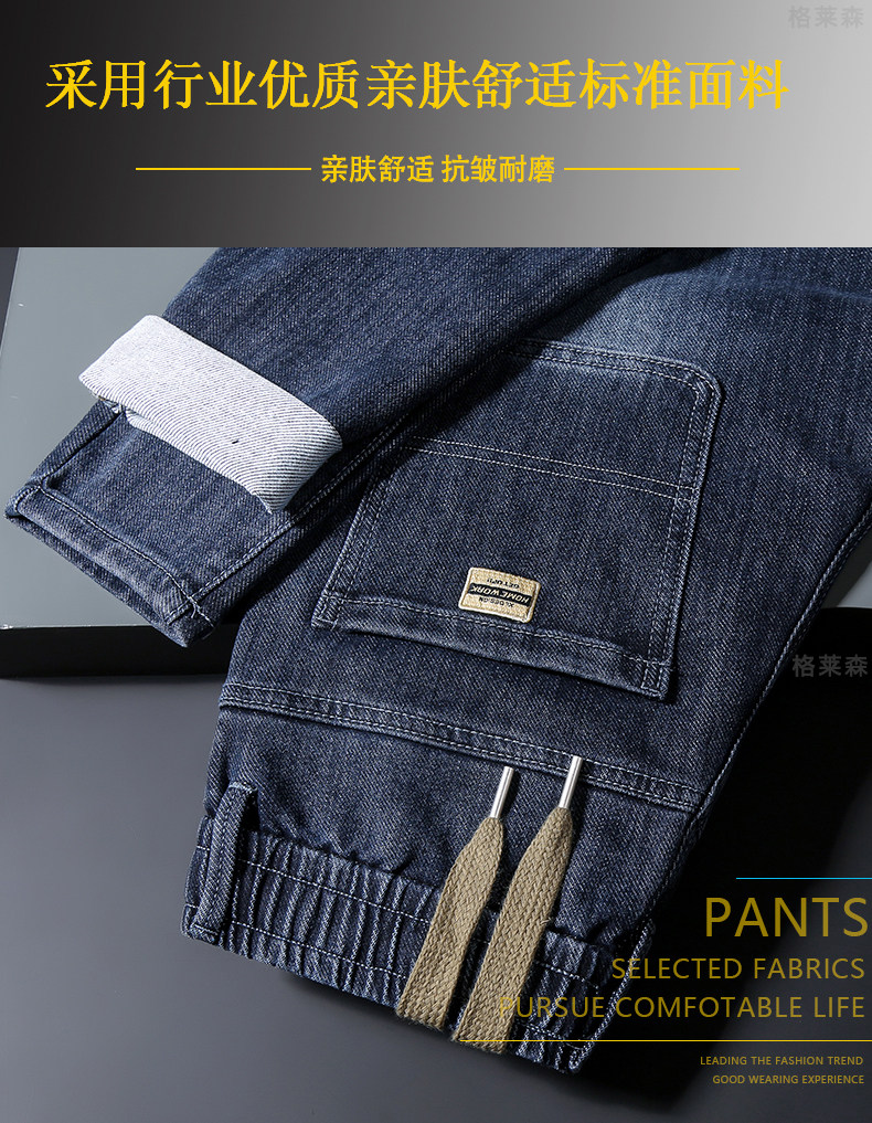秋冬高級牛仔褲男士休閒寬鬆緊腰長褲子小直筒彈力加絨厚款褲子男