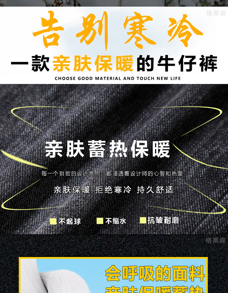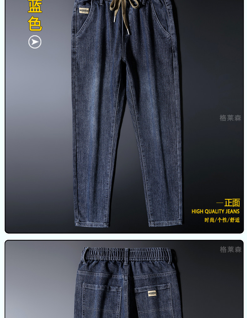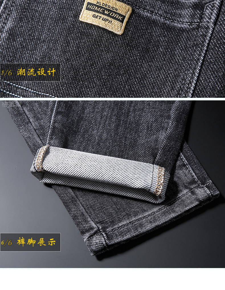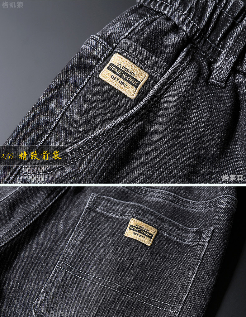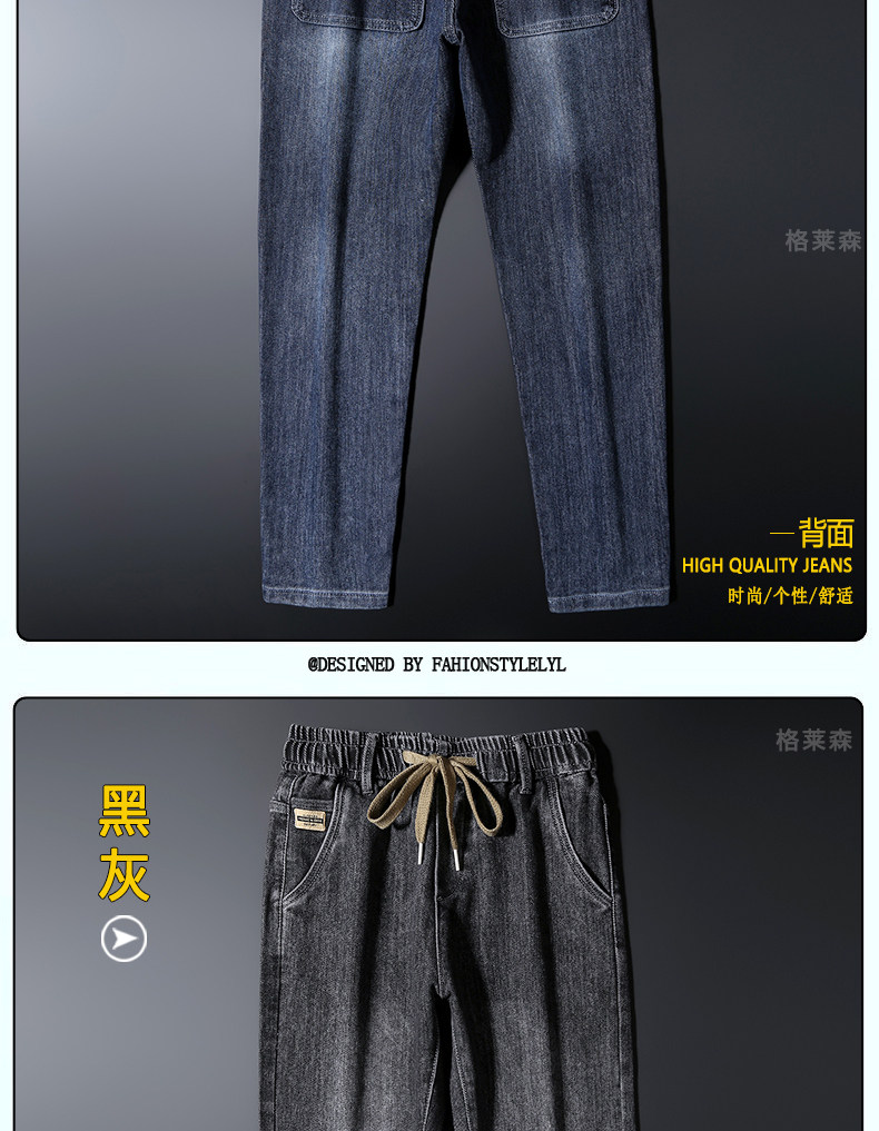 秋冬高級牛仔褲男士休閒寬鬆緊腰長褲子小直筒彈力加絨厚款褲子男