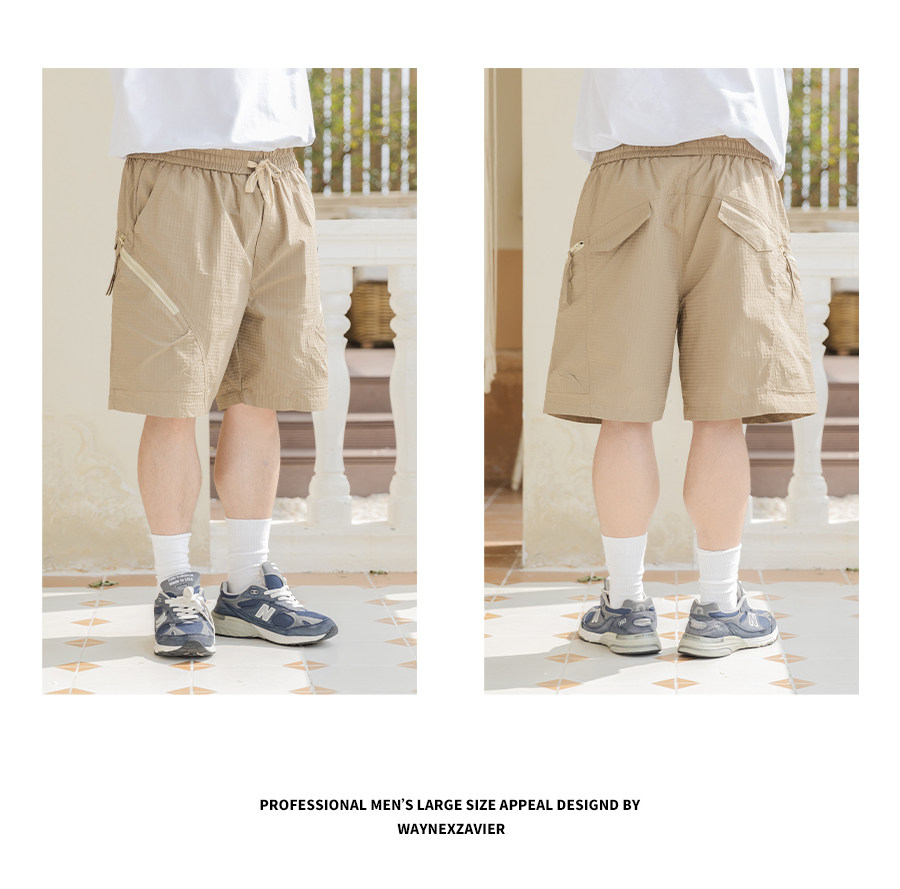 韋恩澤維爾大碼水洗工裝短褲男寬鬆夏季加肥加大速乾五分褲子8808