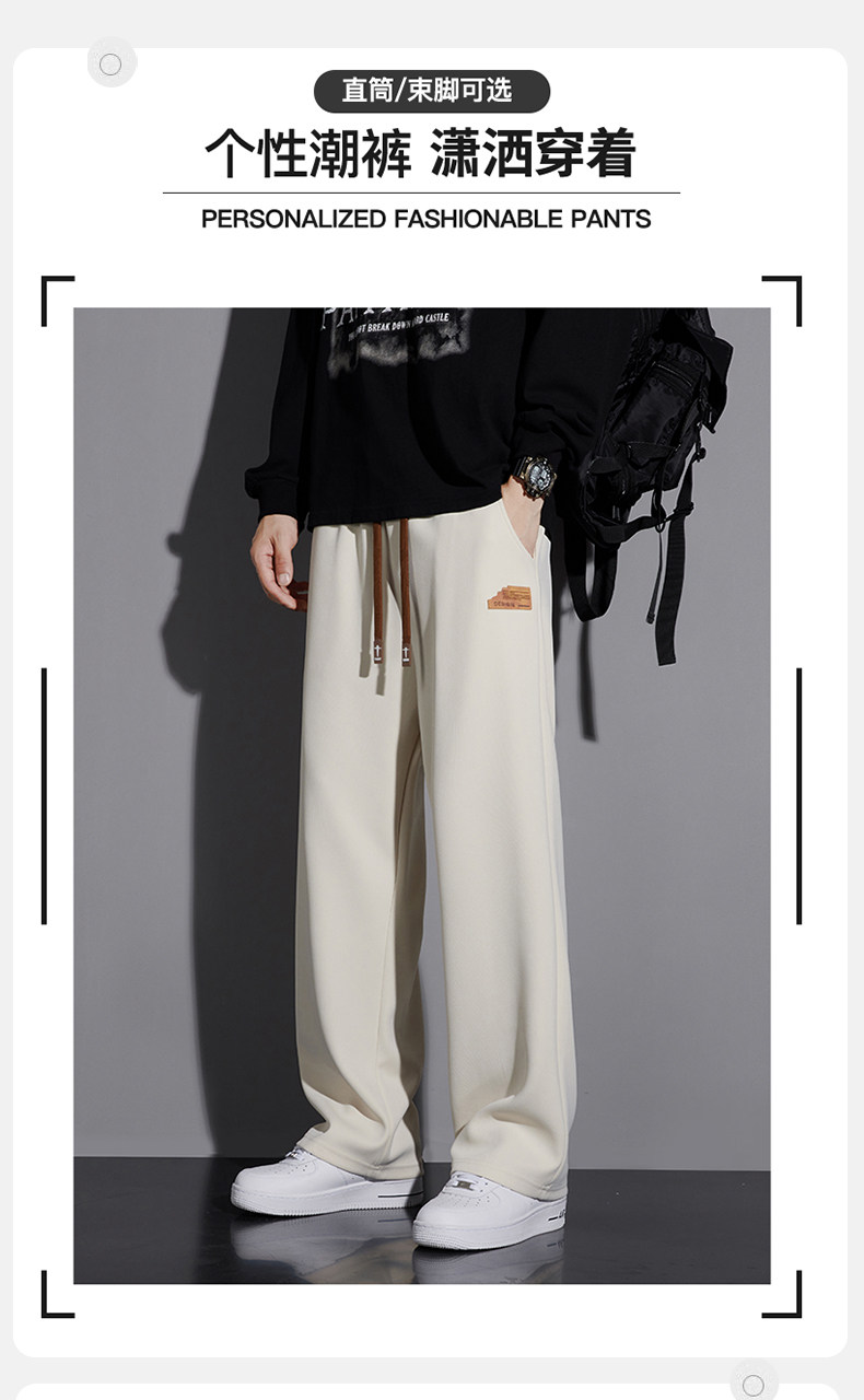 Genio Lamode秋季灰色休閒褲子男生女士同款寬鬆衛褲運動直筒加絨