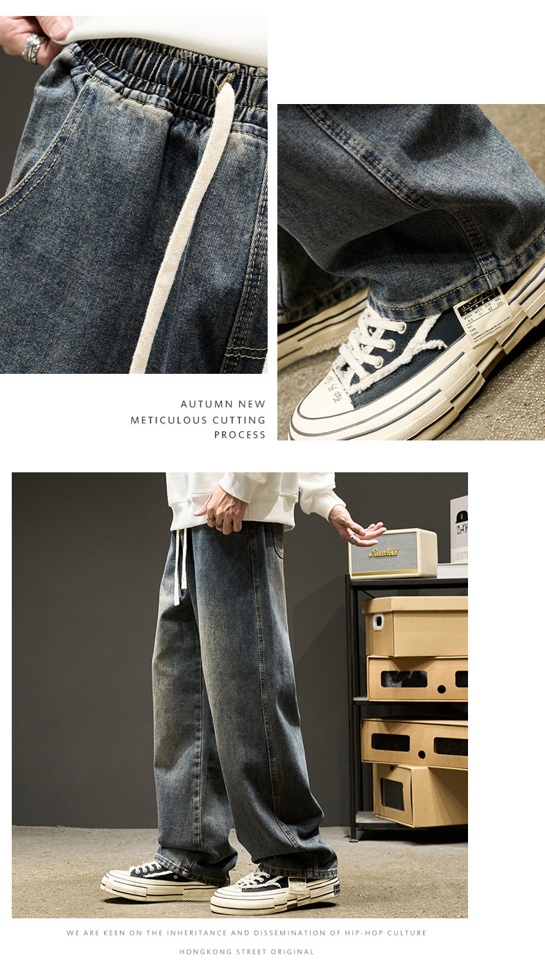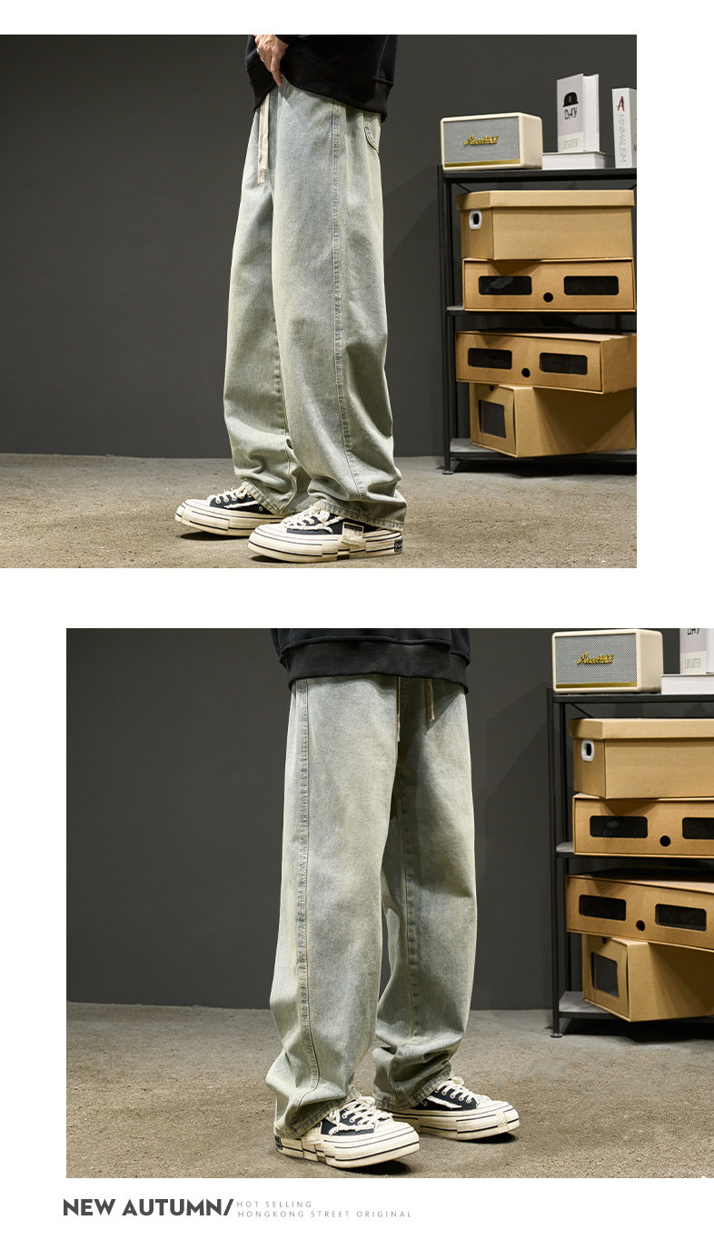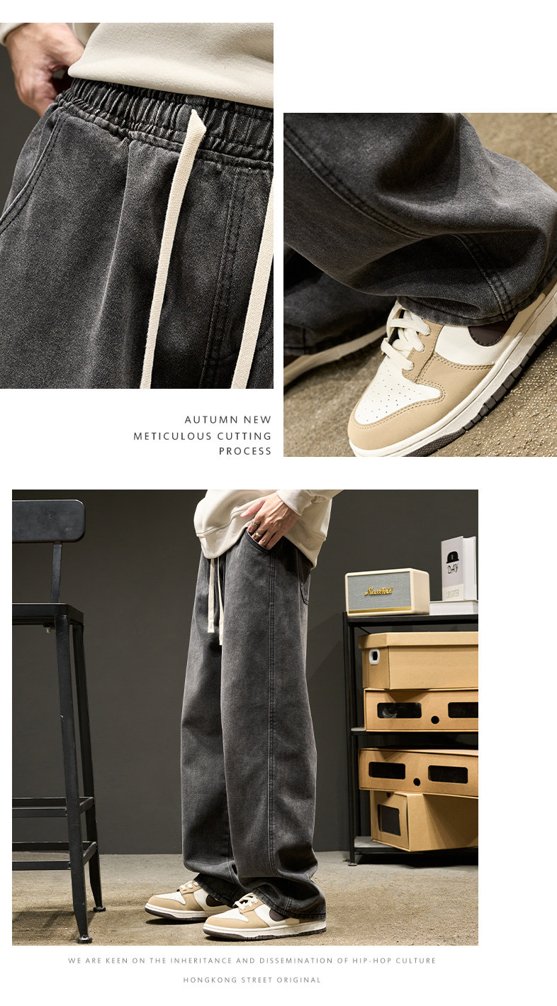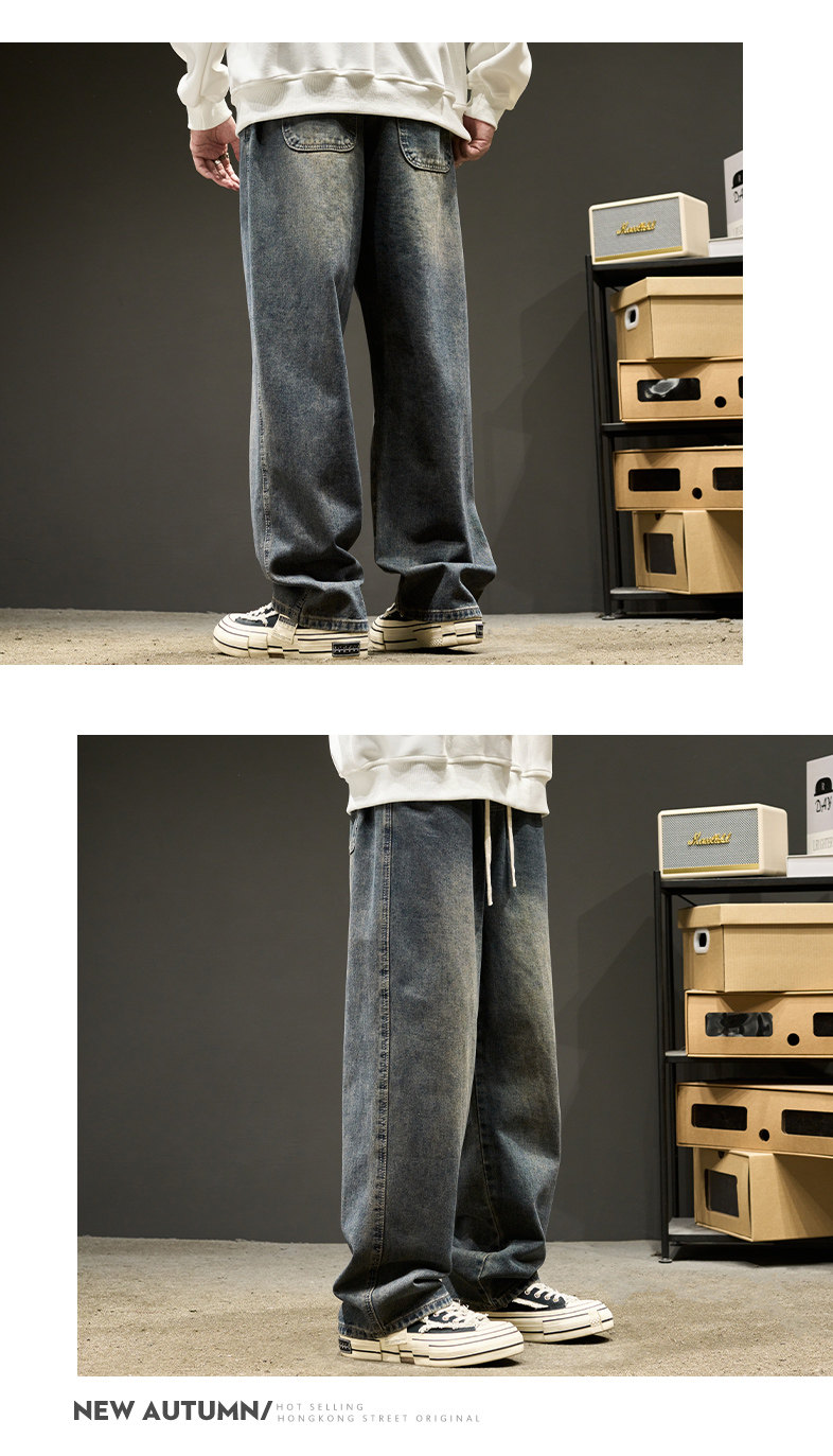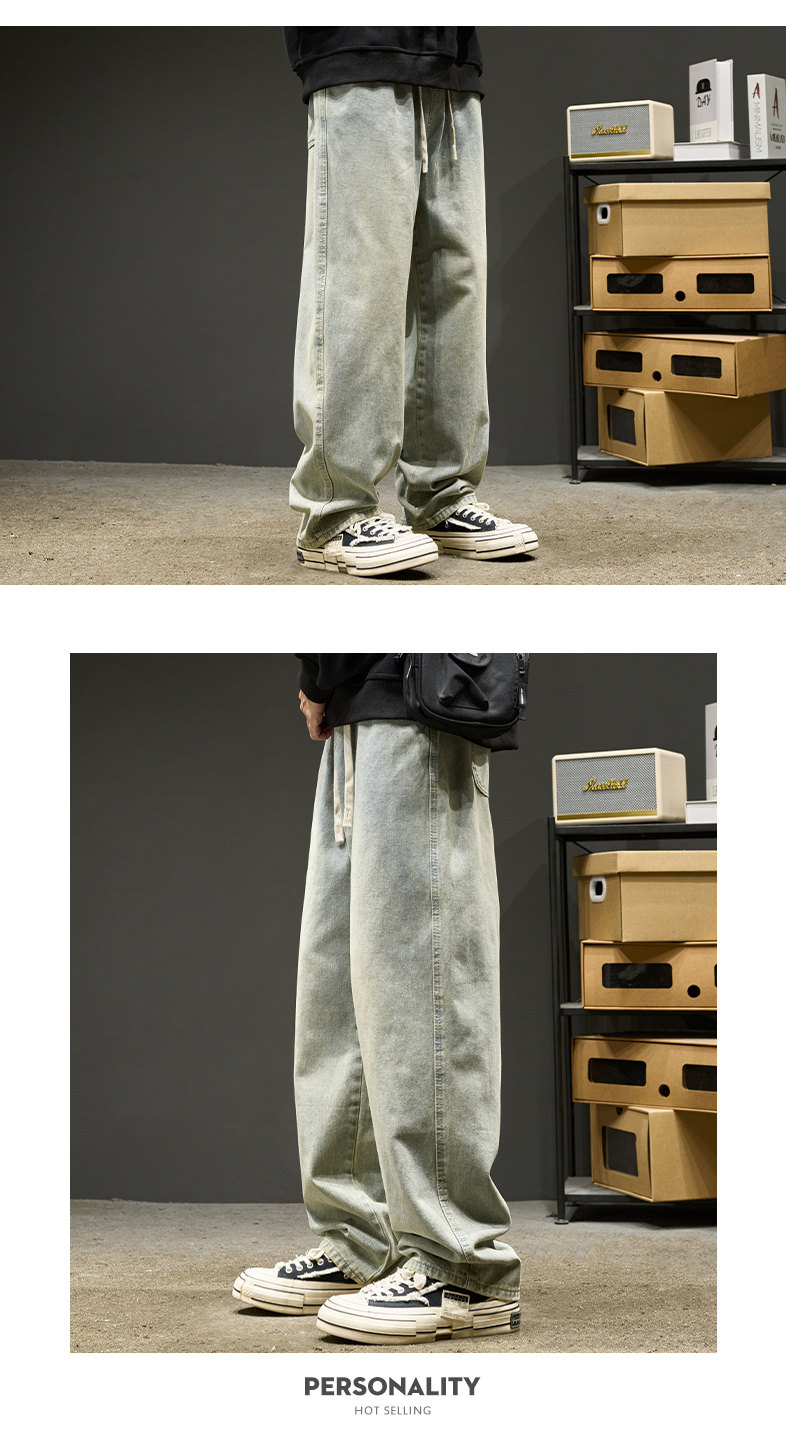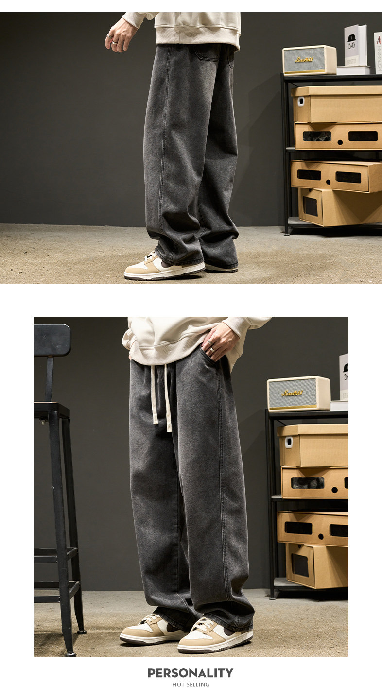 直筒牛仔褲男士春秋款美式水洗寬鬆休閒長褲夏季男生褲子春季男褲