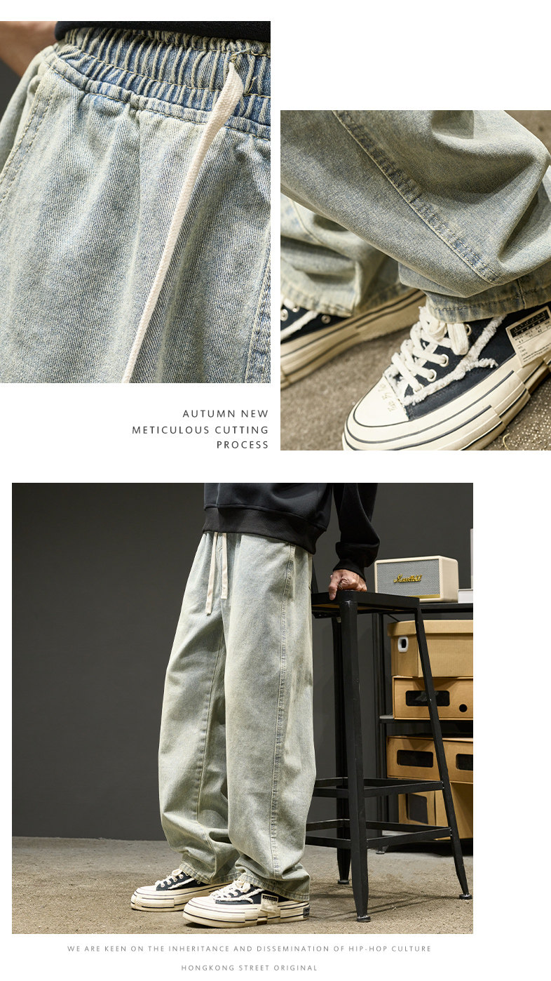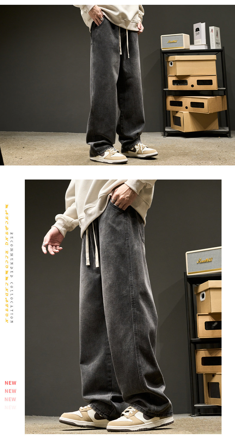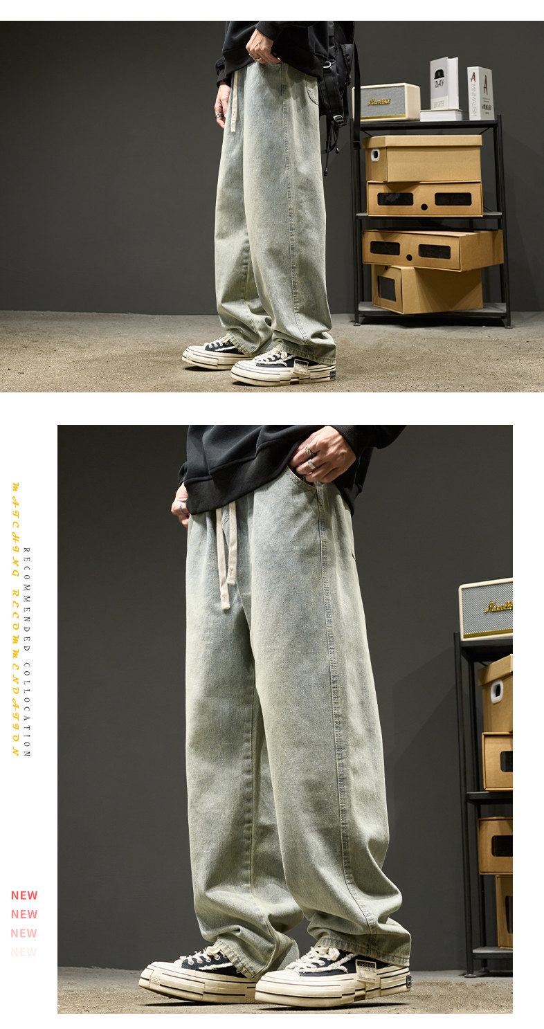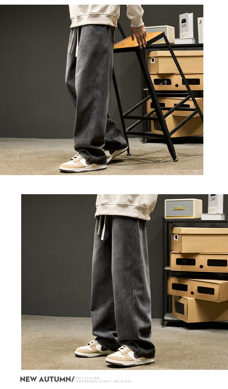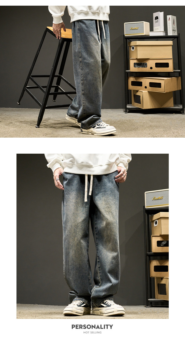 直筒牛仔褲男士春秋款美式水洗寬鬆休閒長褲夏季男生褲子春季男褲