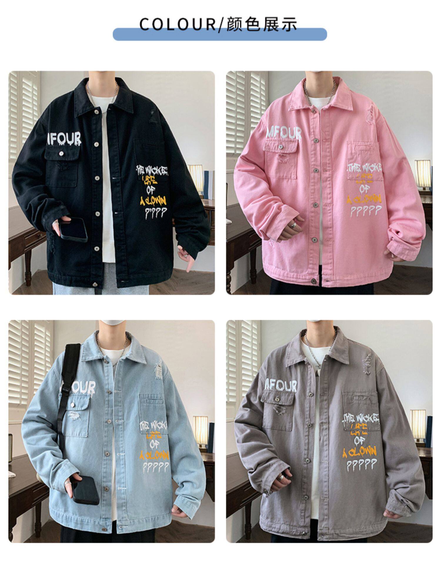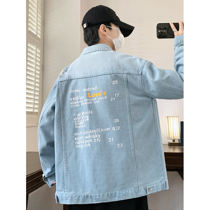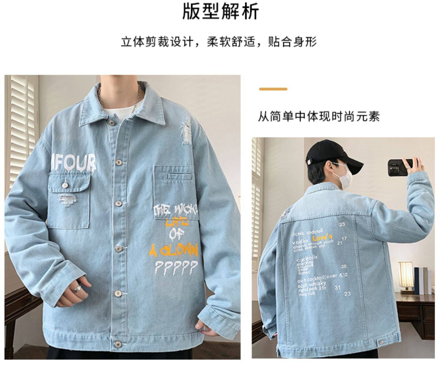 牛仔外套男高級感痞帥秋季新款水洗做舊工裝夾克男青少年潮流褂子