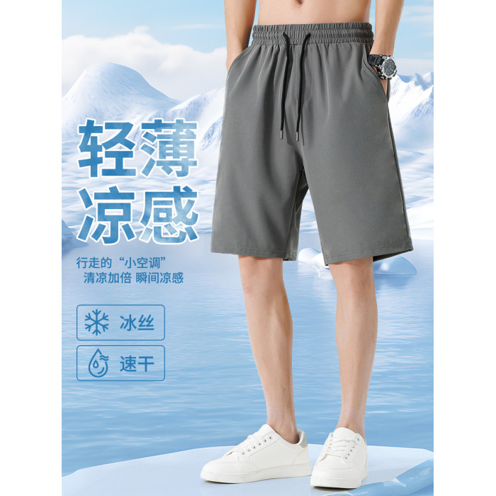 廻力運動短褲男夏季跑步速乾健身冰絲褲子寬鬆大碼休閒男士五分褲