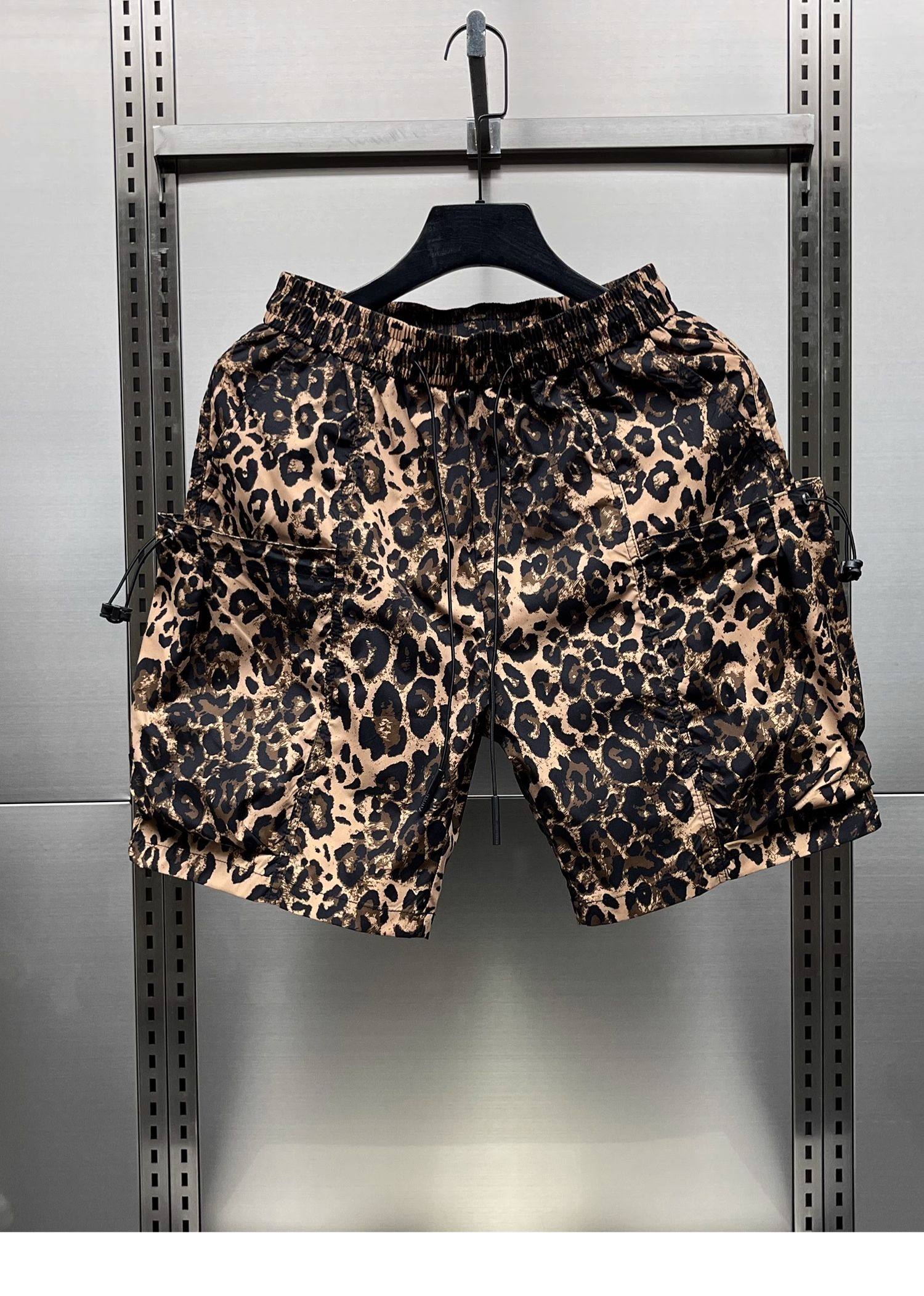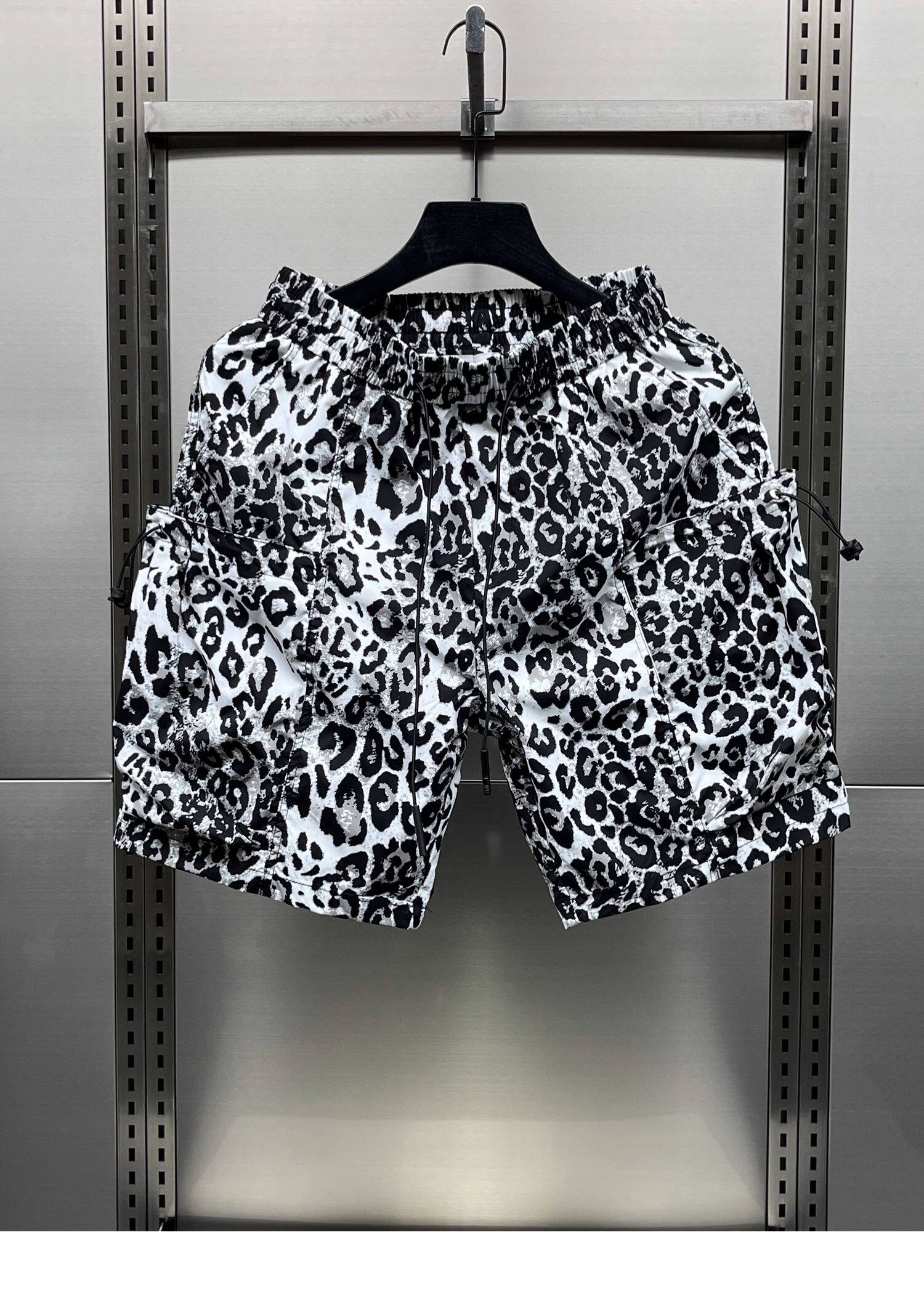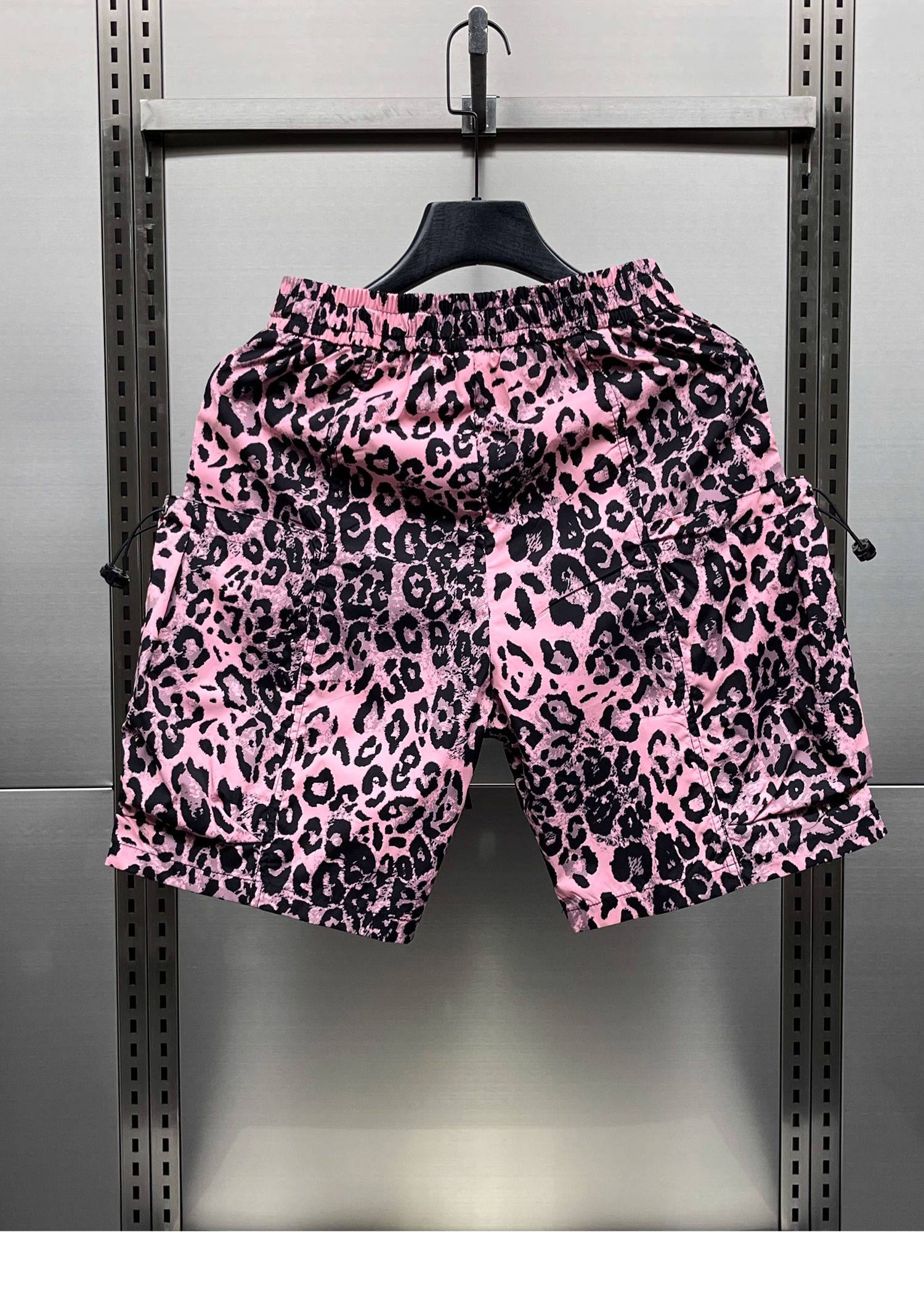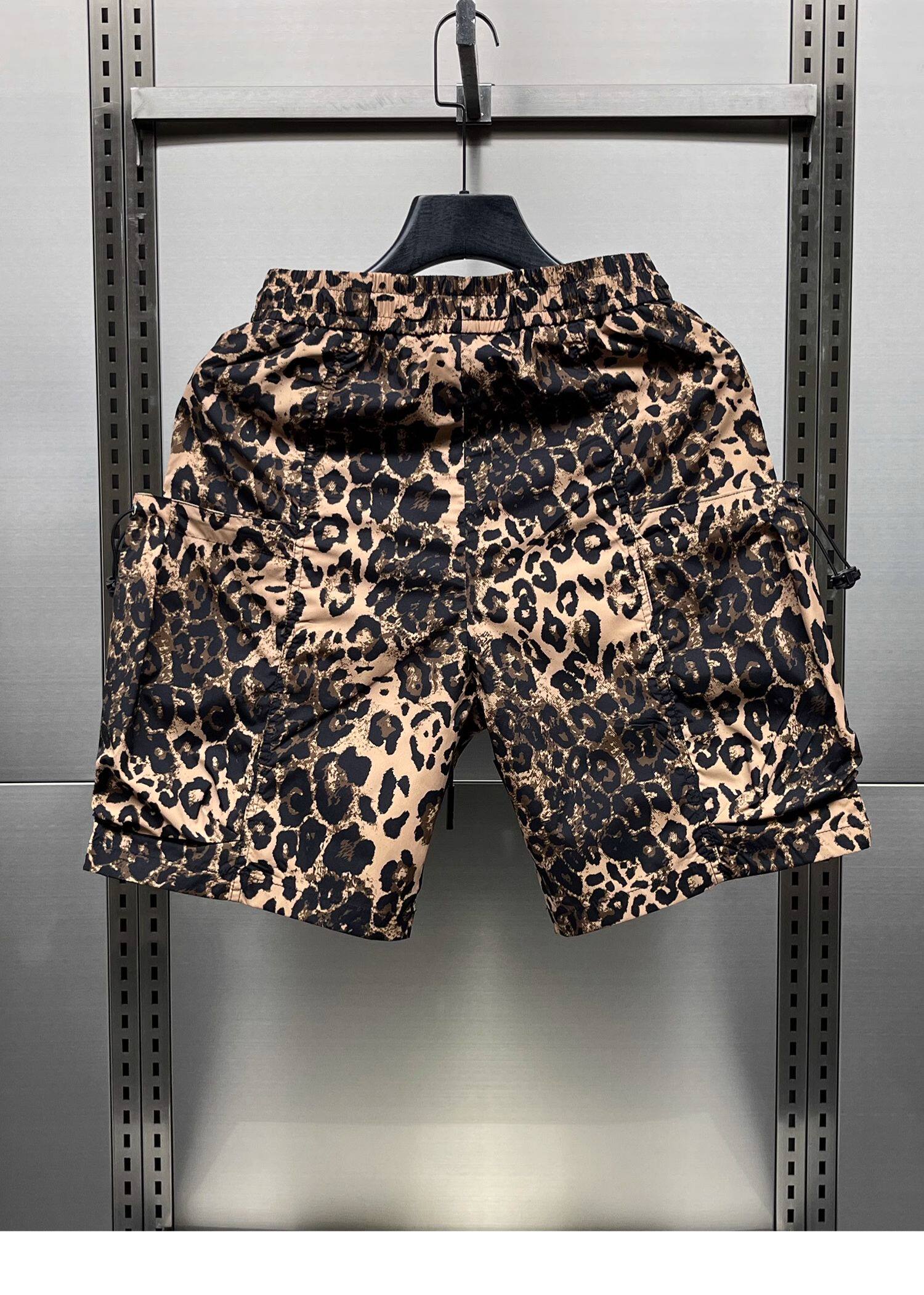 2025夏季男士速乾短褲潮流豹紋寬鬆大口袋褲子工裝美式五分沙灘褲