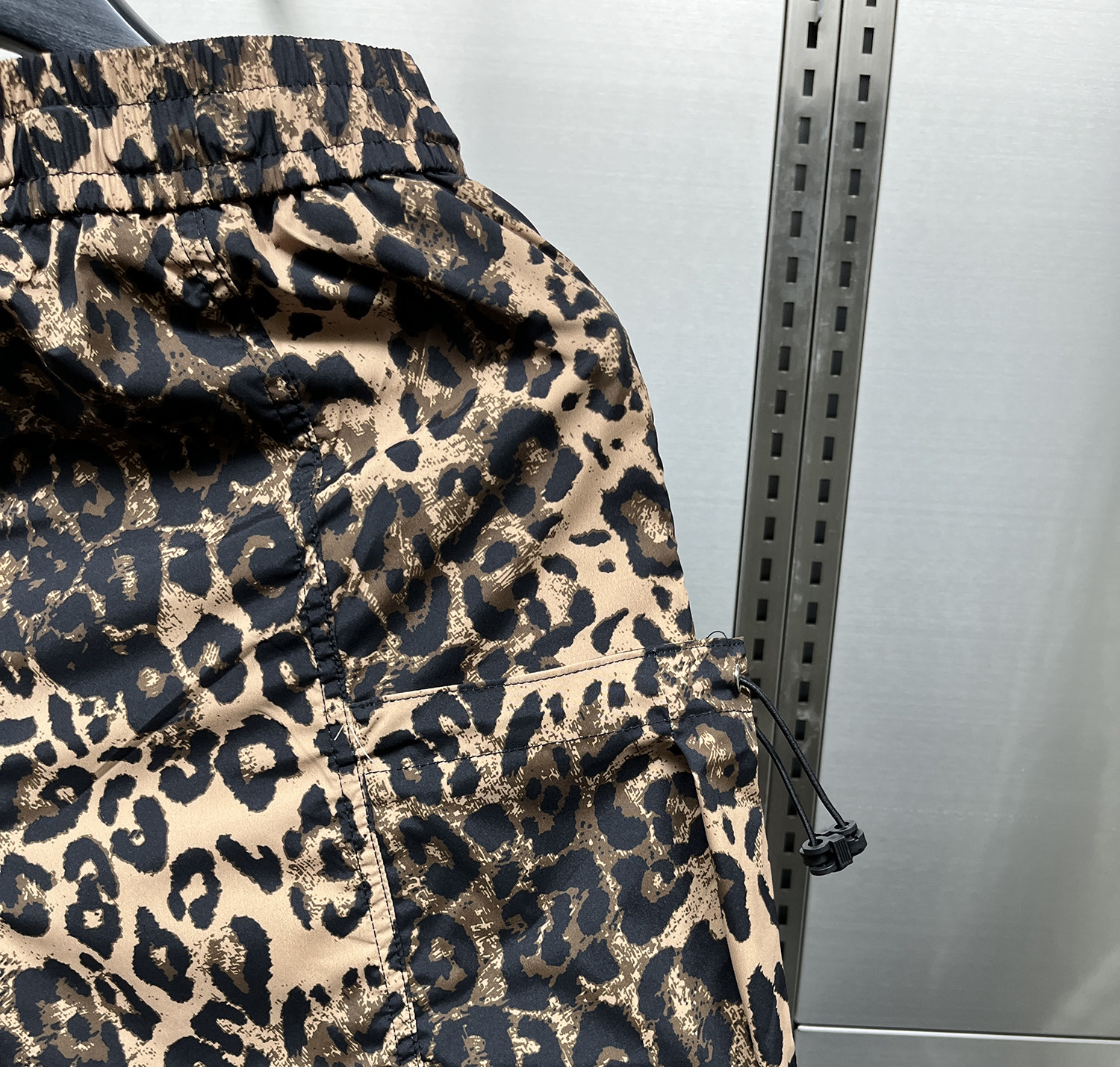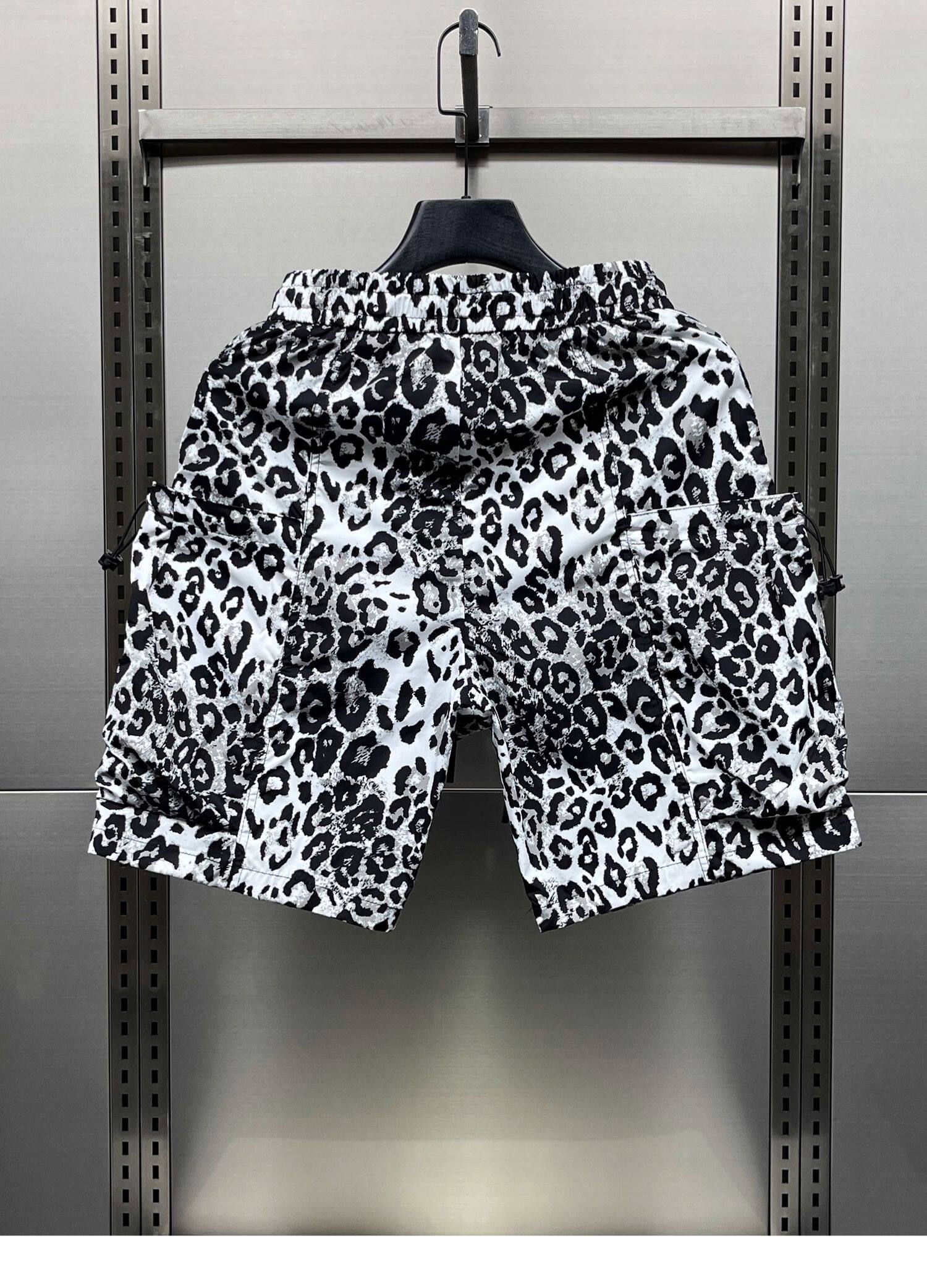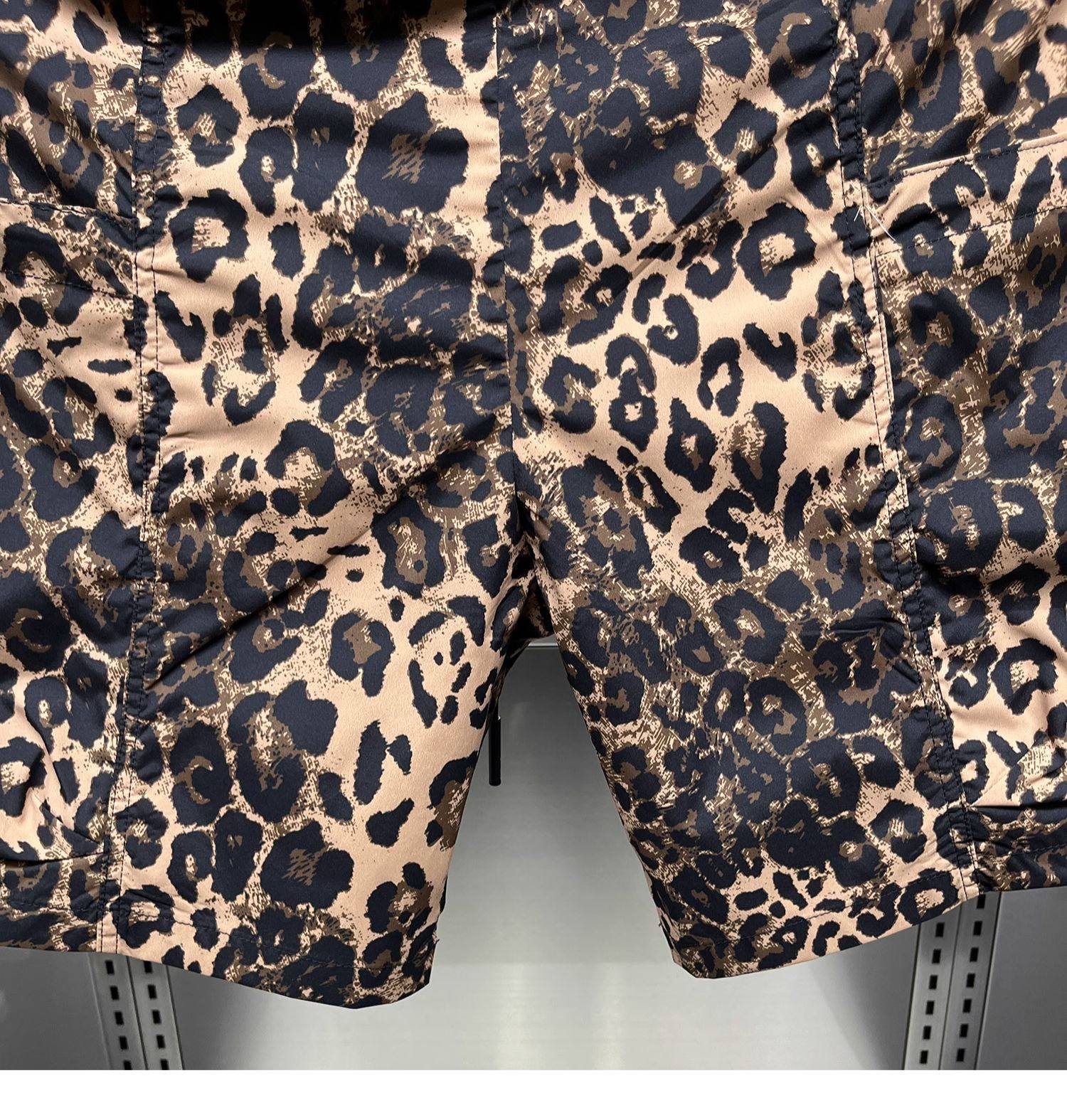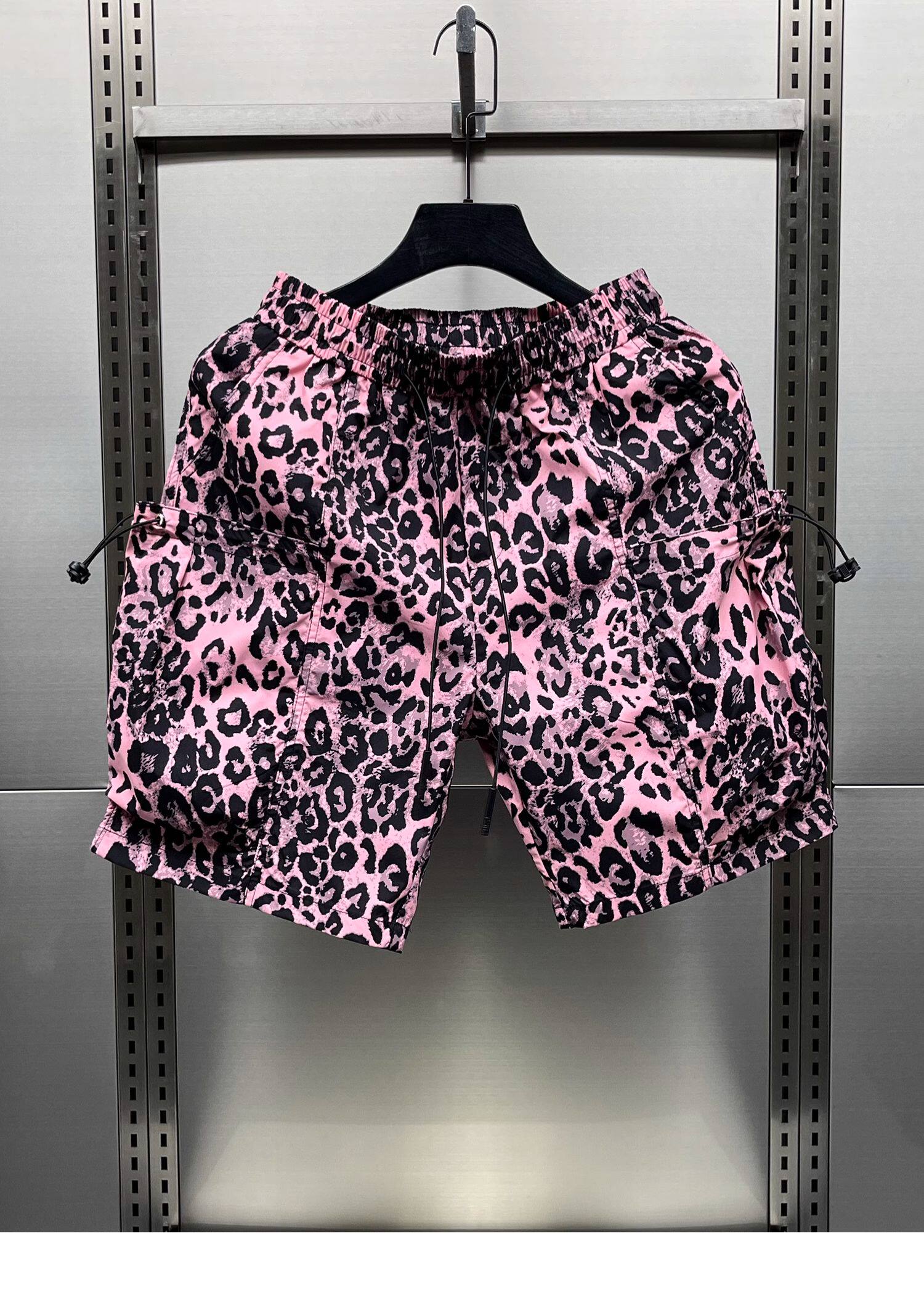 2025夏季男士速乾短褲潮流豹紋寬鬆大口袋褲子工裝美式五分沙灘褲