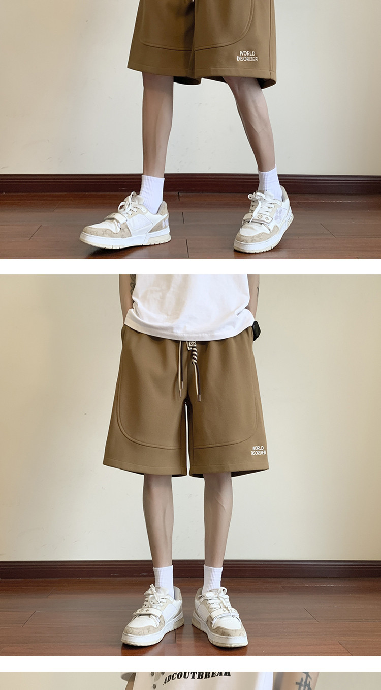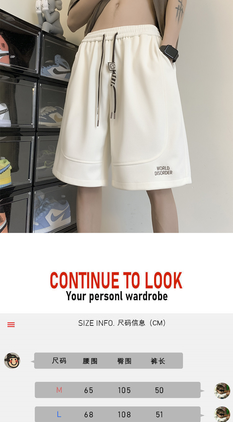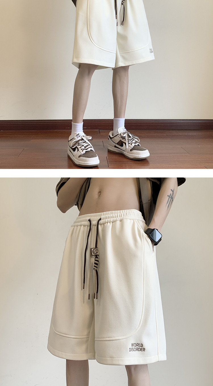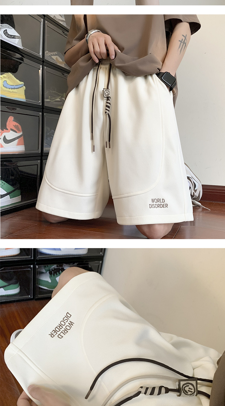 米白色短褲男款夏季薄款刺綉美式籃球運動中褲百搭休閒寬鬆五分褲