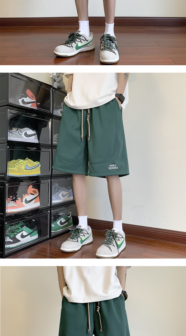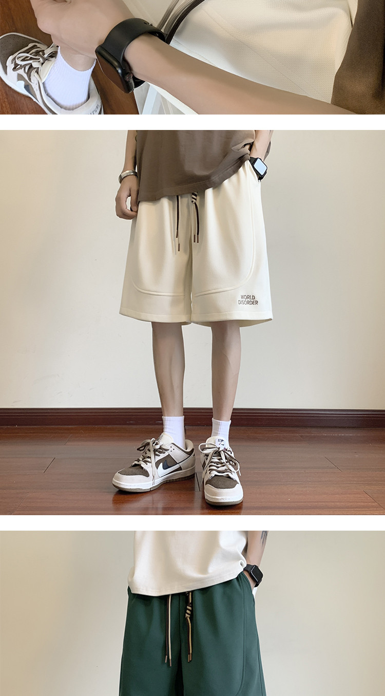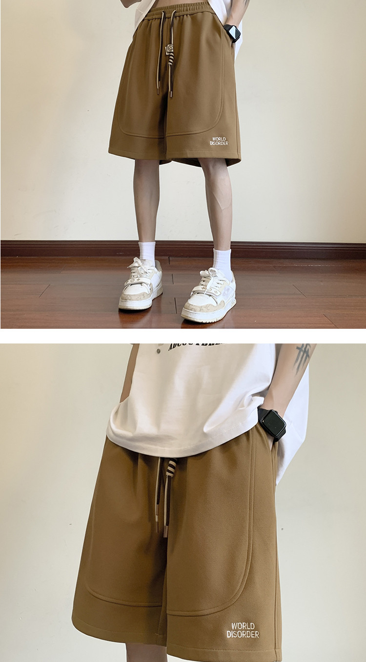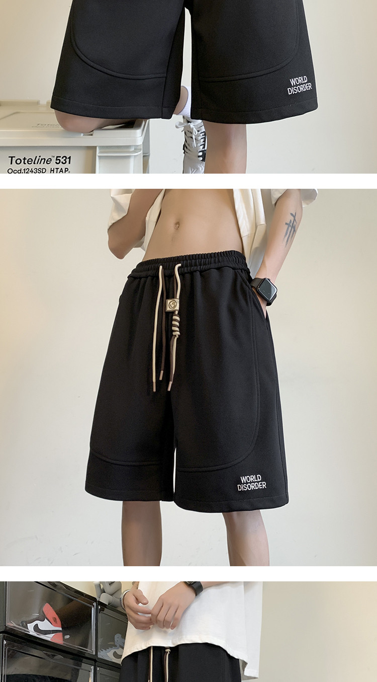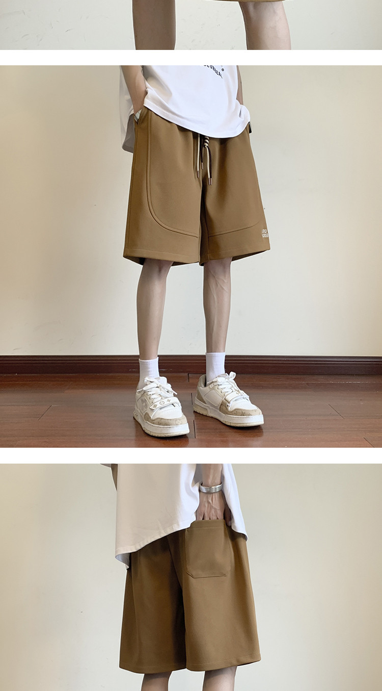 米白色短褲男款夏季薄款刺綉美式籃球運動中褲百搭休閒寬鬆五分褲