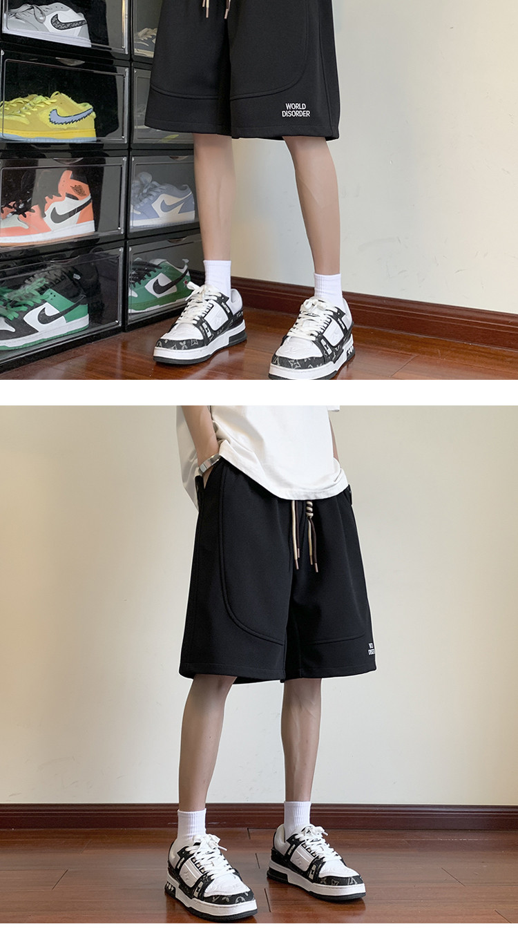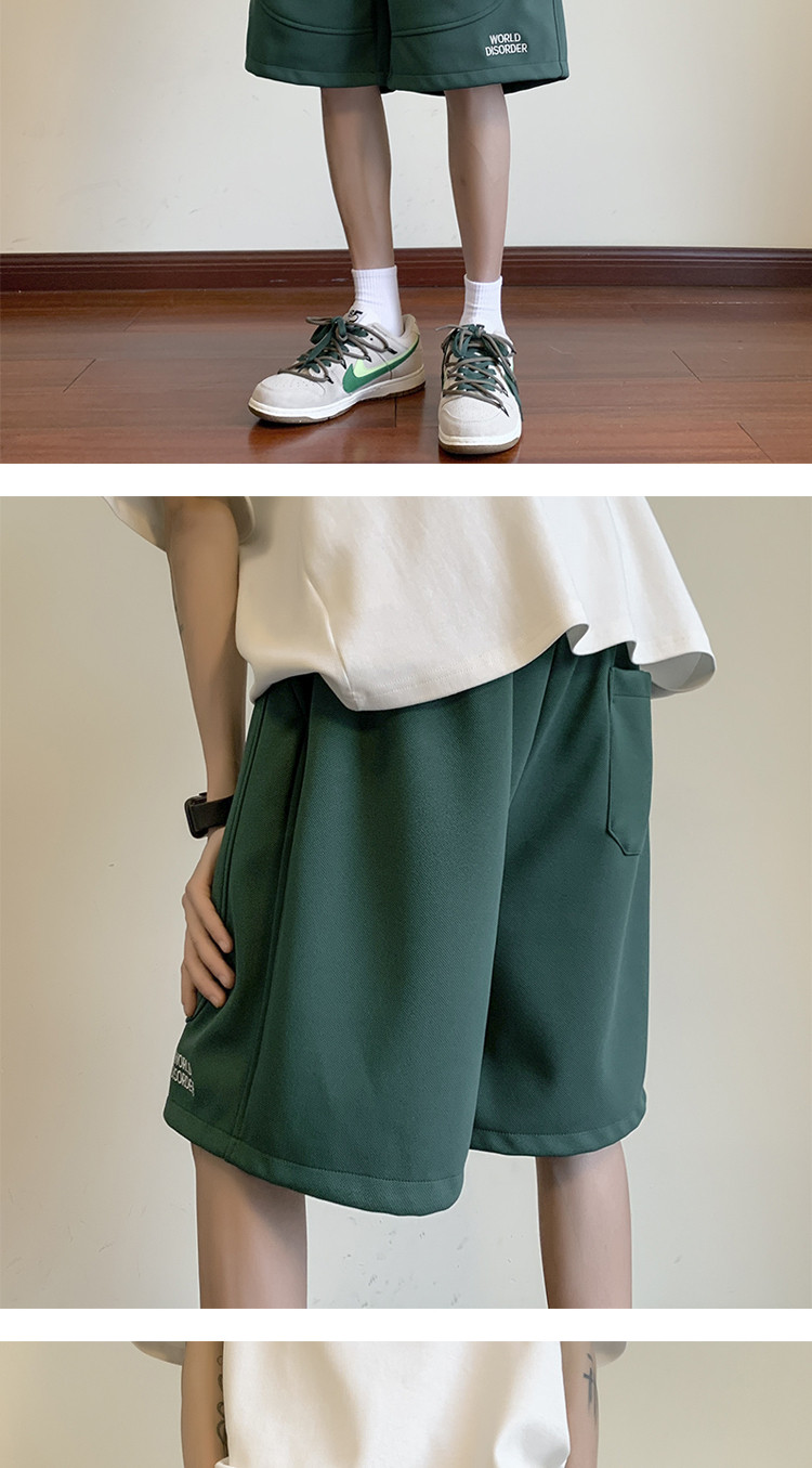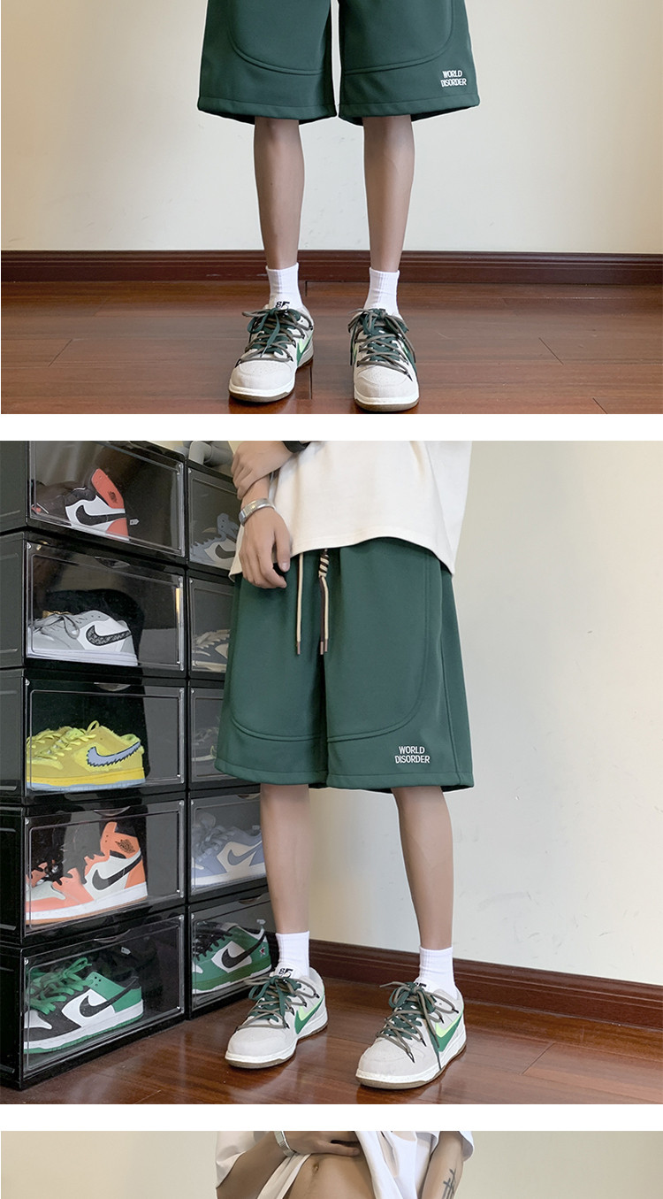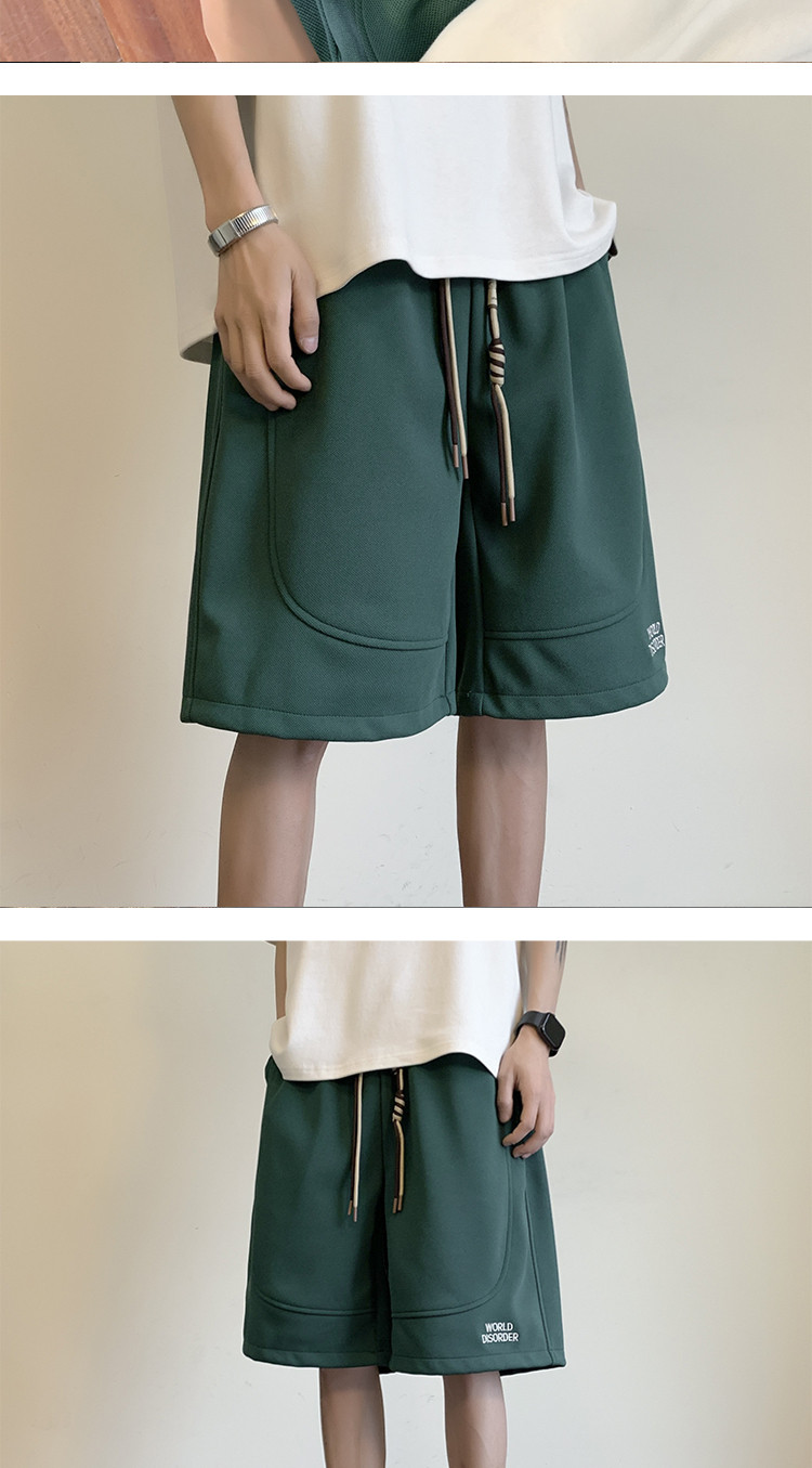 米白色短褲男款夏季薄款刺綉美式籃球運動中褲百搭休閒寬鬆五分褲