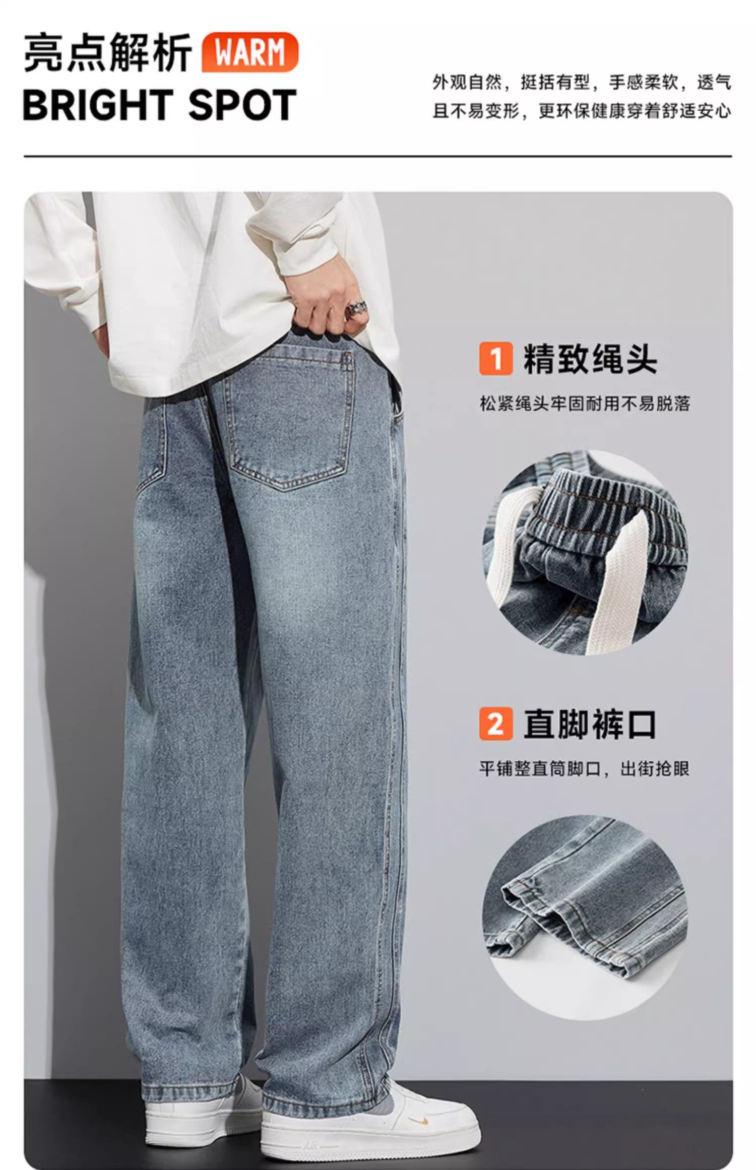 JEEP SPIRIT吉普美式牛仔褲男士寬鬆直筒百搭秋季休閒長褲子男款