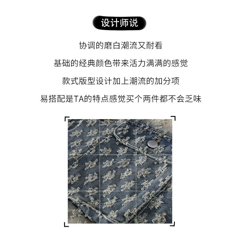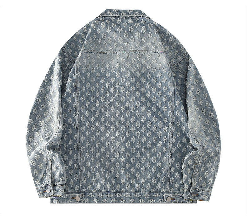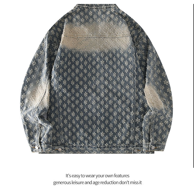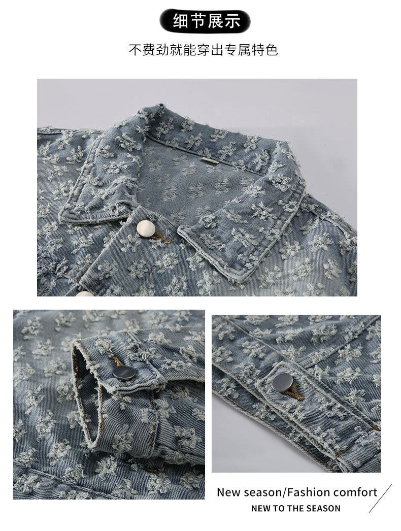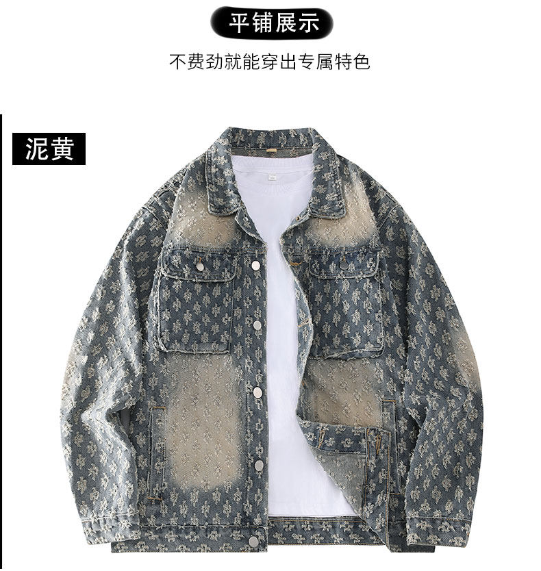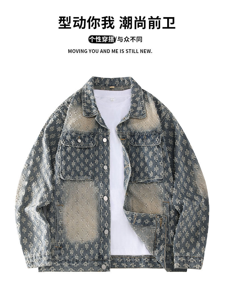 VBBK秋季潮流復古牛仔夾克外套男女水洗小香風提花情侶款工裝襯衣