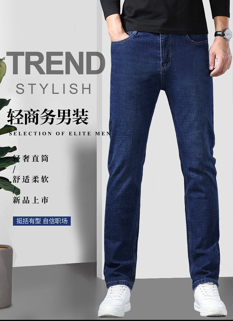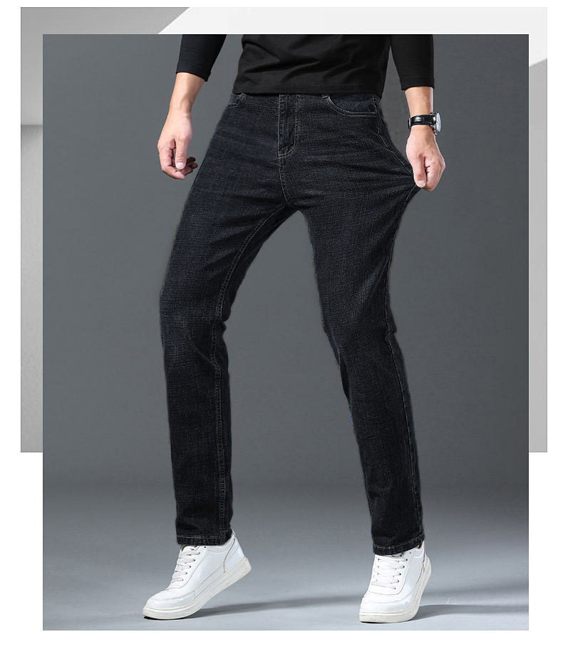 袋鼠有牌面牛仔褲男彈力寬鬆直筒休閒潮流大碼春秋季冬款加絨長褲
