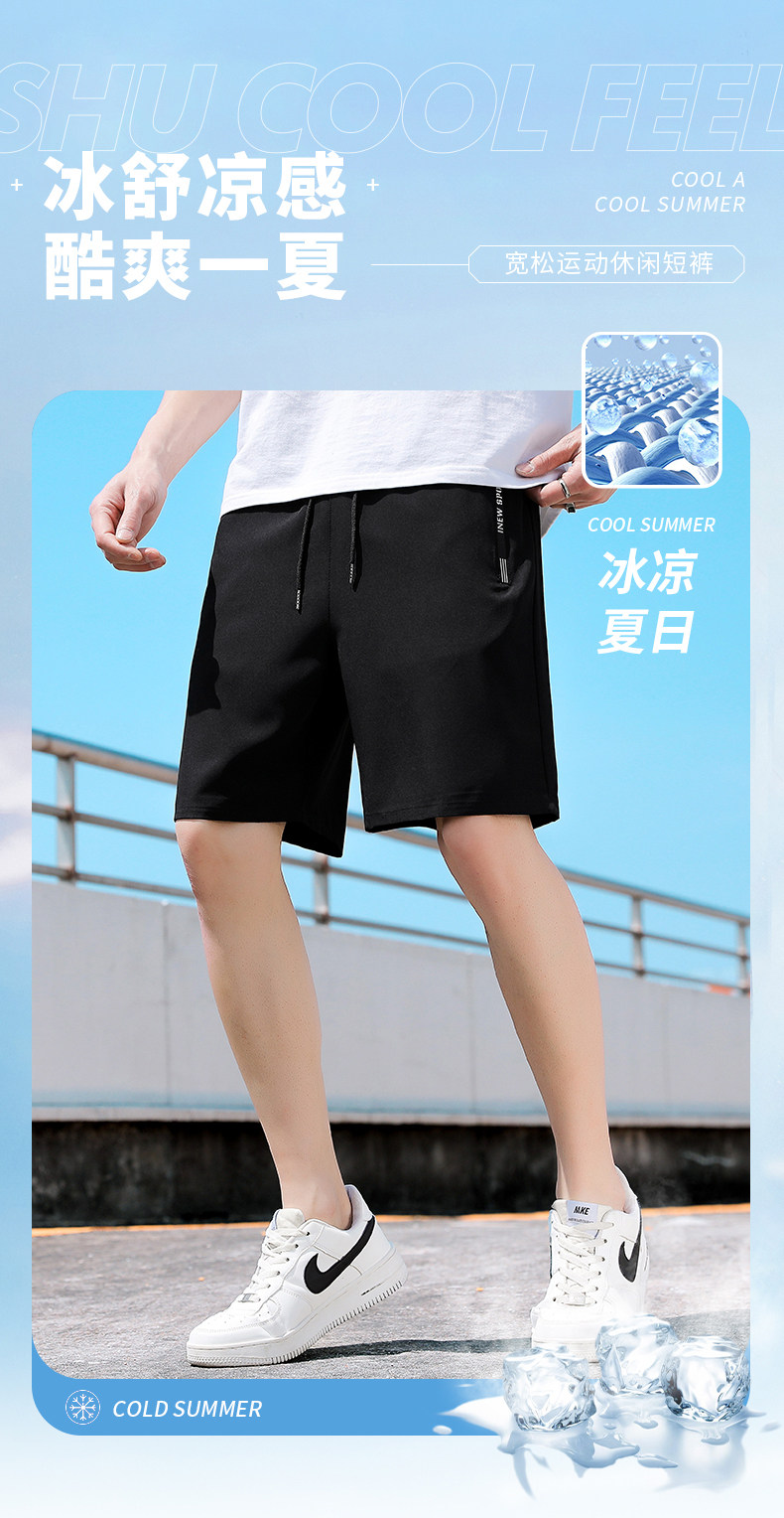 男士短褲夏季男生大碼冰絲五分運動休閒薄款速乾外穿寬鬆沙灘中褲