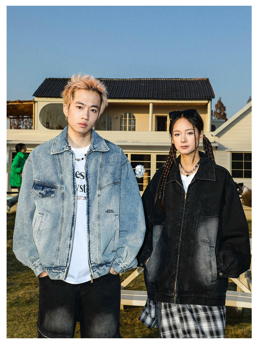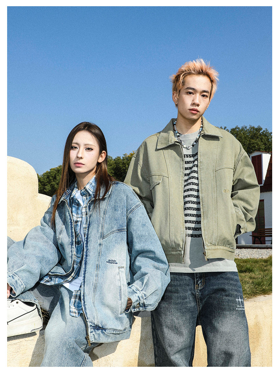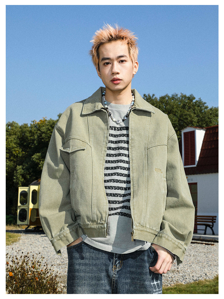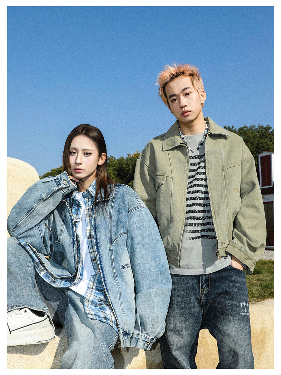 MANYSTON美式高街痞帥休閒外套男款春秋季潮牌青少年復古牛仔夾克