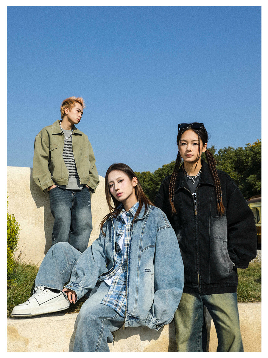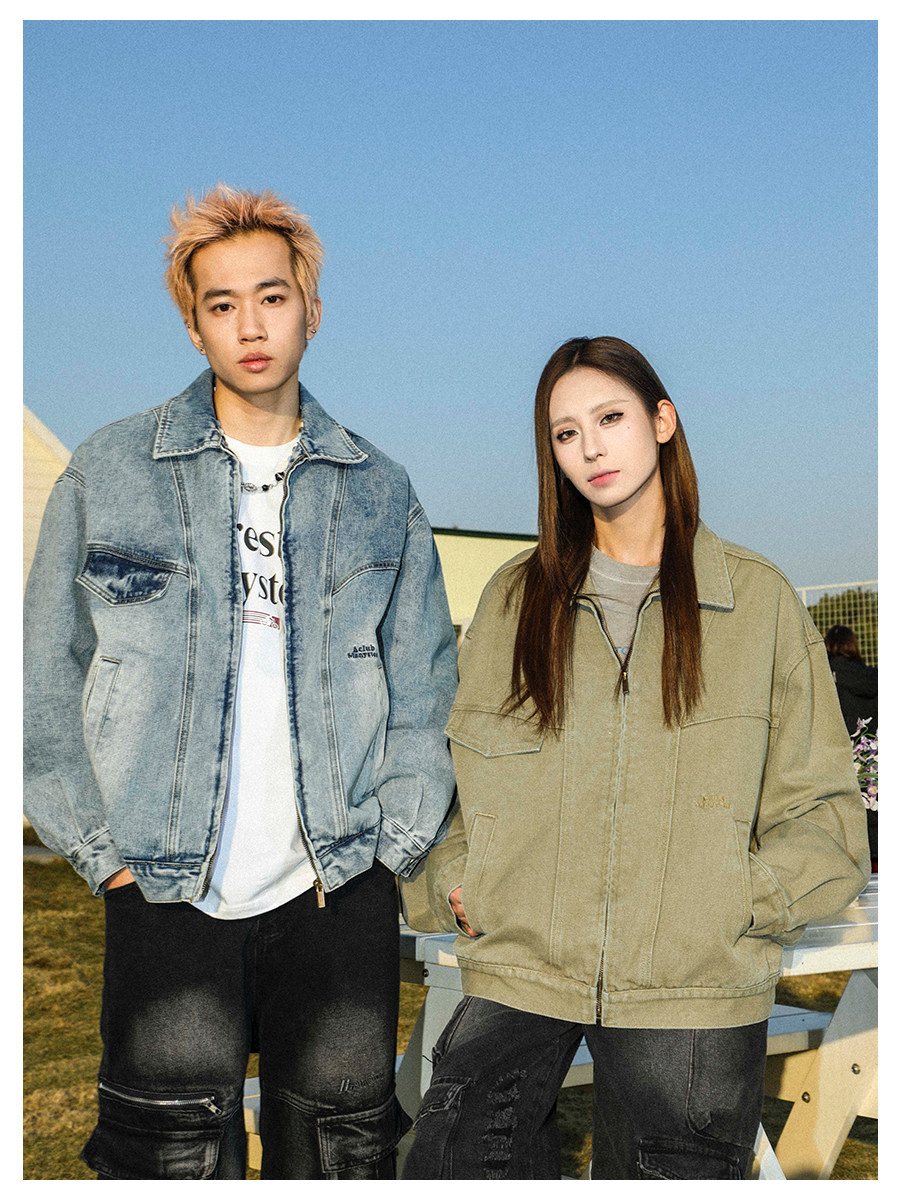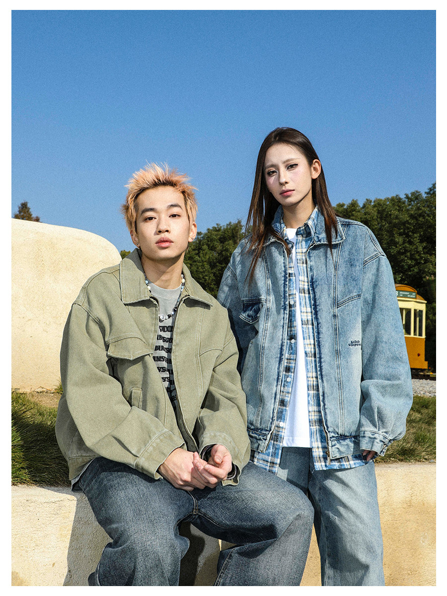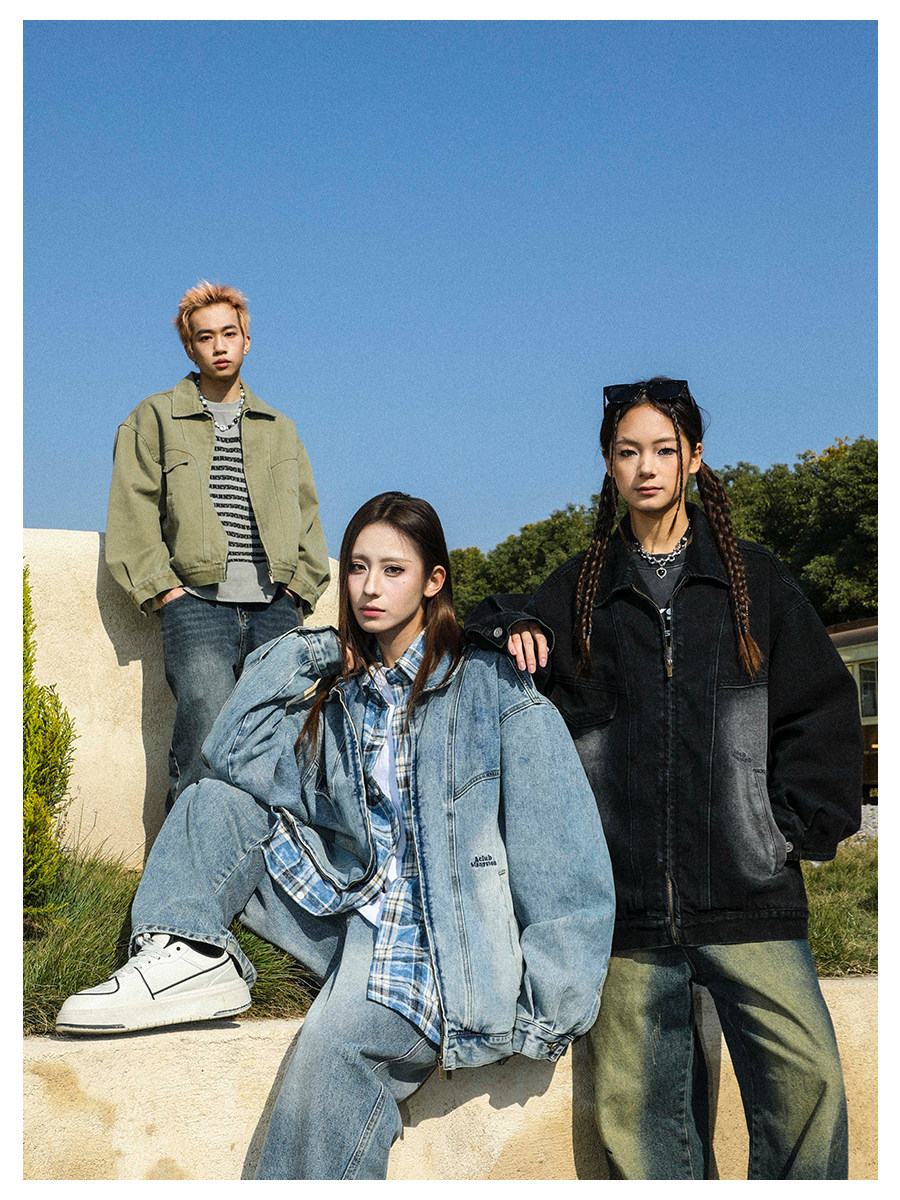 MANYSTON美式高街痞帥休閒外套男款春秋季潮牌青少年復古牛仔夾克