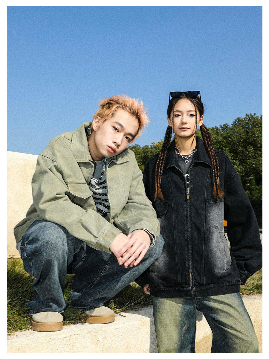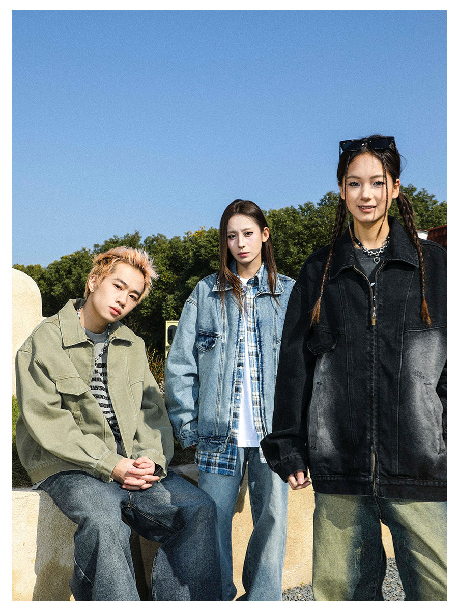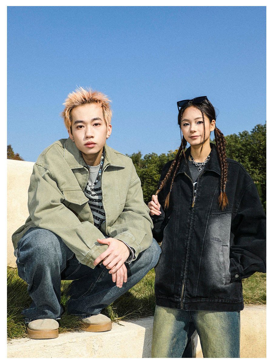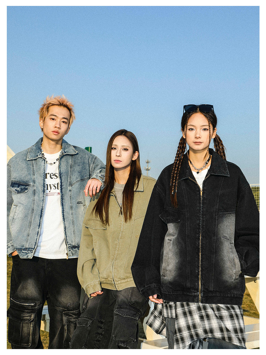 MANYSTON美式高街痞帥休閒外套男款春秋季潮牌青少年復古牛仔夾克