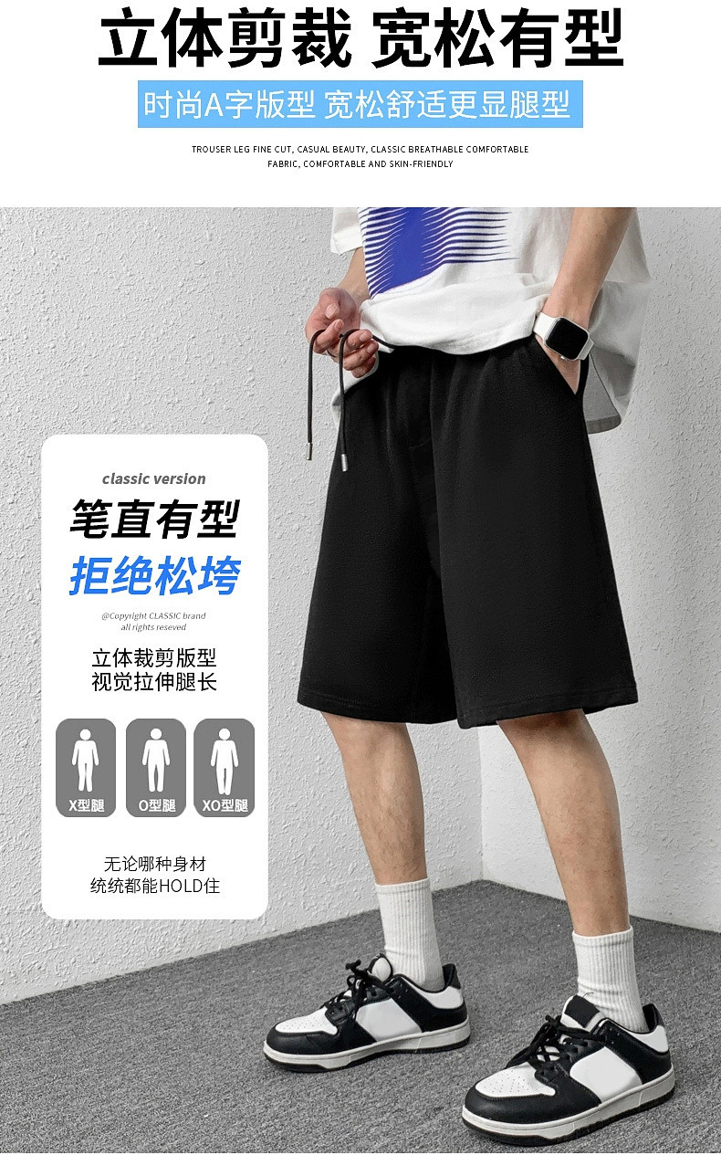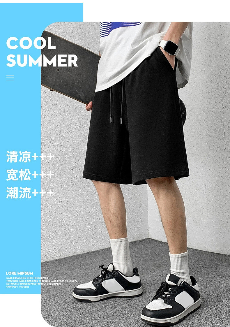 廻力純棉短褲男夏季休閒運動透氣薄款男褲寬鬆大碼健身潮流五分褲