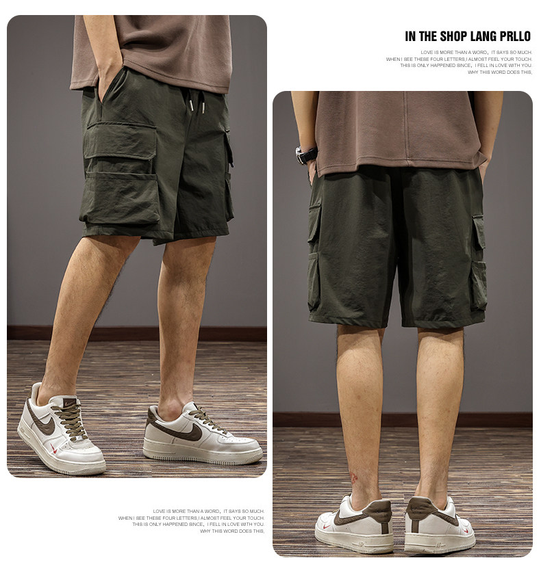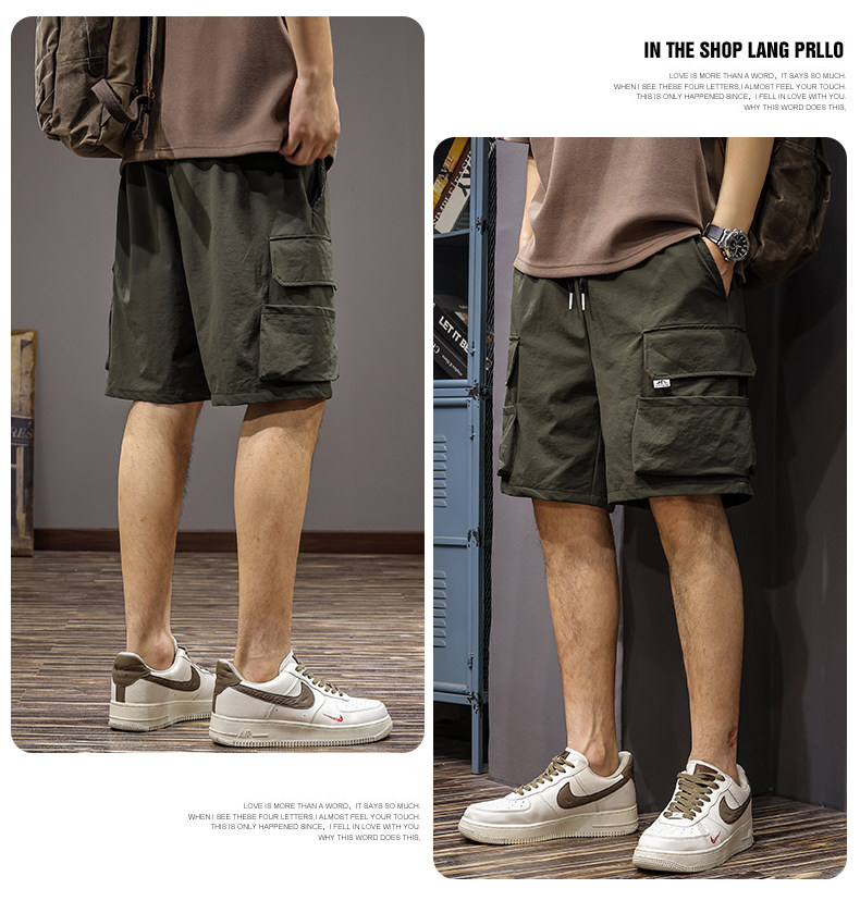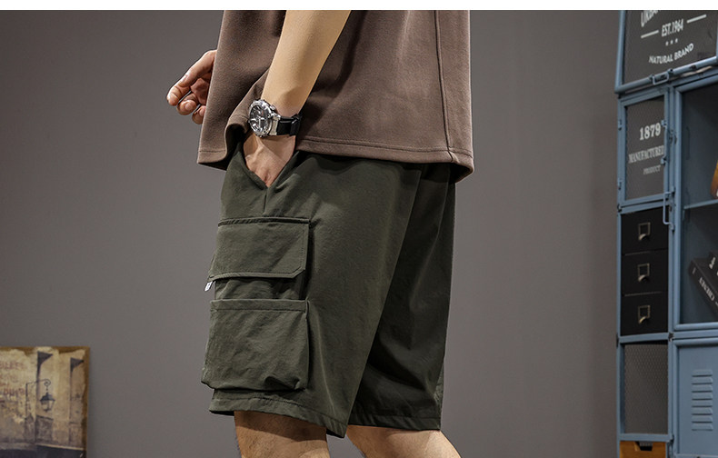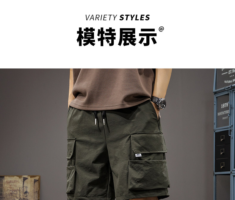 夏季薄款涼感速乾工裝短褲男寬鬆休閒直筒五分褲美式機能運動中褲