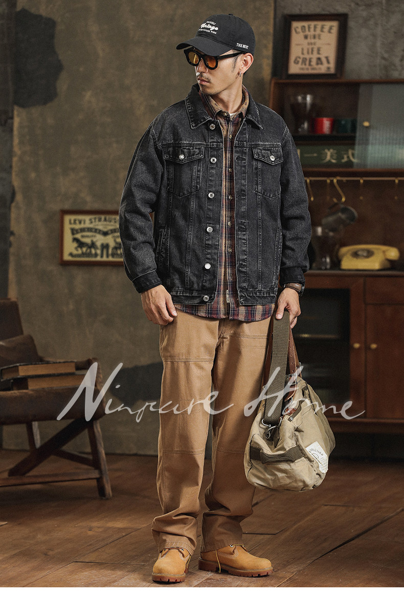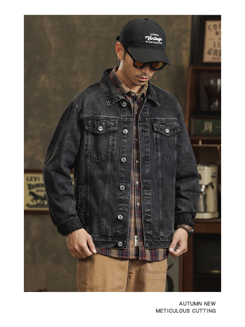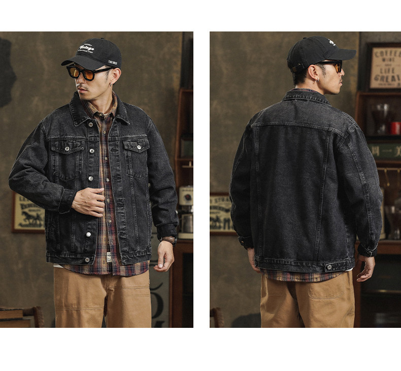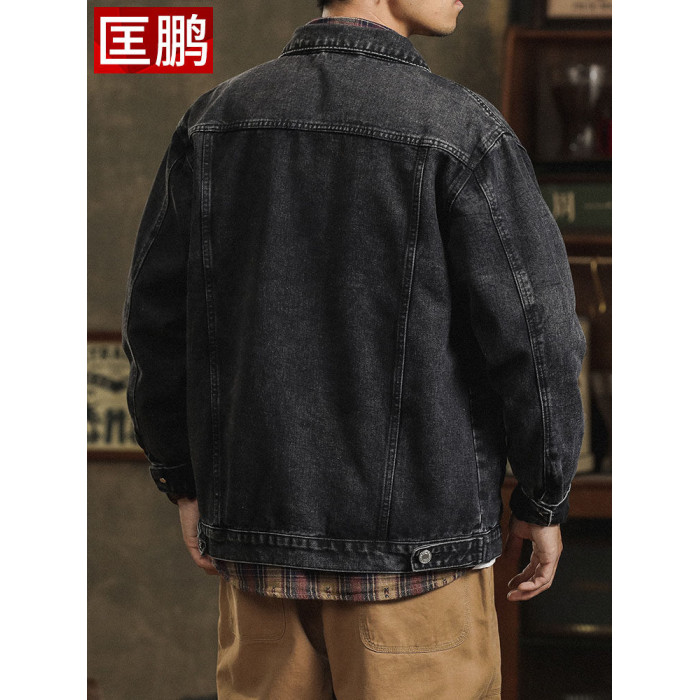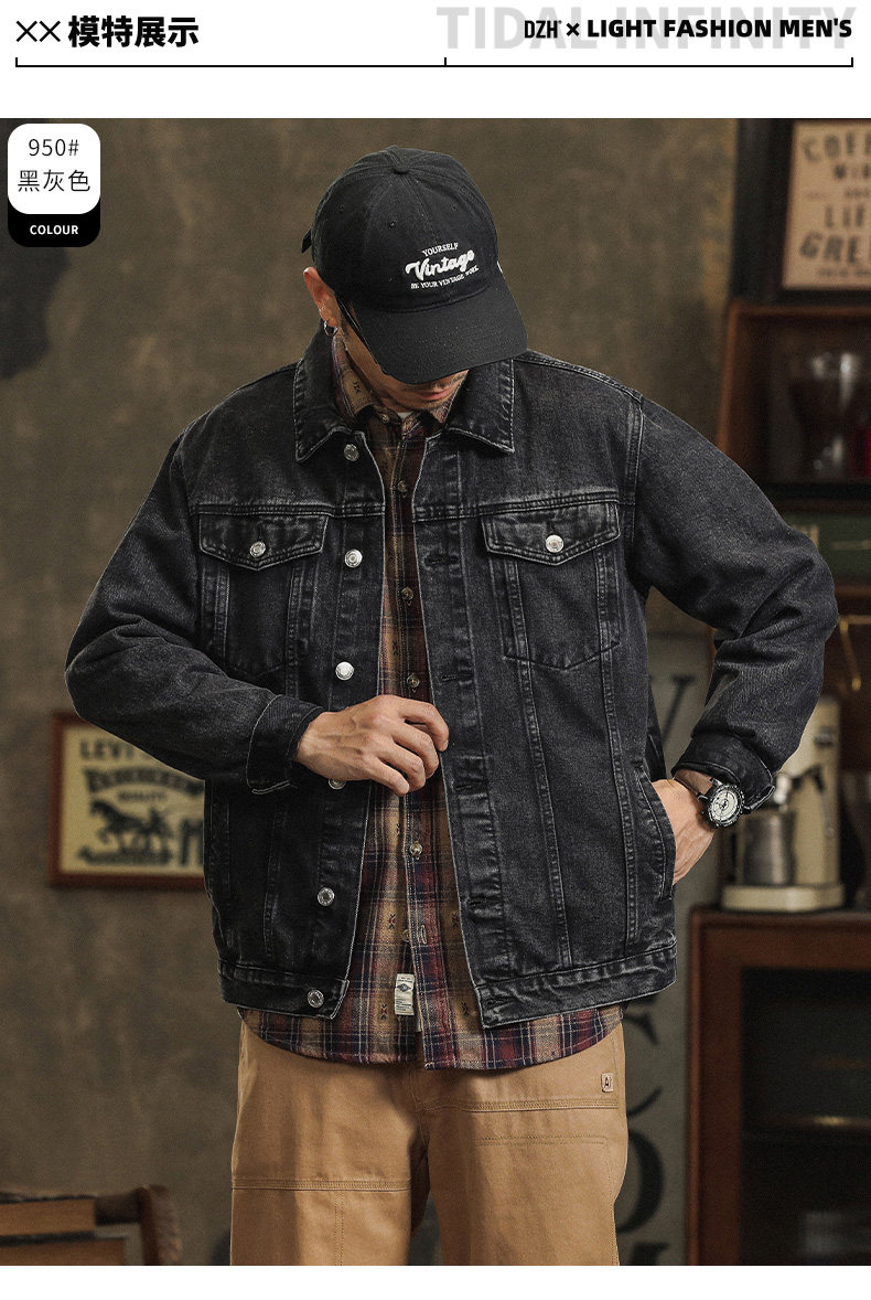 牛仔外套男春秋款2025新款黑灰色男士工裝夾克寬鬆繙領休閒牛仔衣