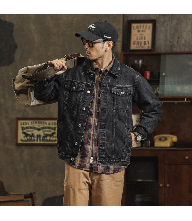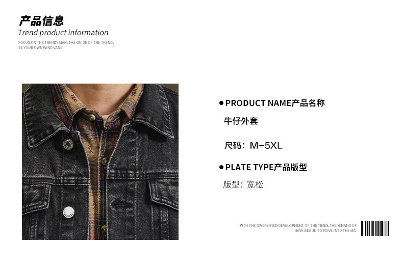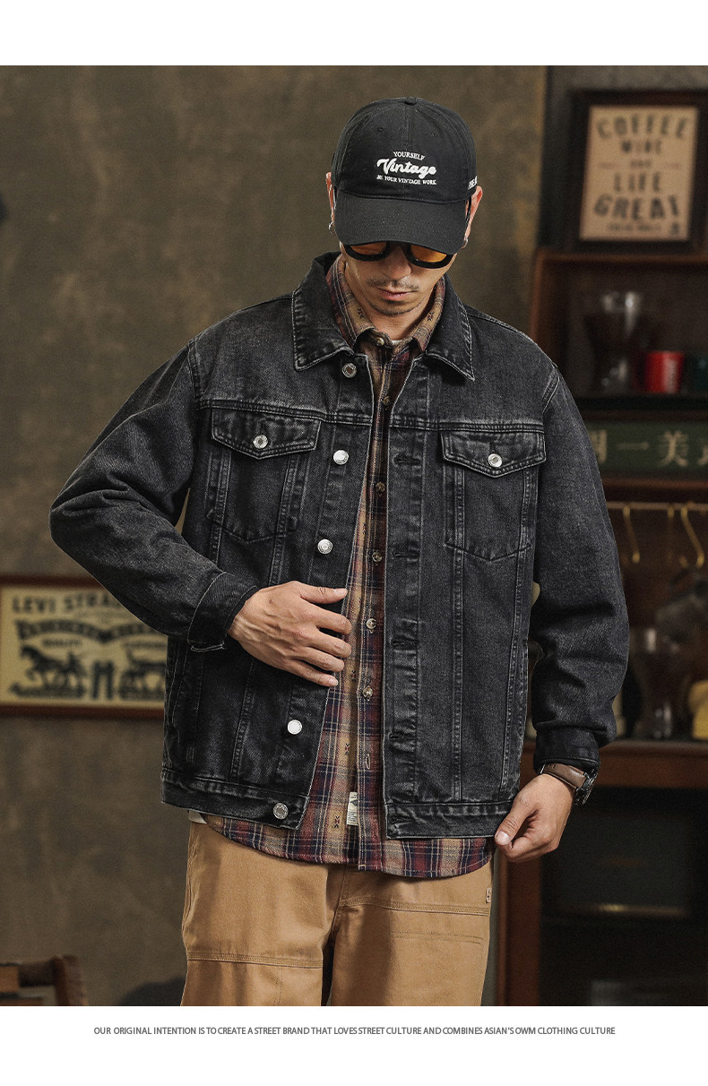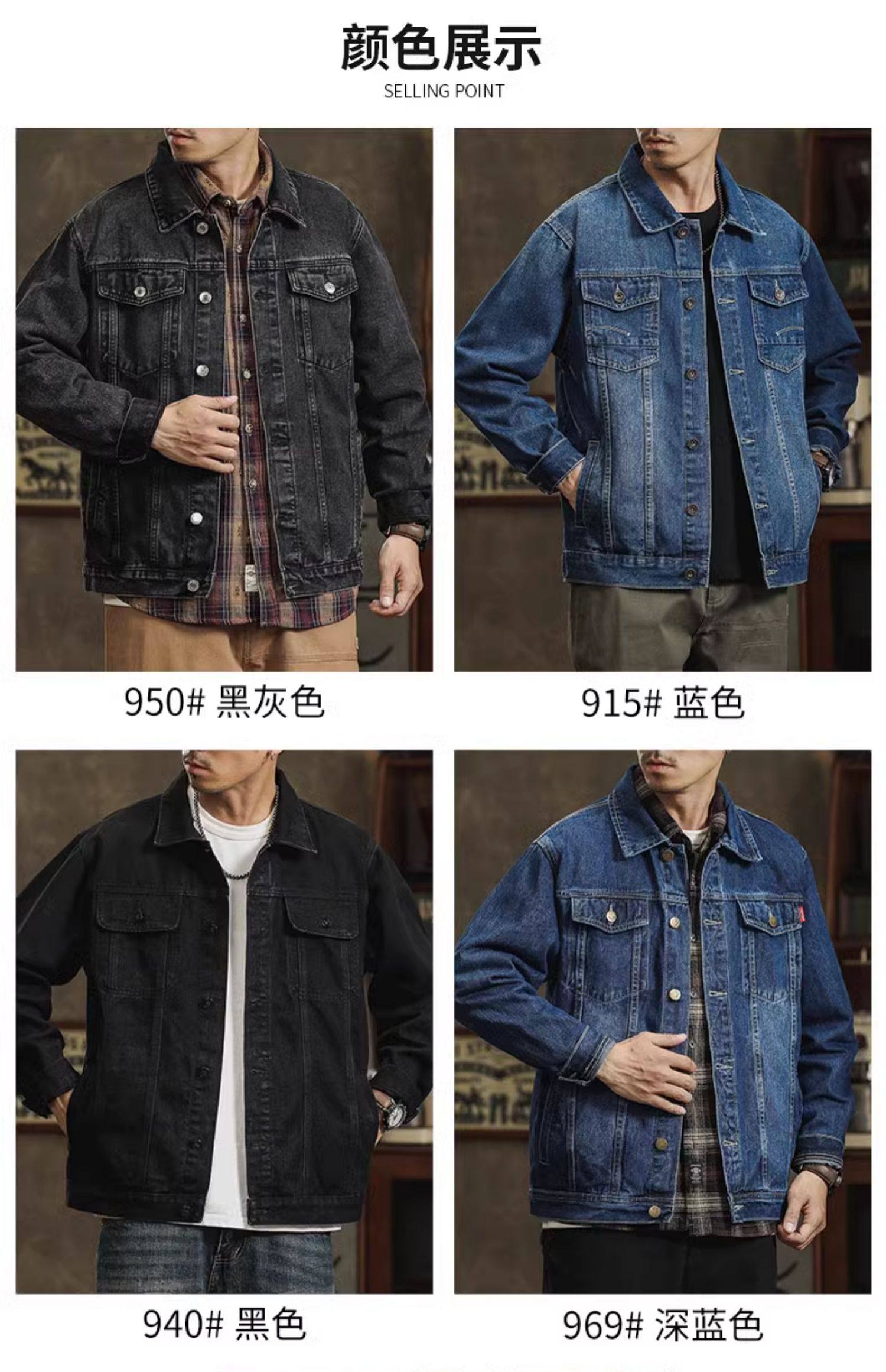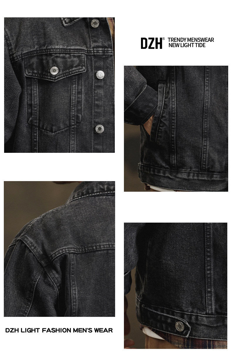 牛仔外套男春秋款2025新款黑灰色男士工裝夾克寬鬆繙領休閒牛仔衣