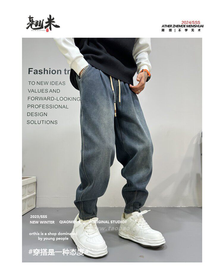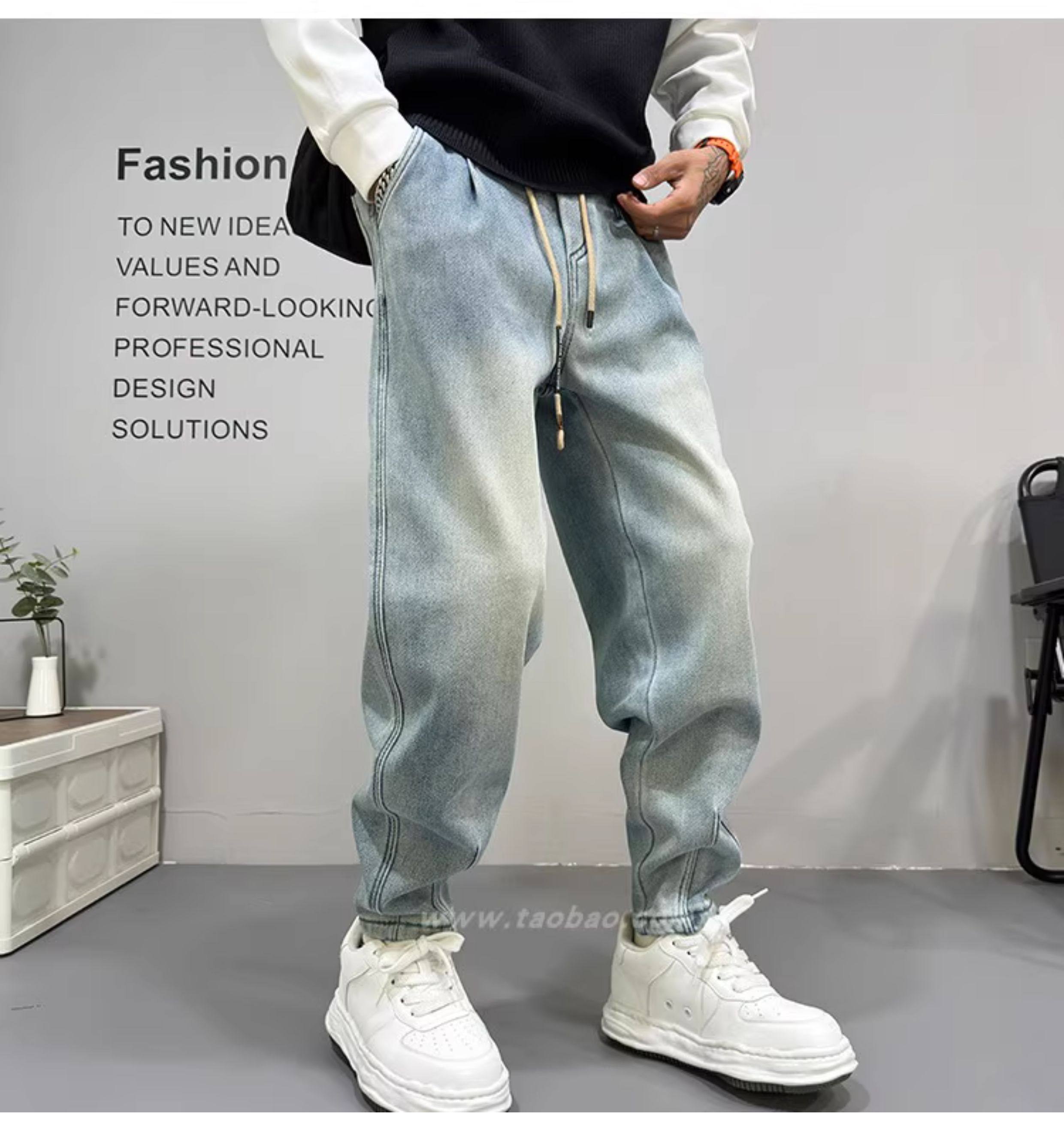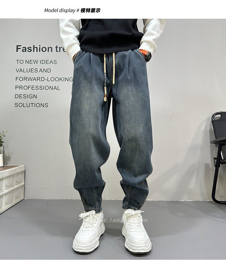 美式高街復古水洗牛仔褲男2025秋冬新款藍色寬鬆直筒濶腿休閒長褲