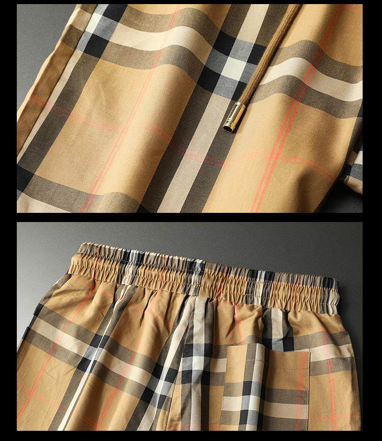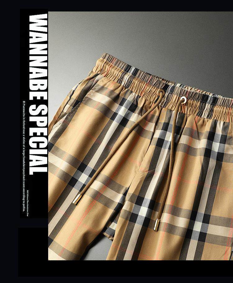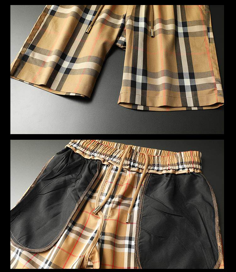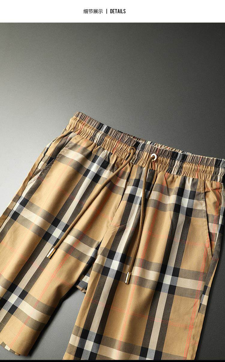 2025夏季新款輕奢歐貨運動休閒短褲男高檔潮流格子印花五分褲沙灘