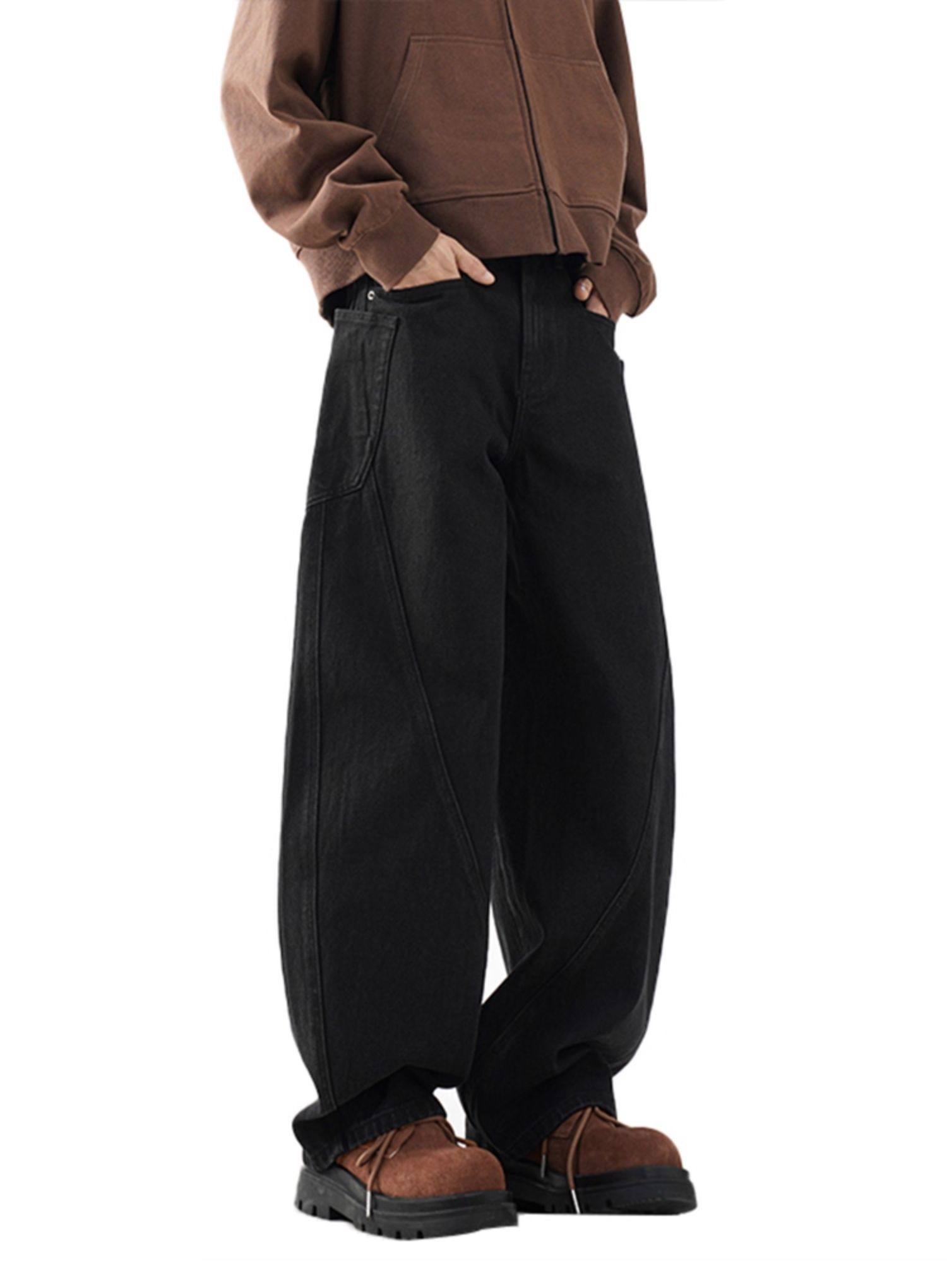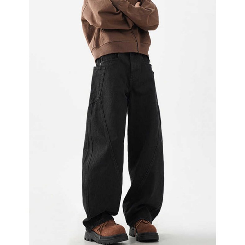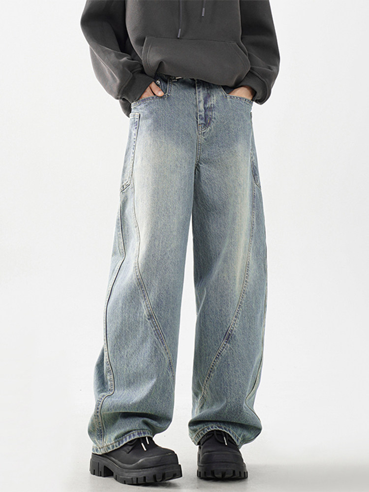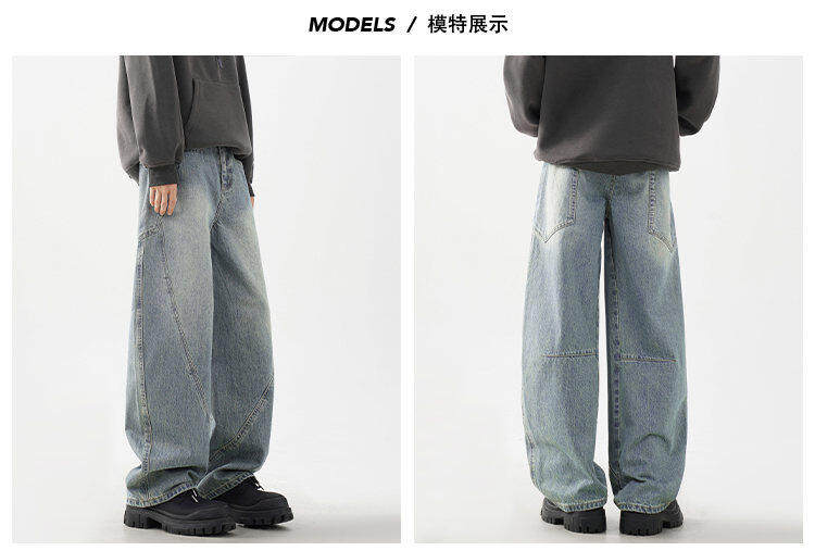 柳葉彎刀牛仔褲男冬季加絨加厚美式cleanfit香蕉寬鬆濶腿工裝褲子