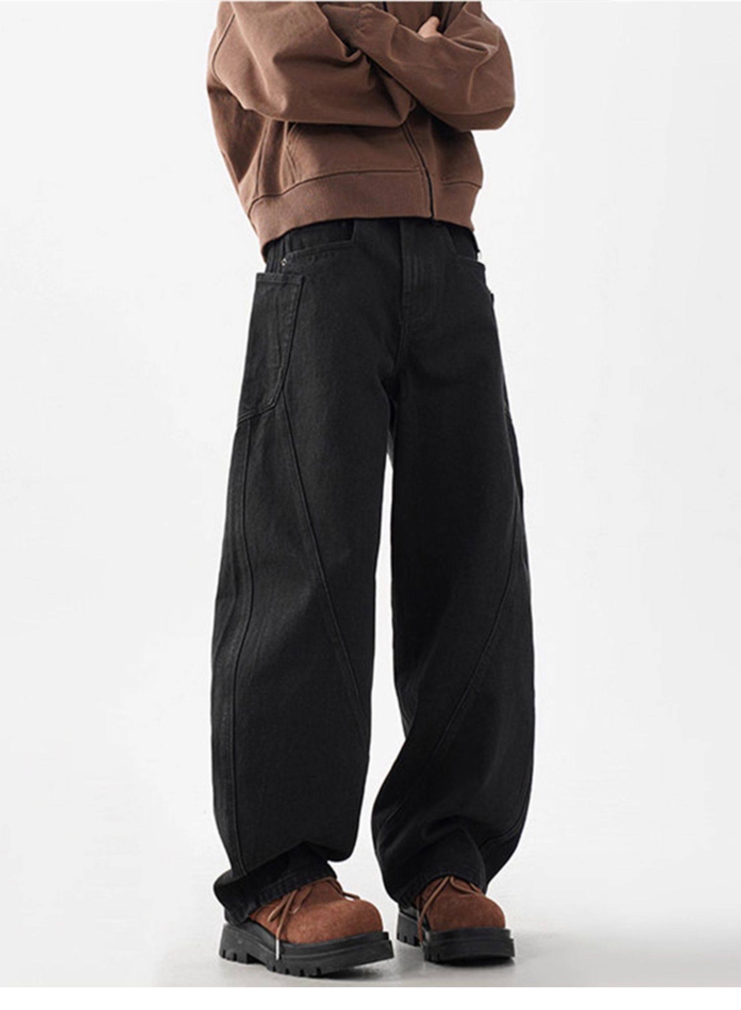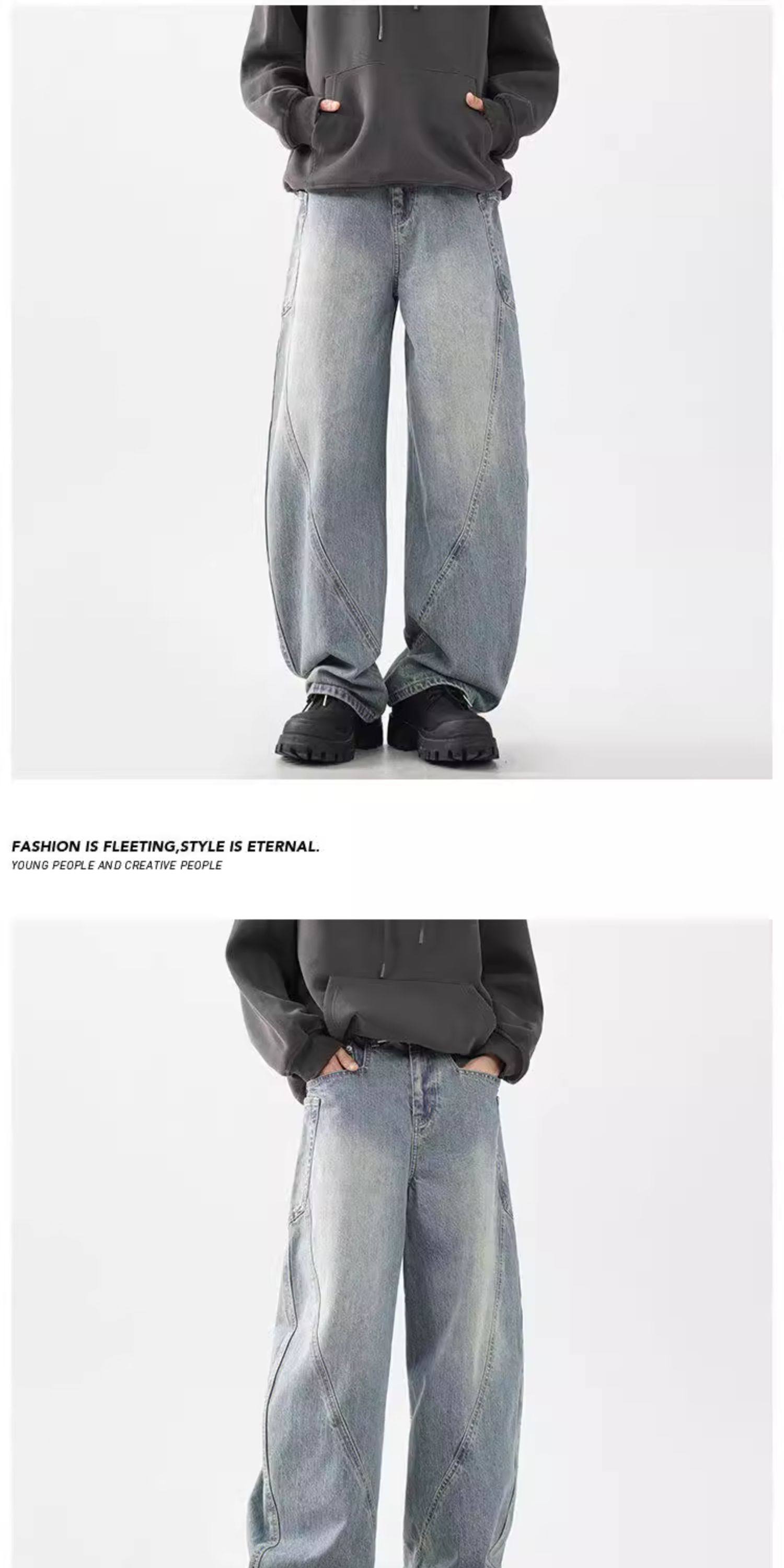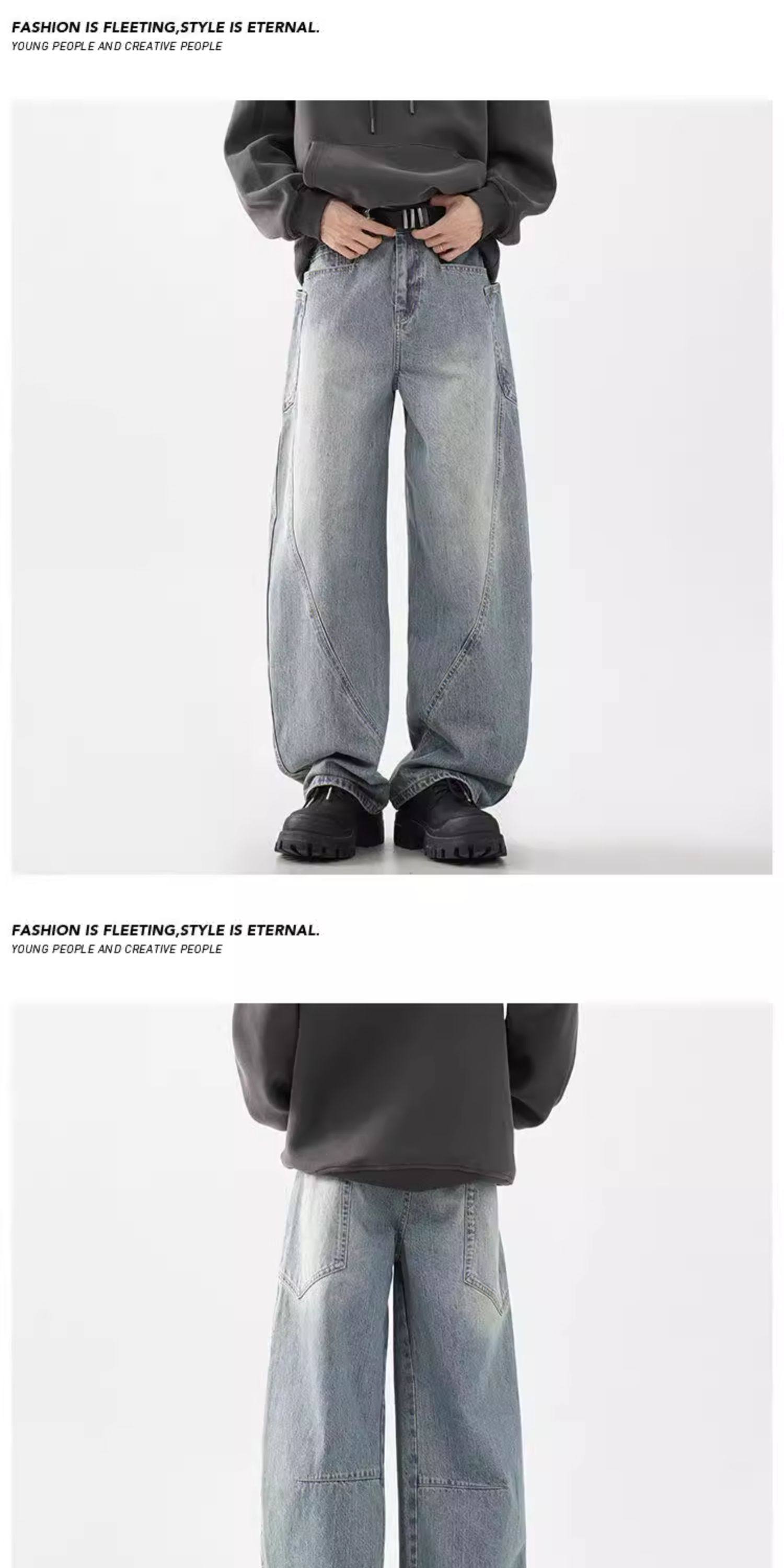 柳葉彎刀牛仔褲男冬季加絨加厚美式cleanfit香蕉寬鬆濶腿工裝褲子