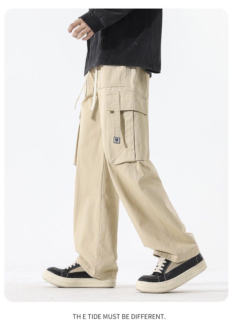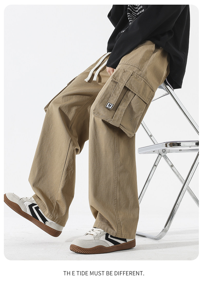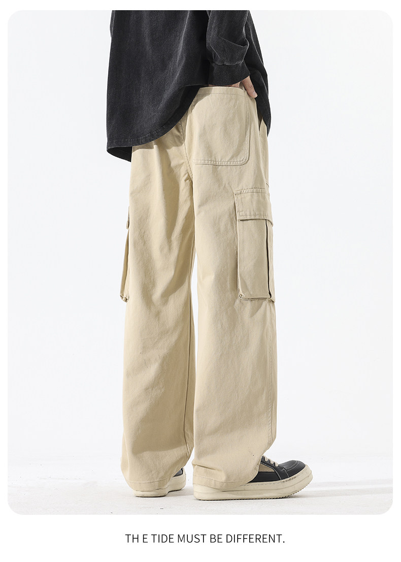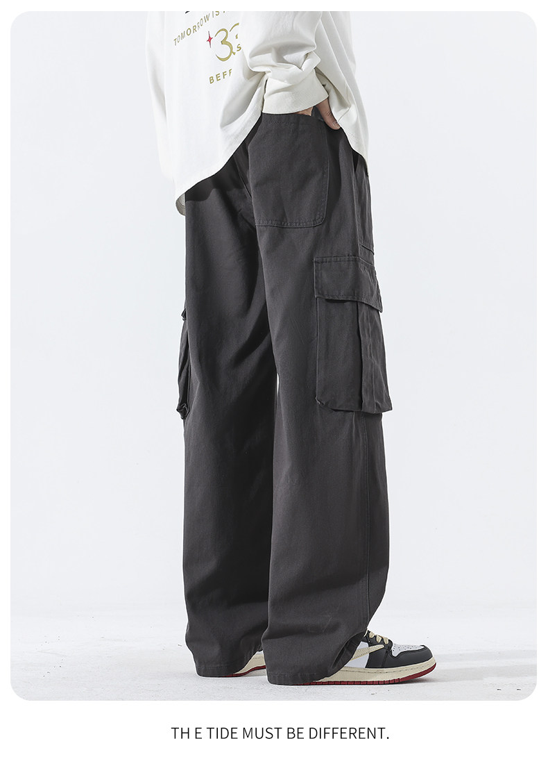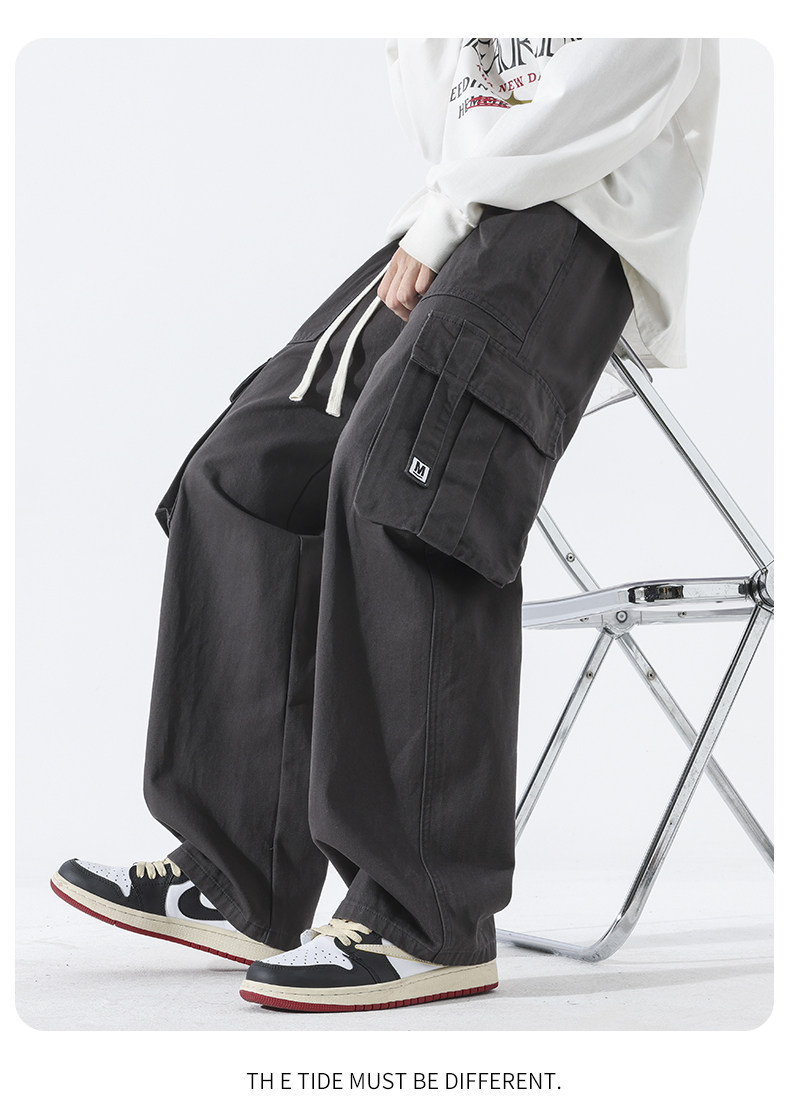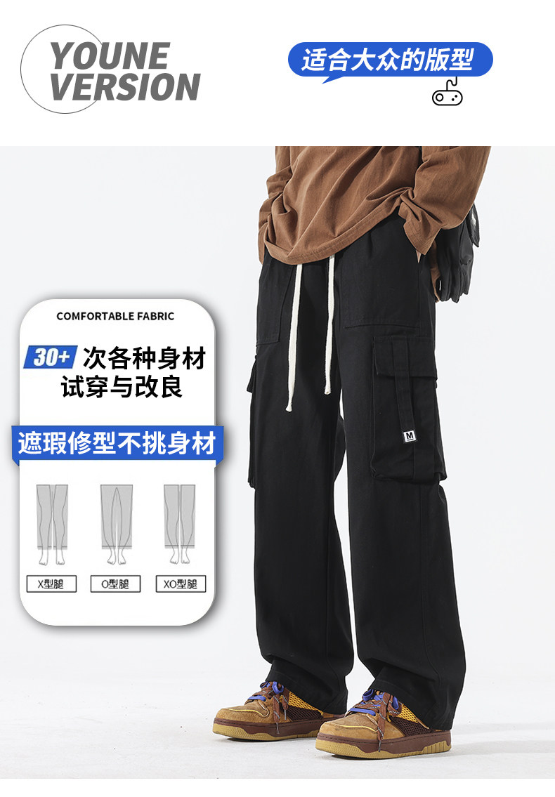 美式高街純棉休閒褲男冬季新款潮牌寬鬆直筒工裝褲濶腿長褲子秋季