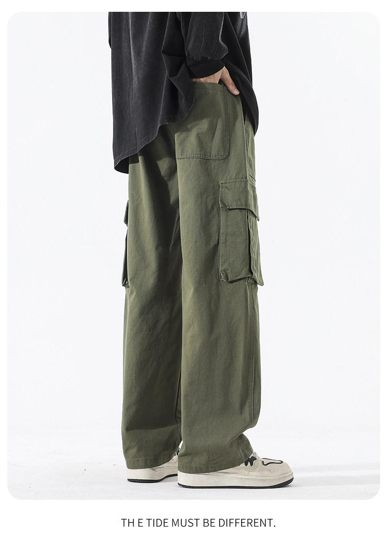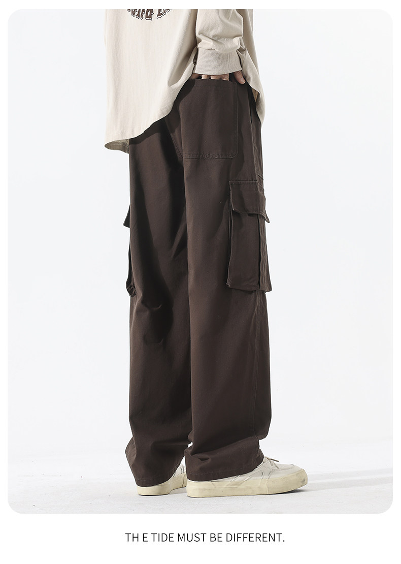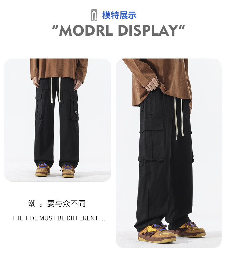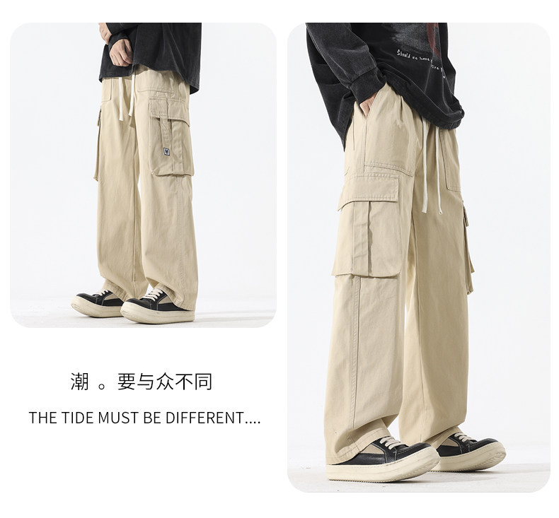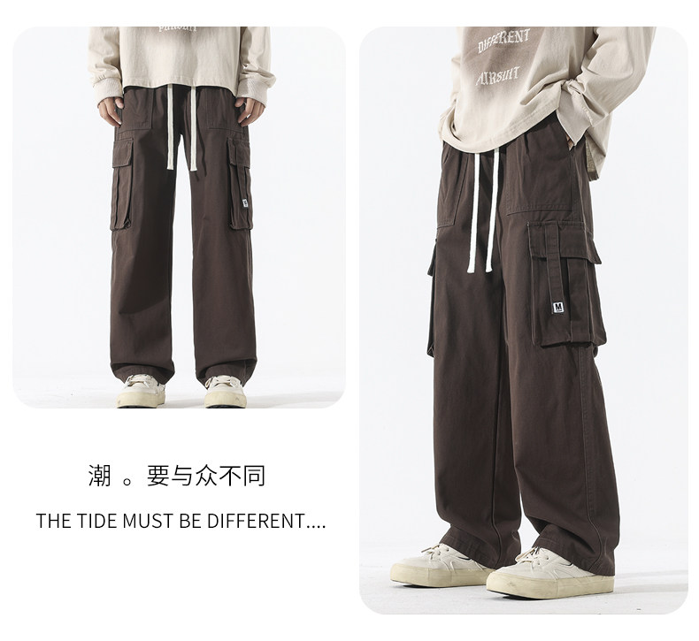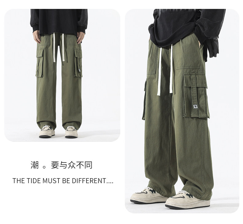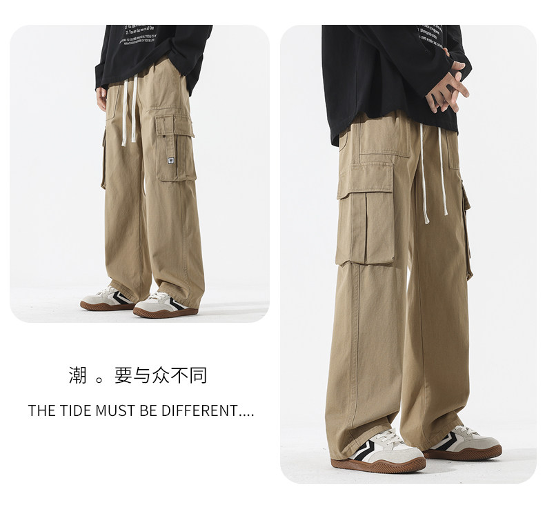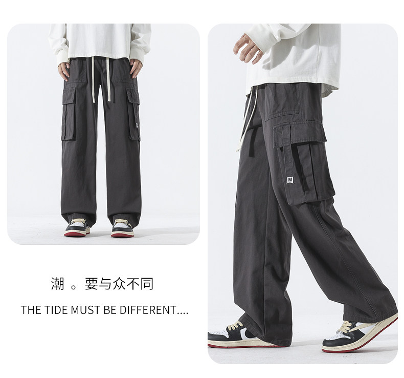 美式高街純棉休閒褲男冬季新款潮牌寬鬆直筒工裝褲濶腿長褲子秋季