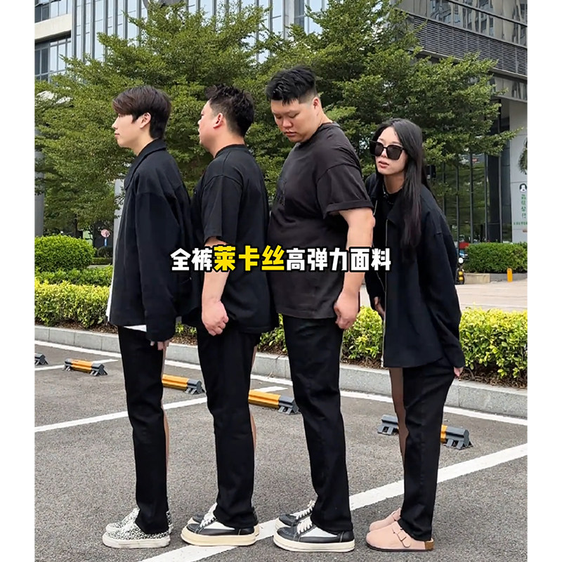 胖男生大碼柳葉彎刀牛仔褲男腿粗屁股大顯瘦顯腿長褲子直筒微喇褲