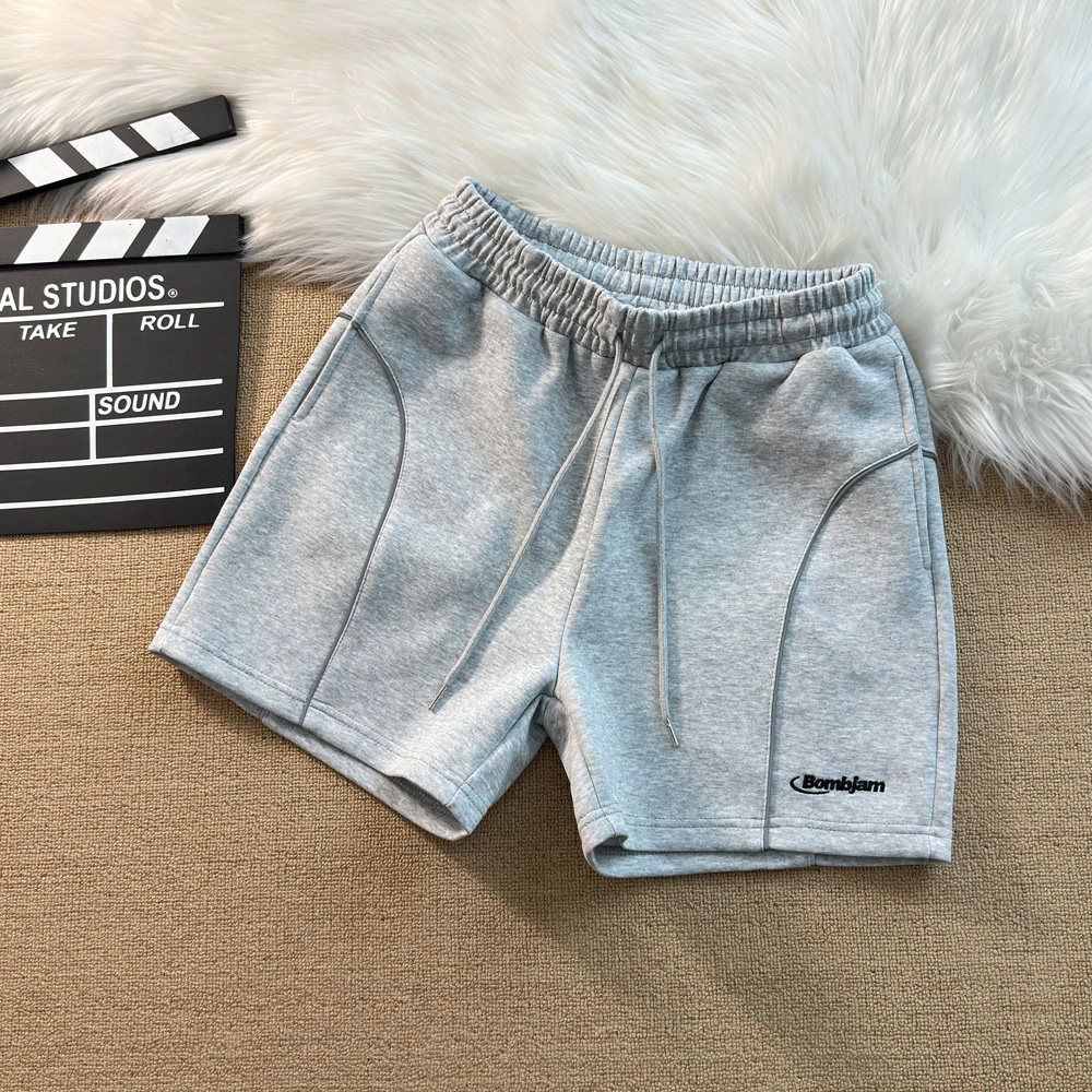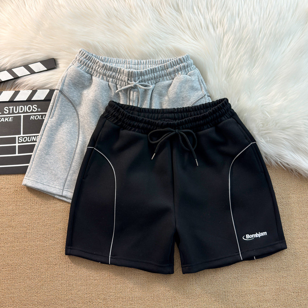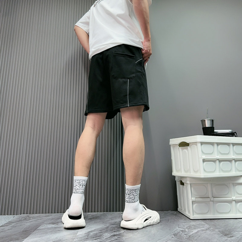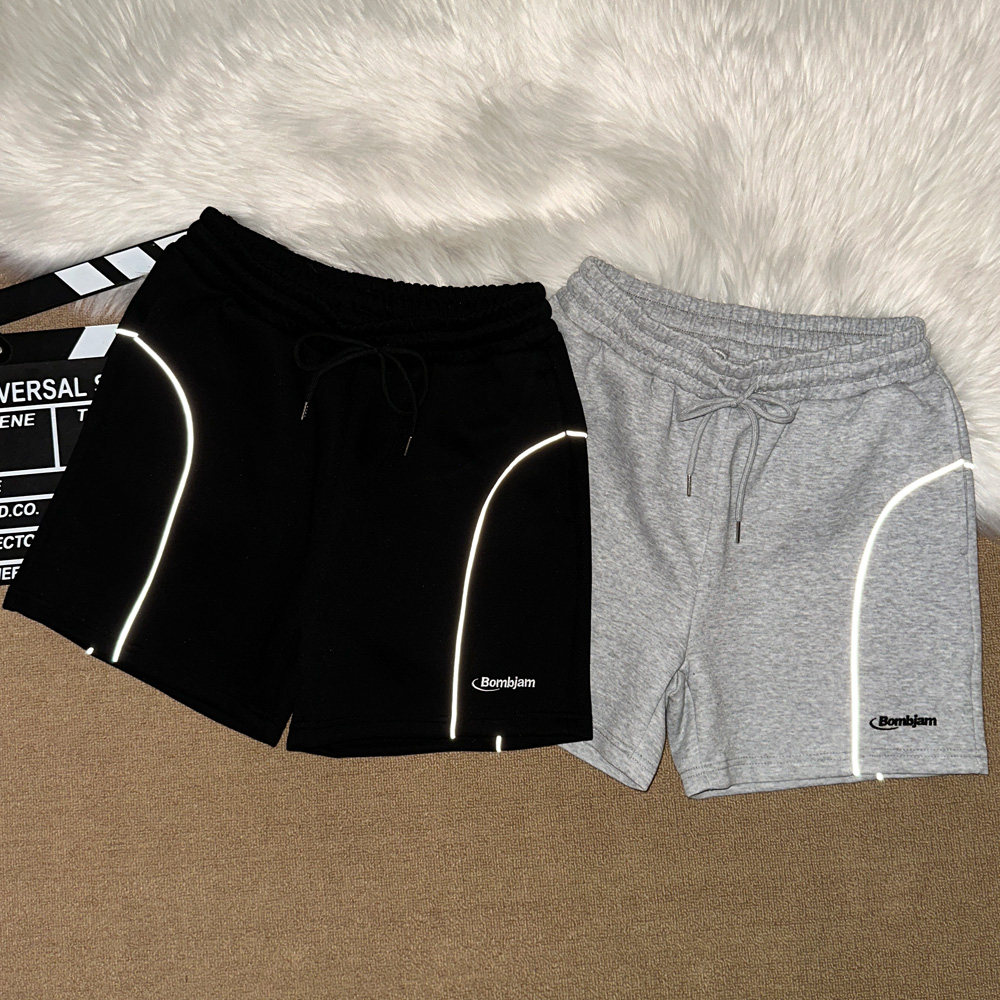 夏季新款短褲男美式刺綉字母運動跑步反光條休閒中褲四分褲子寬鬆