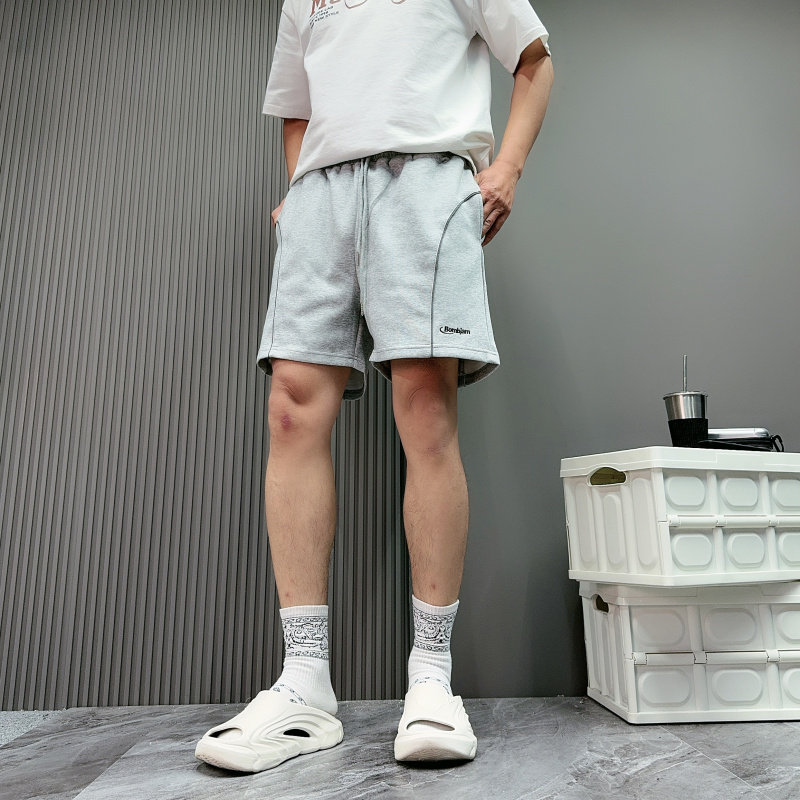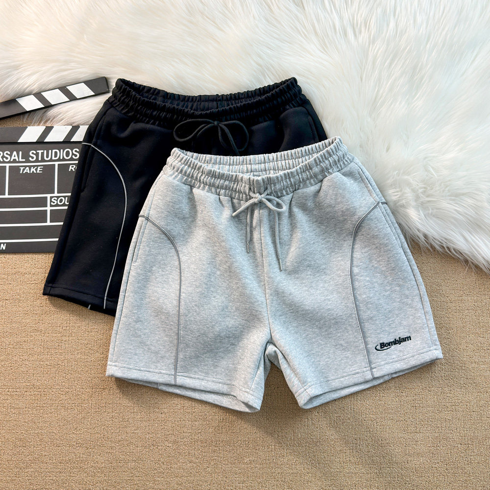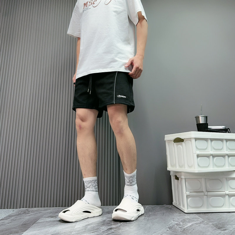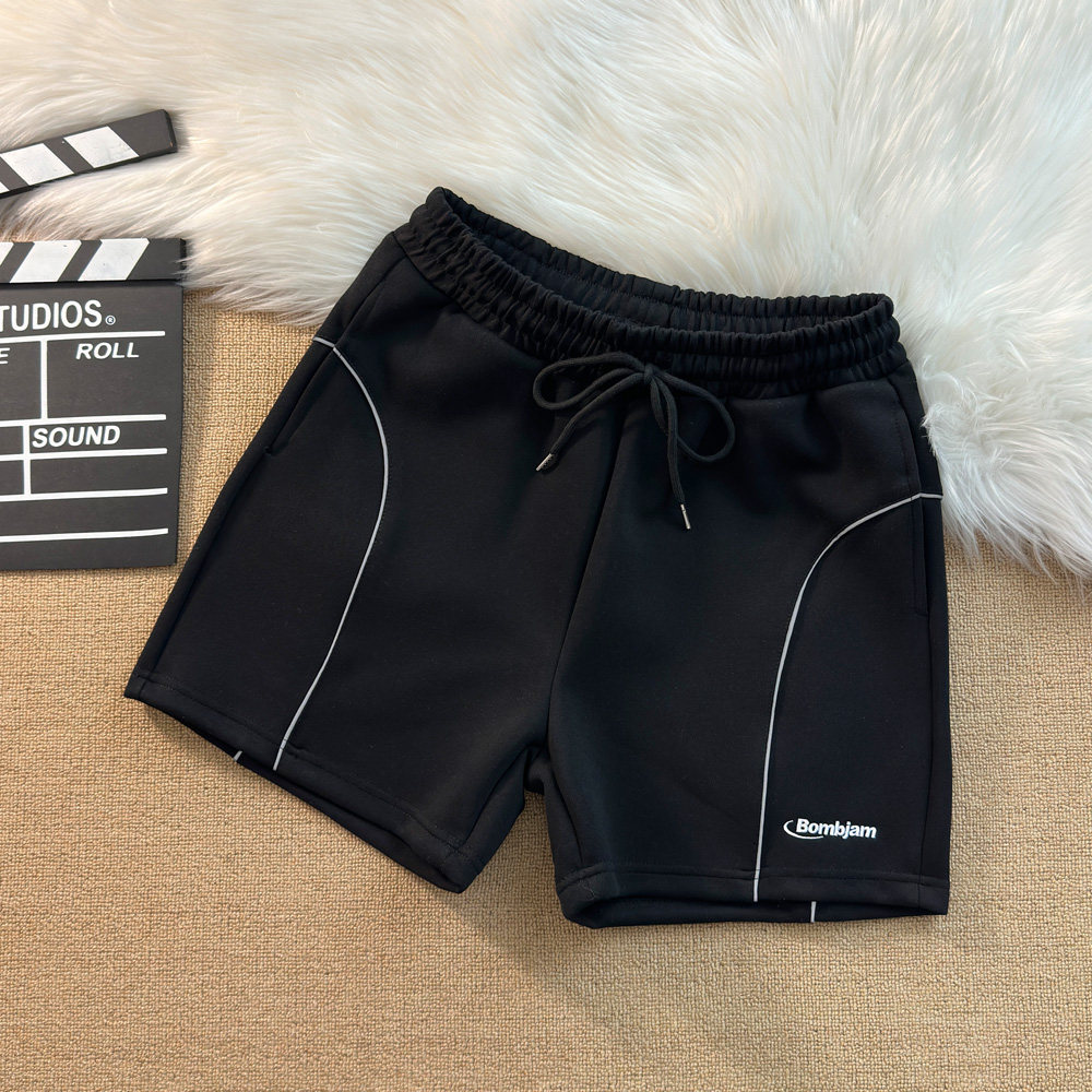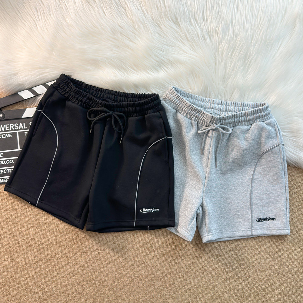 夏季新款短褲男美式刺綉字母運動跑步反光條休閒中褲四分褲子寬鬆