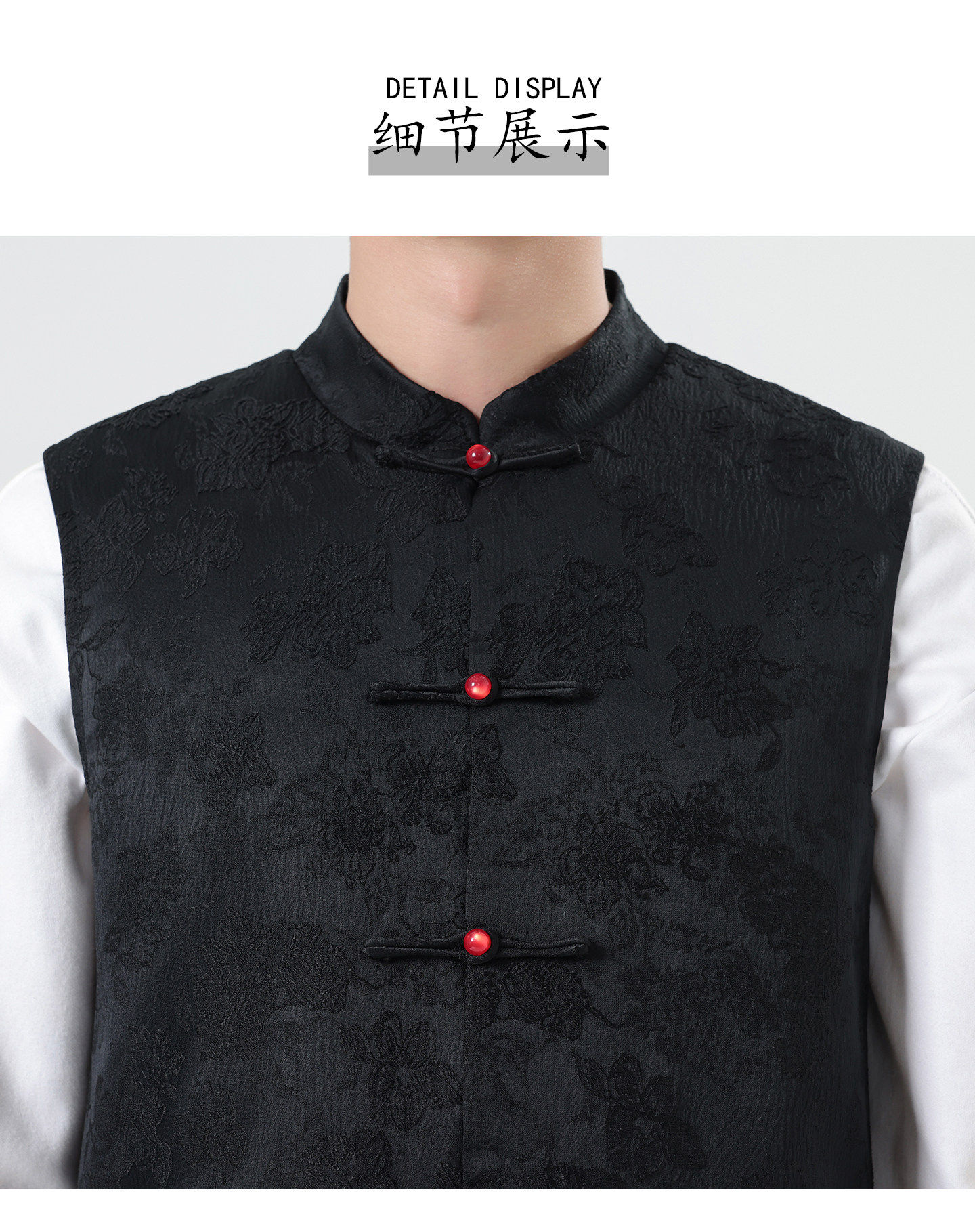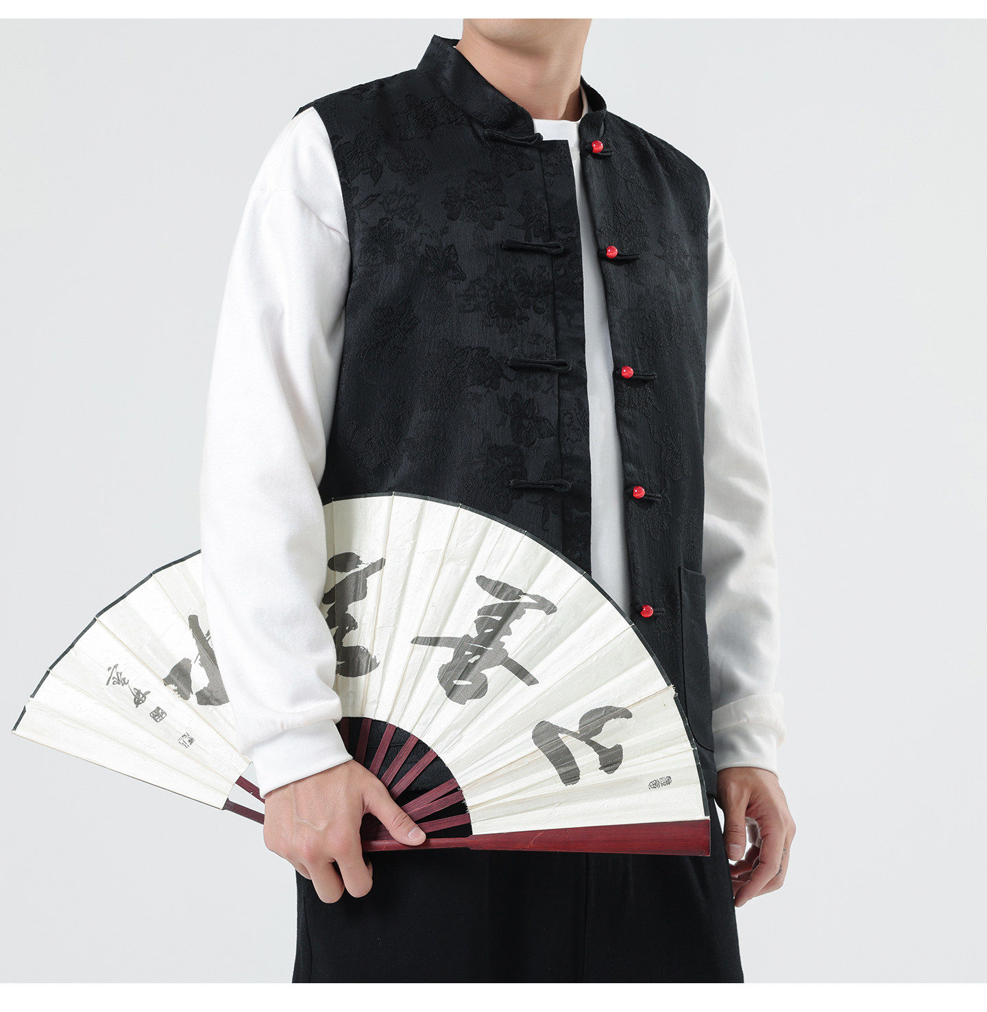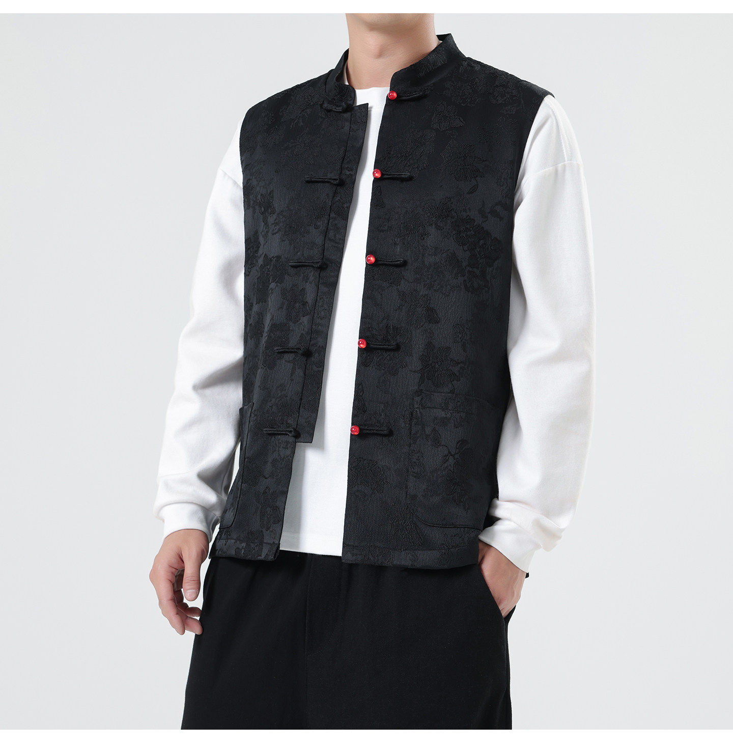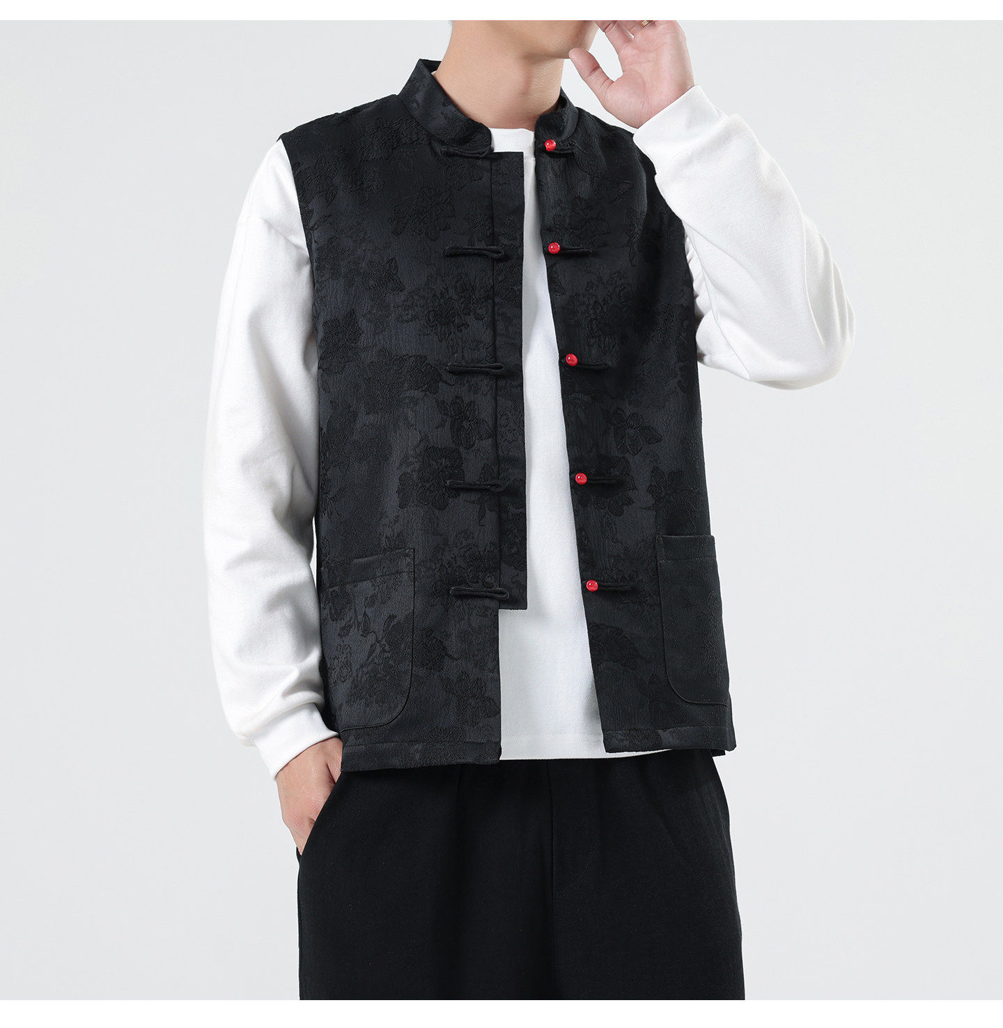 新中式復古風暗紋提花無袖唐裝馬甲風斜襟銅釦改良居士服茶服