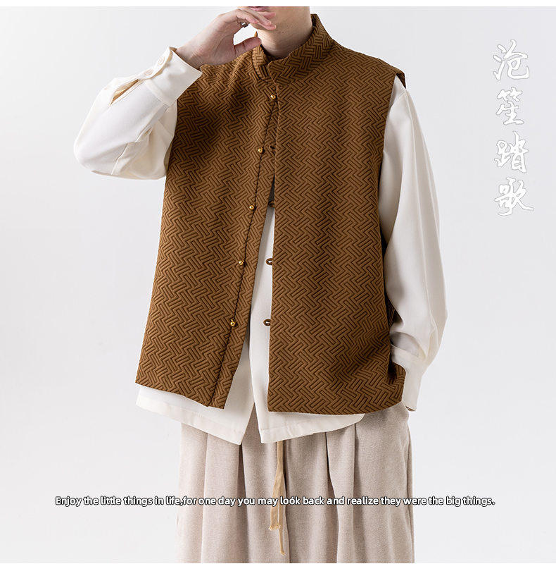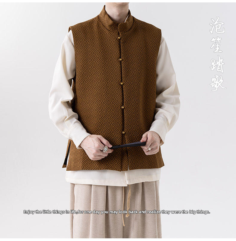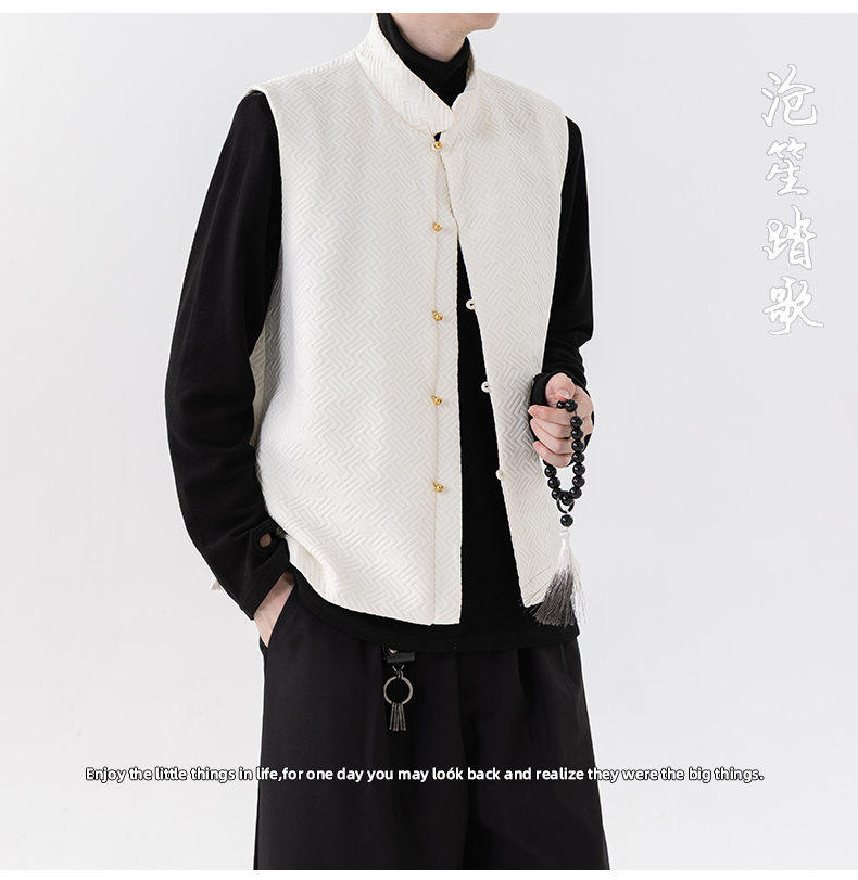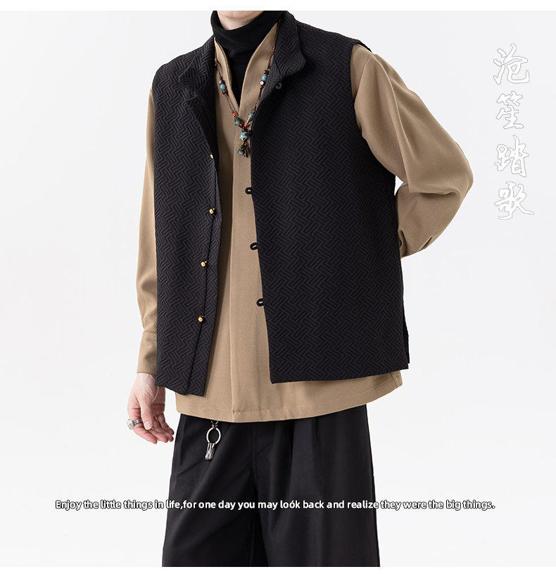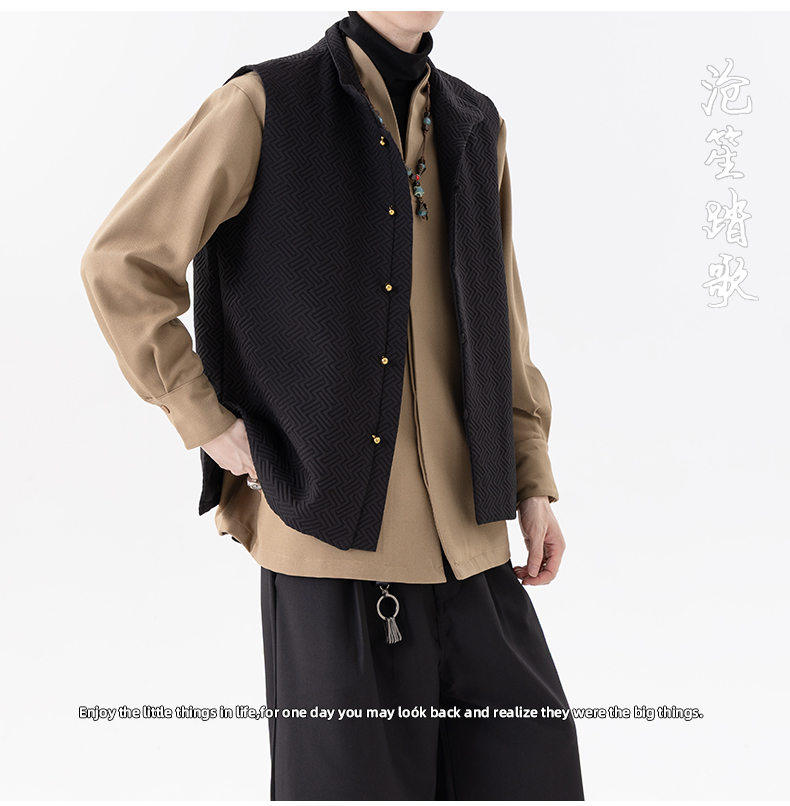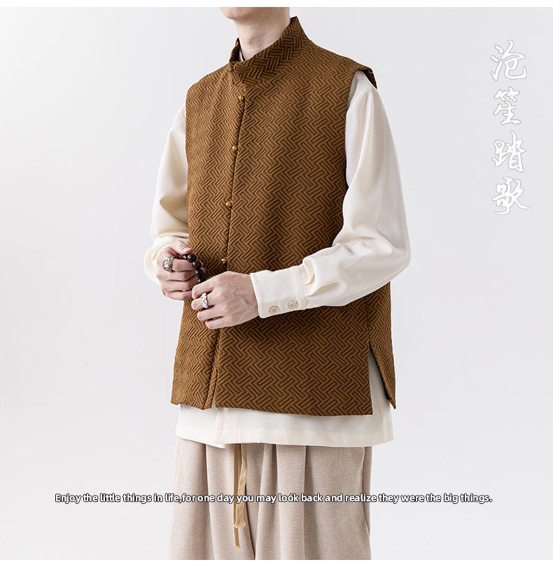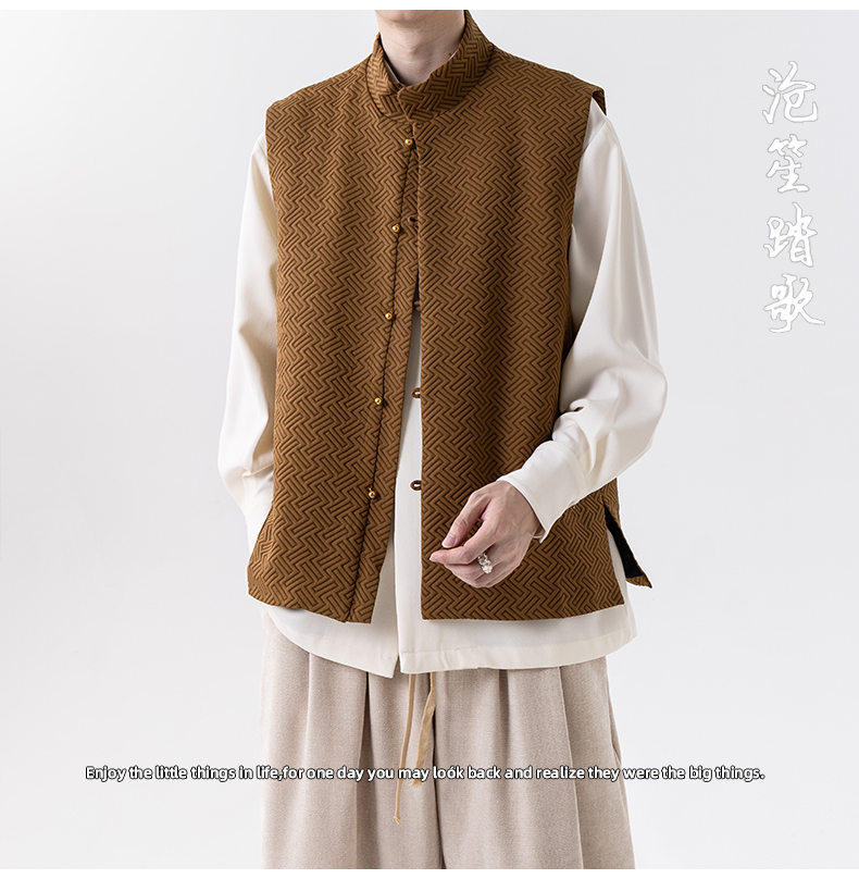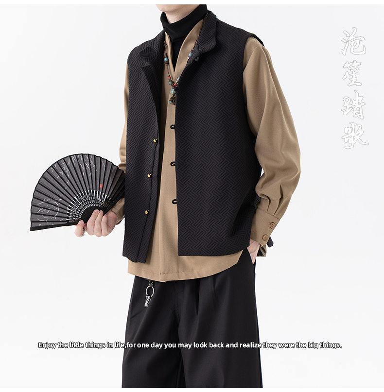 新中式春秋休閒復古唐裝馬甲外套風寬鬆大碼圓領無袖夾克上衣