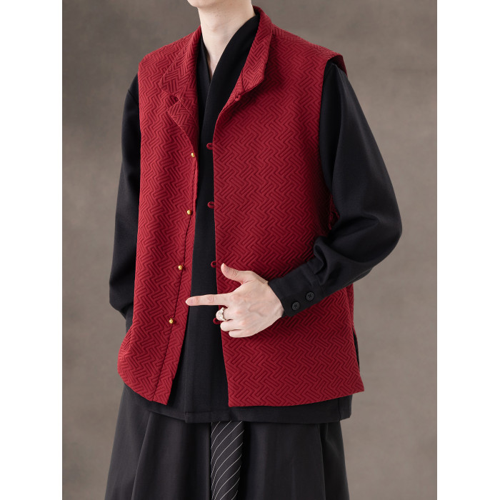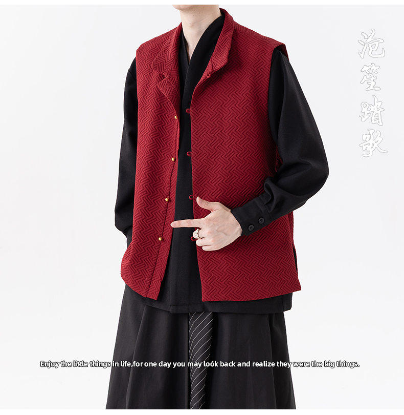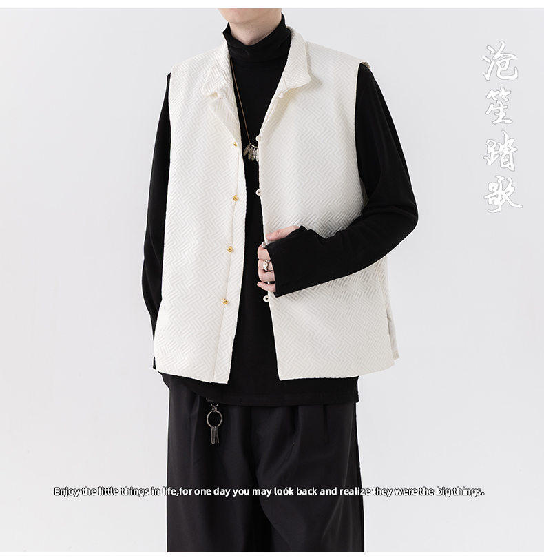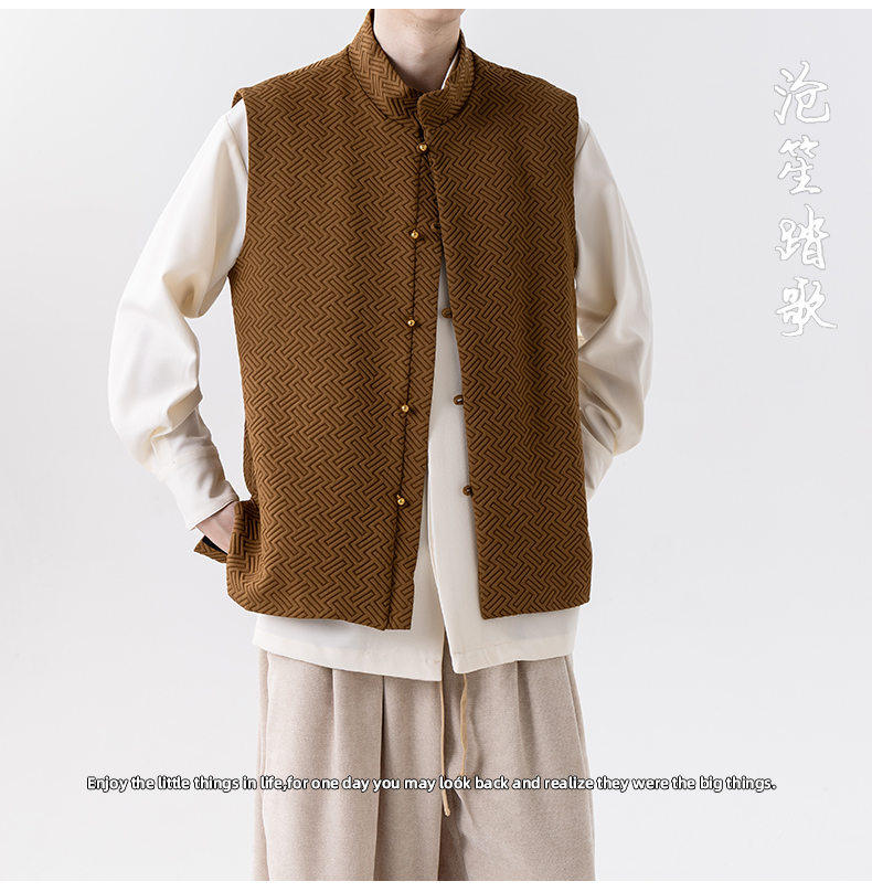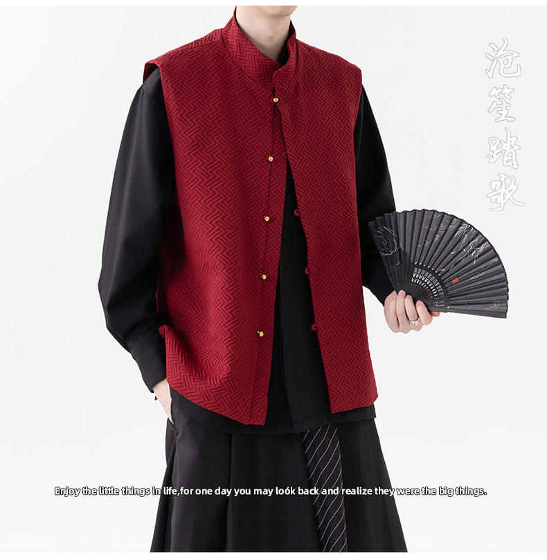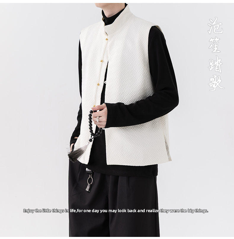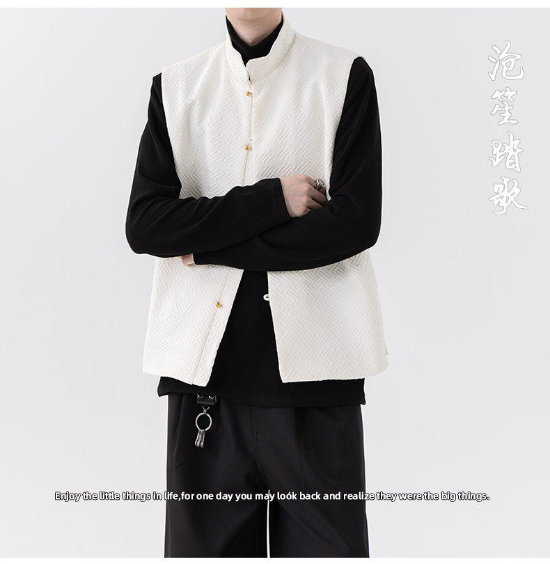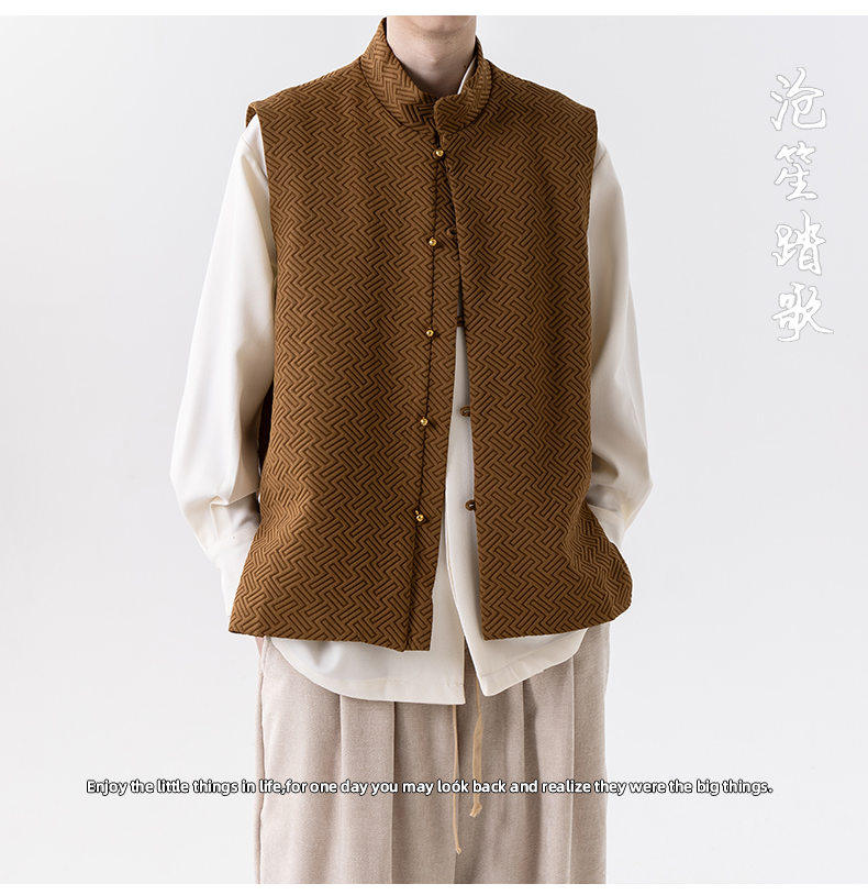 新中式春秋休閒復古唐裝馬甲外套風寬鬆大碼圓領無袖夾克上衣