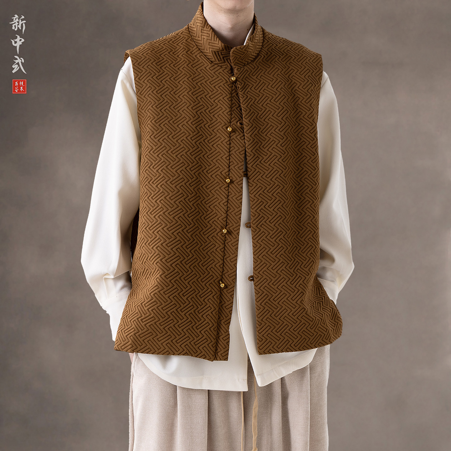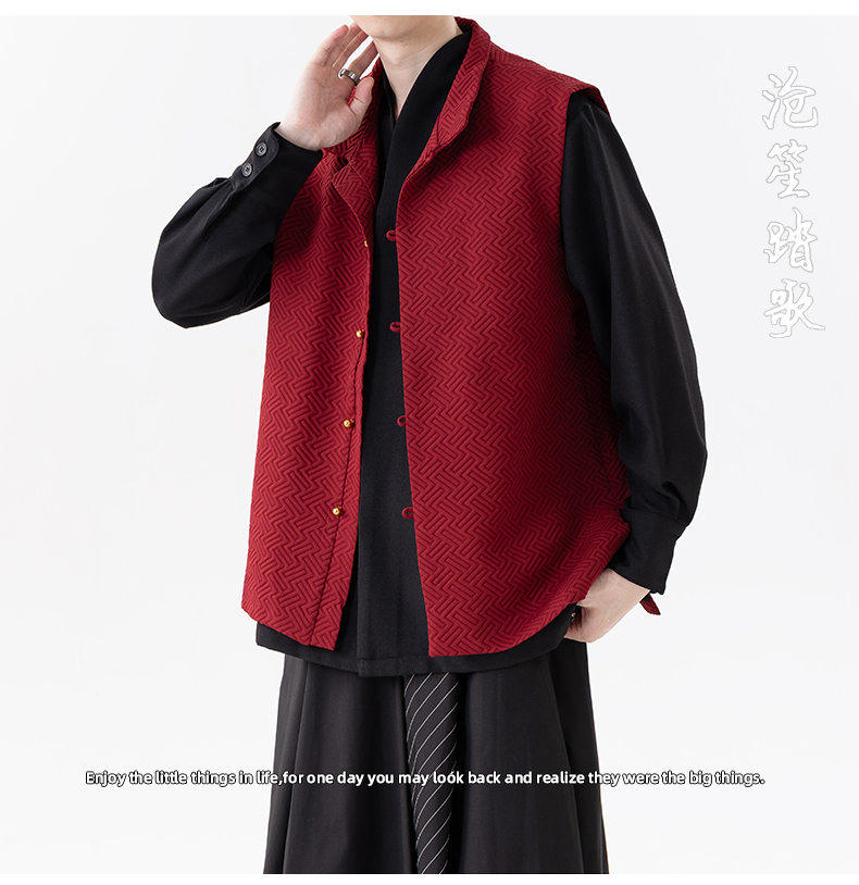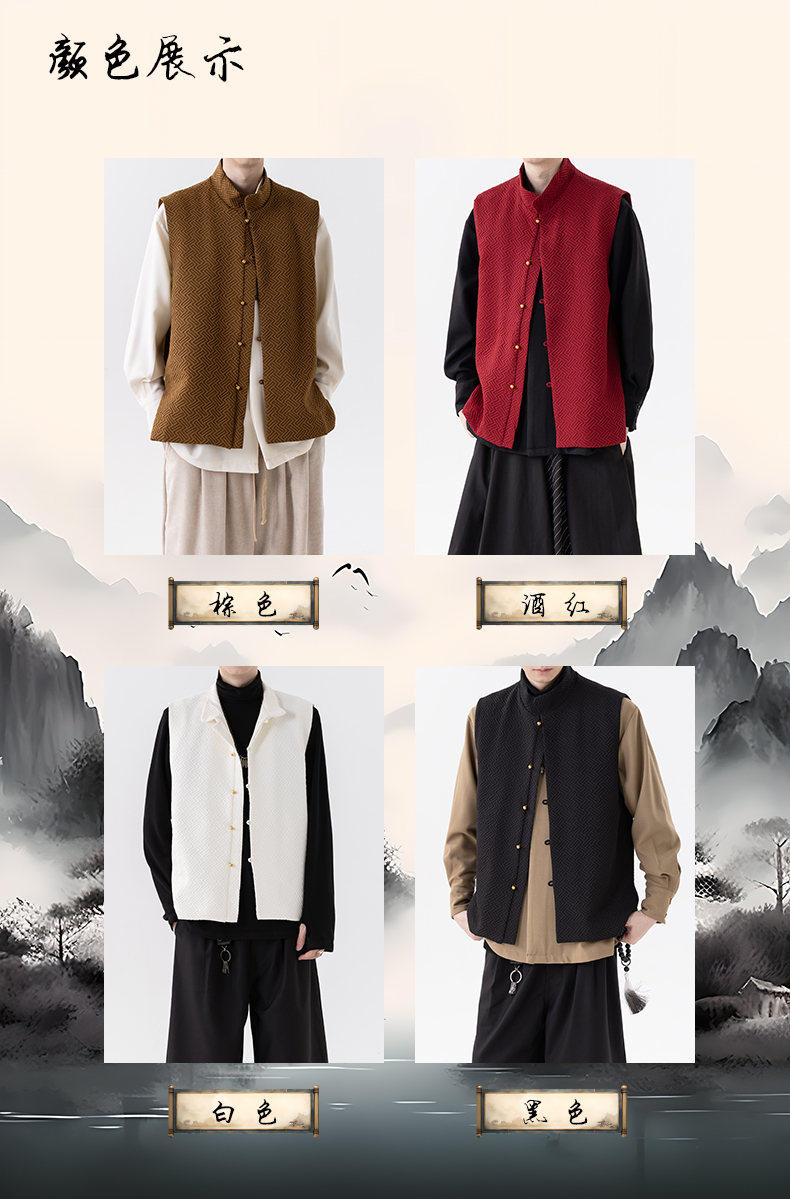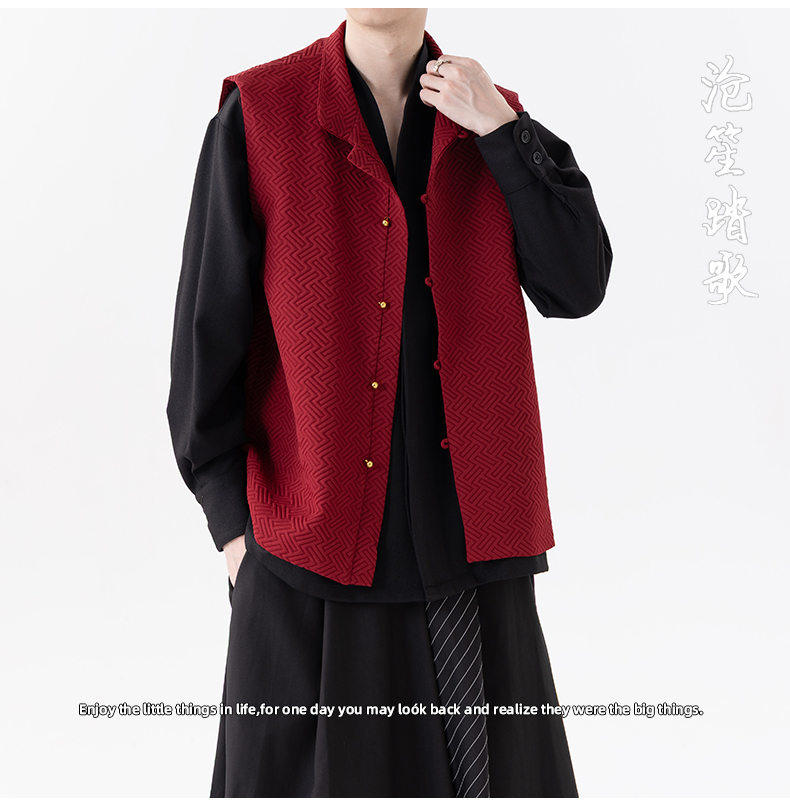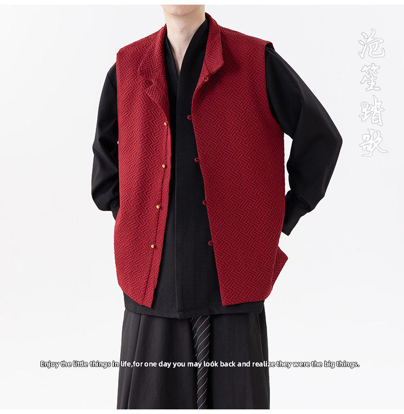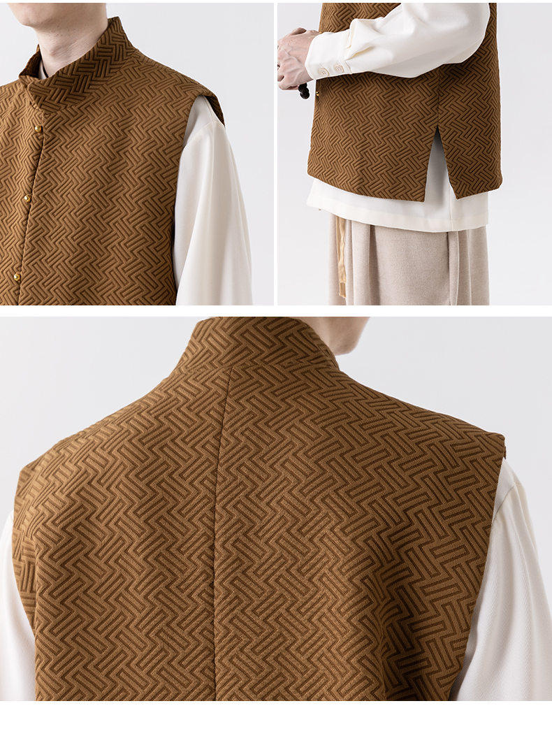 新中式春秋休閒復古唐裝馬甲外套風寬鬆大碼圓領無袖夾克上衣
