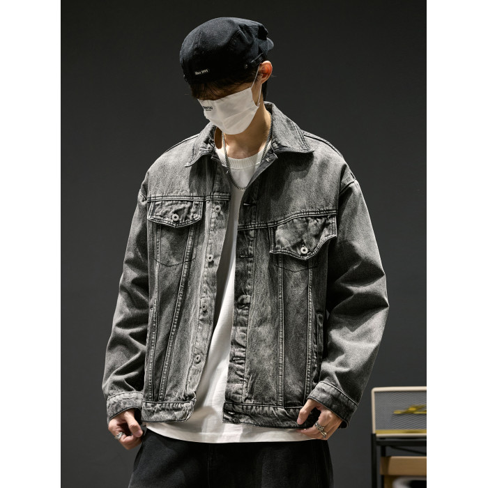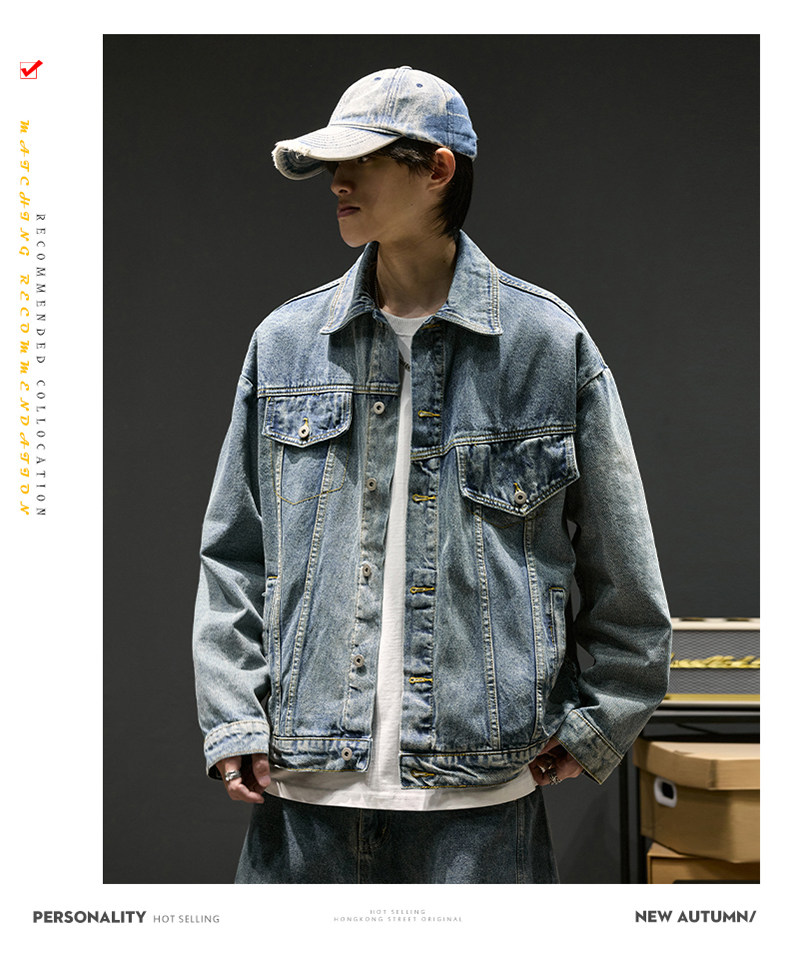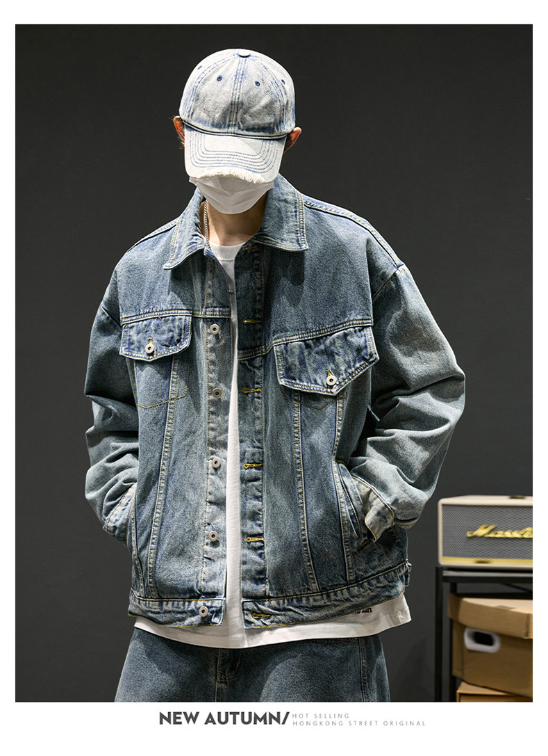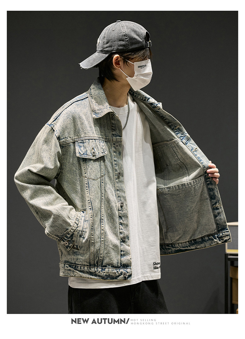 牛仔外套男春季復古水洗做舊工裝夾克ins高街痞帥男裝休閒上衣潮