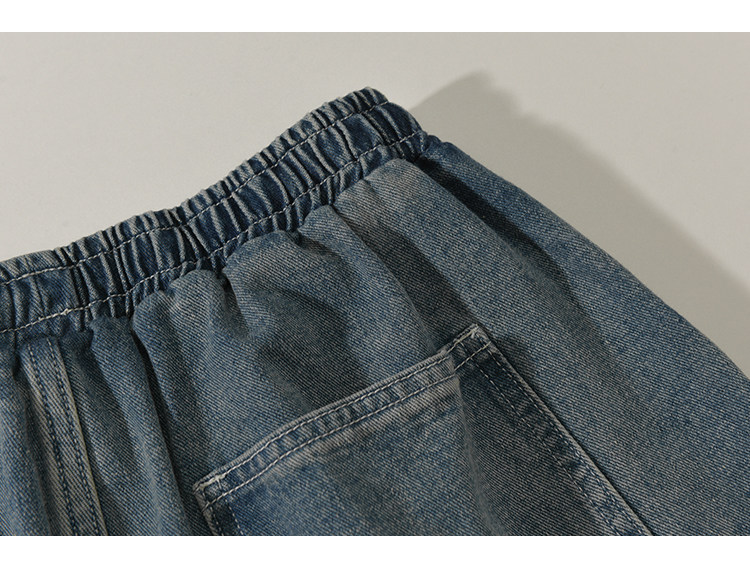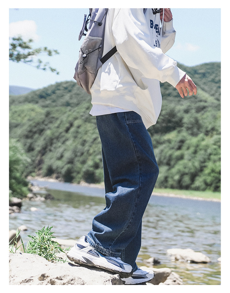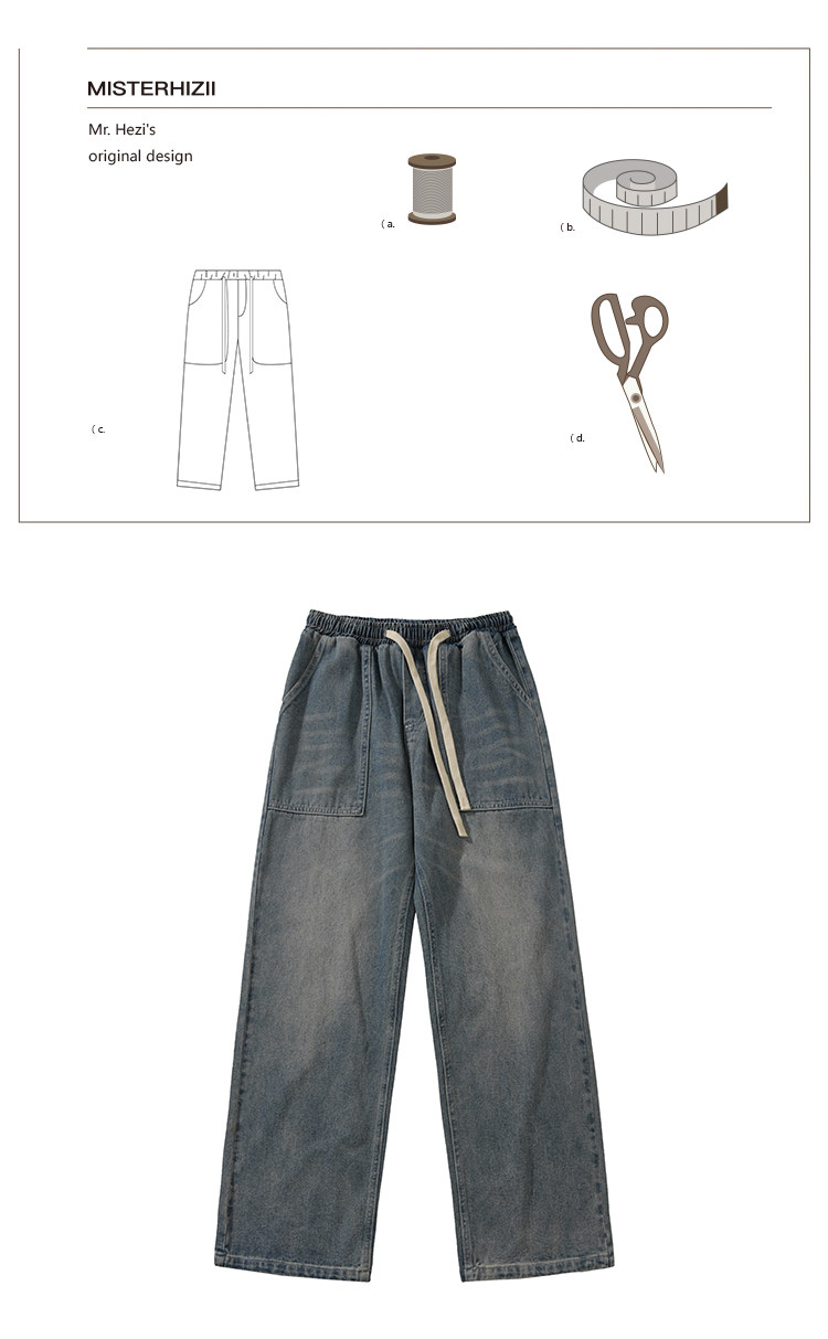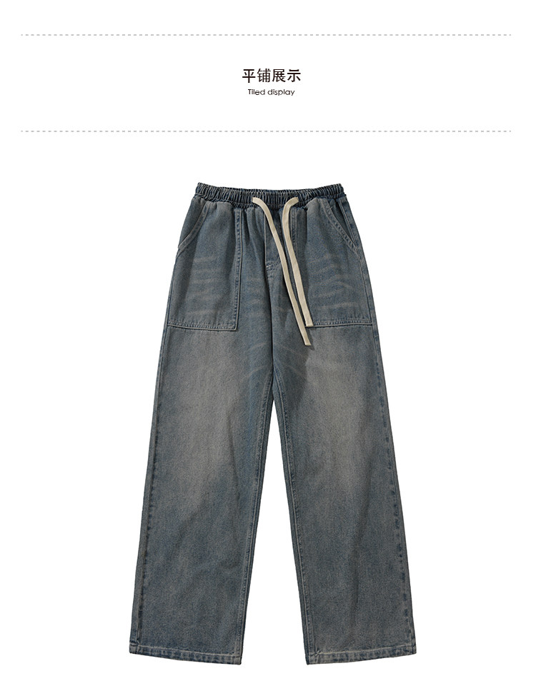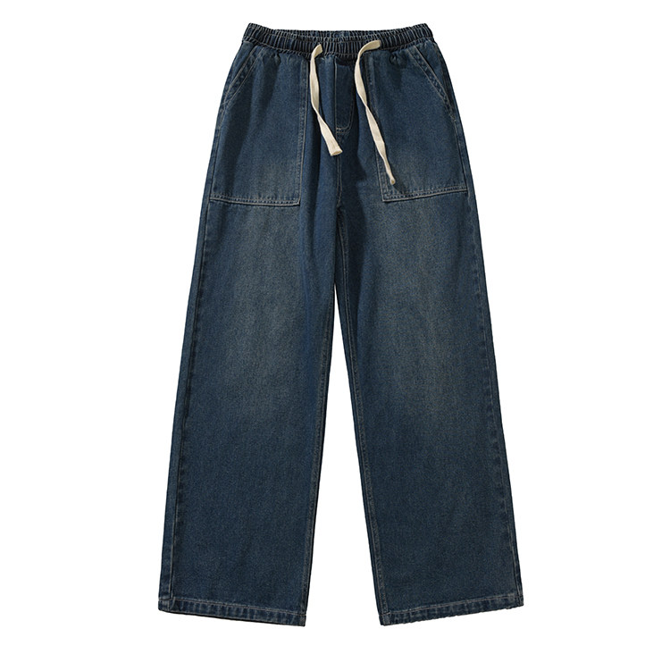 GOGOSOON牛仔褲男新款2025春秋抽繩直筒寬鬆濶腿松緊帶長褲青少年
