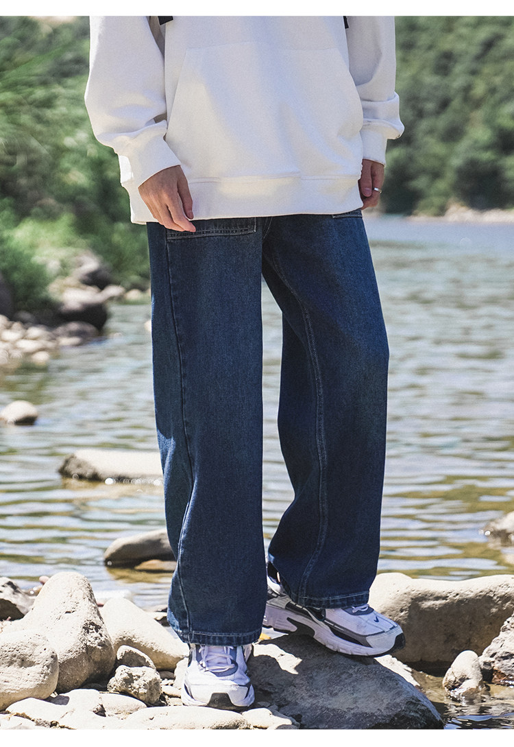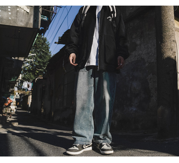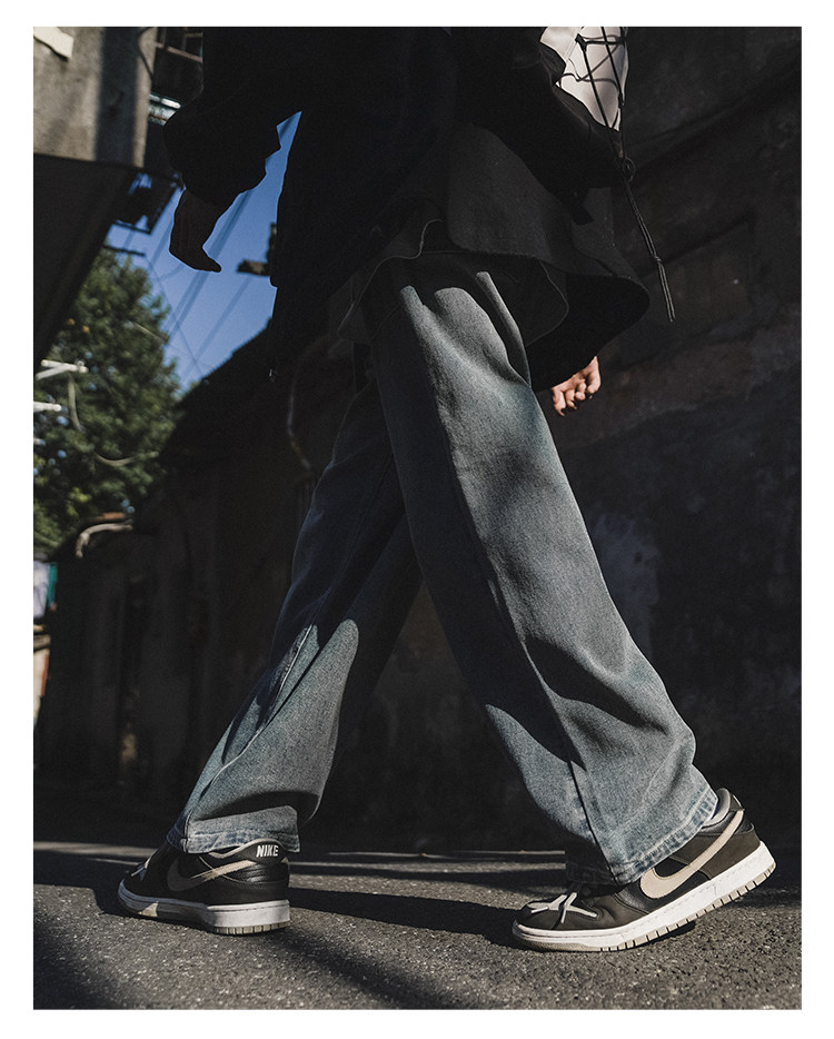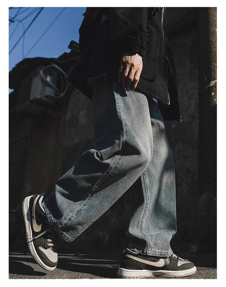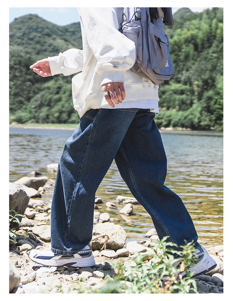 GOGOSOON牛仔褲男新款2025春秋抽繩直筒寬鬆濶腿松緊帶長褲青少年