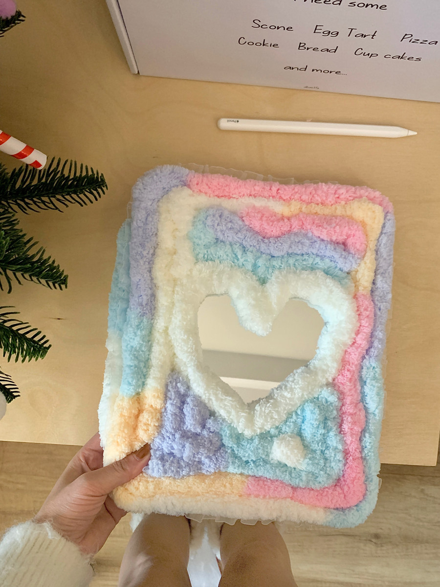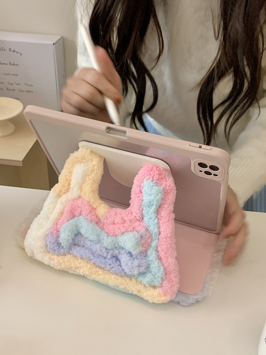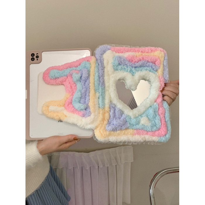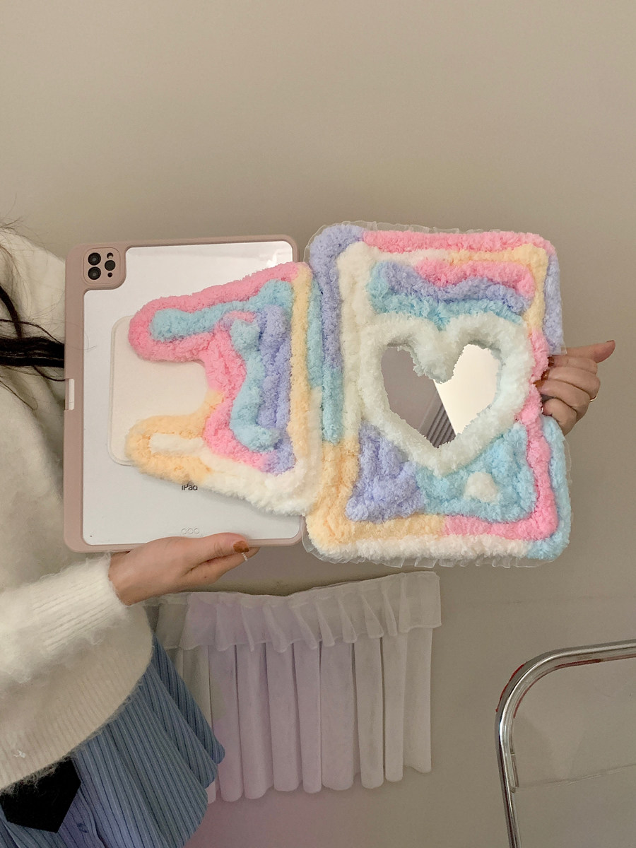 彩虹糖毛絨愛心鏡面適用iPad保護殼10代10.9寸Air76代Pro11/12.9防摔9代10.2寸9.7/10.5旋轉360度mini7平板套