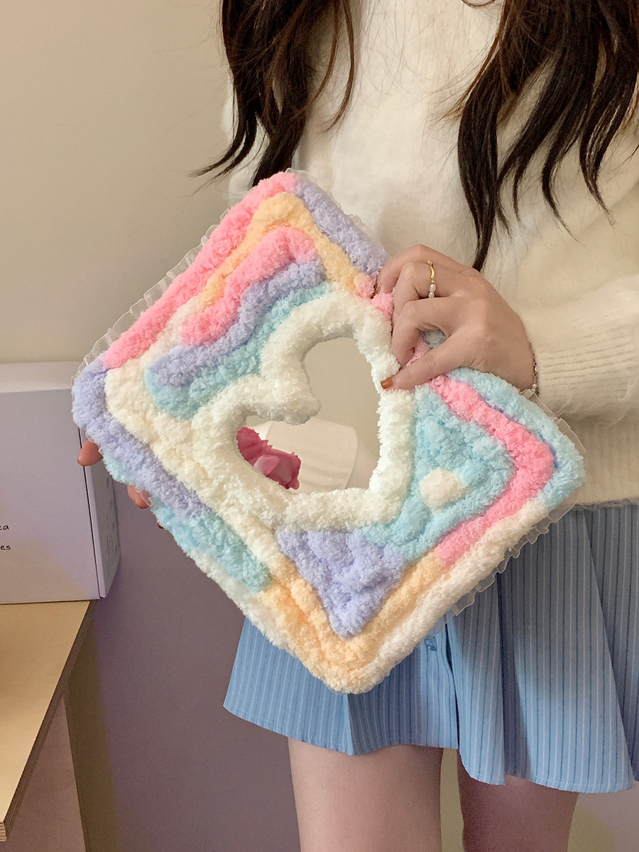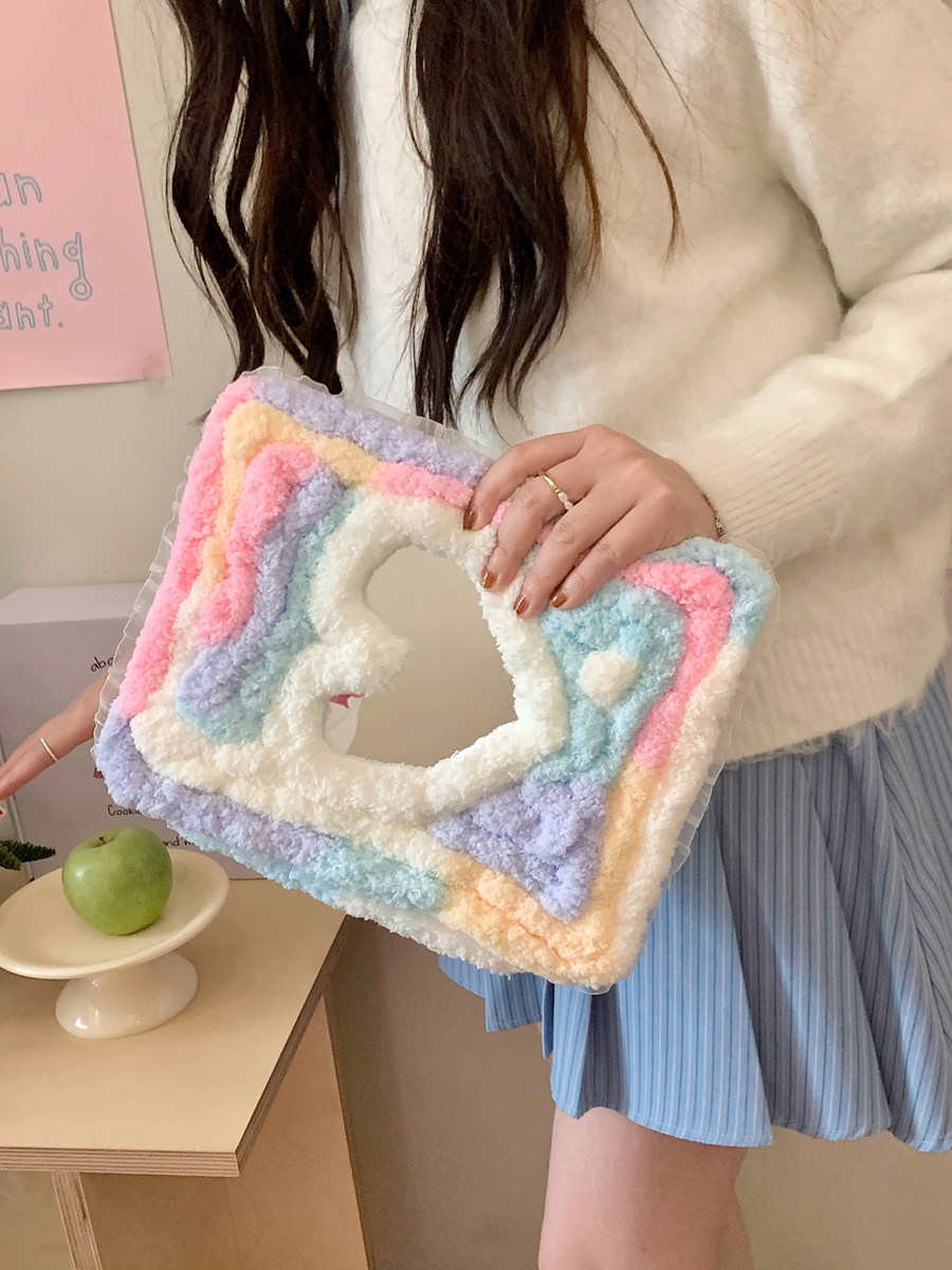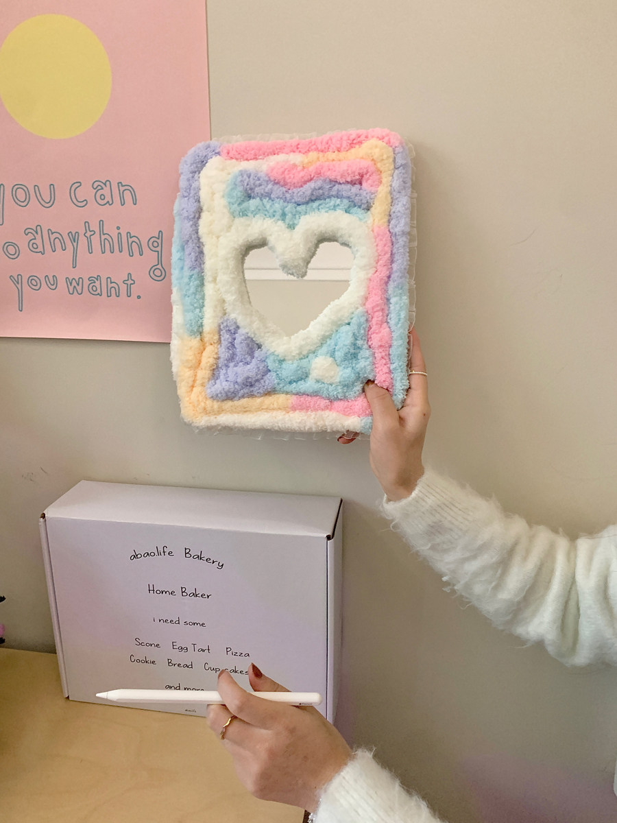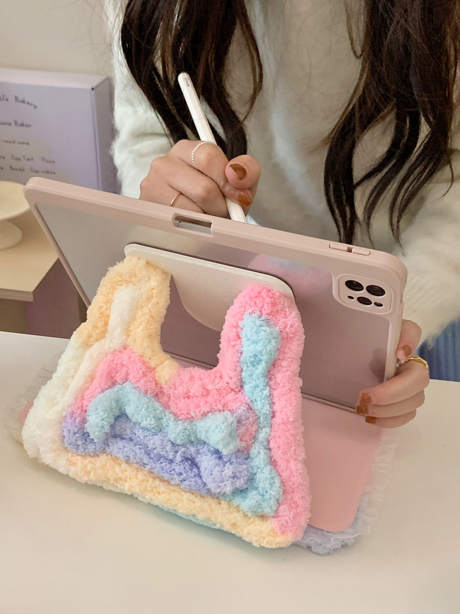 彩虹糖毛絨愛心鏡面適用iPad保護殼10代10.9寸Air76代Pro11/12.9防摔9代10.2寸9.7/10.5旋轉360度mini7平板套