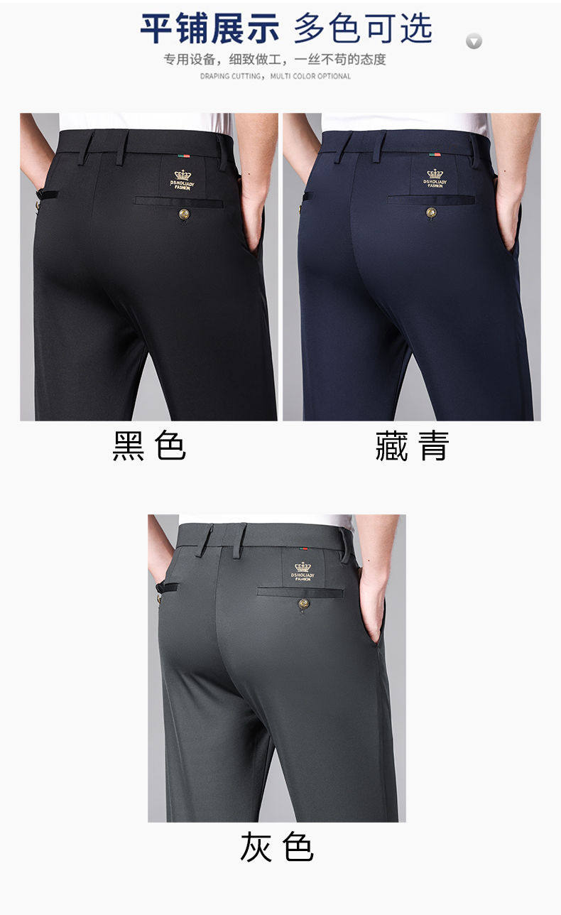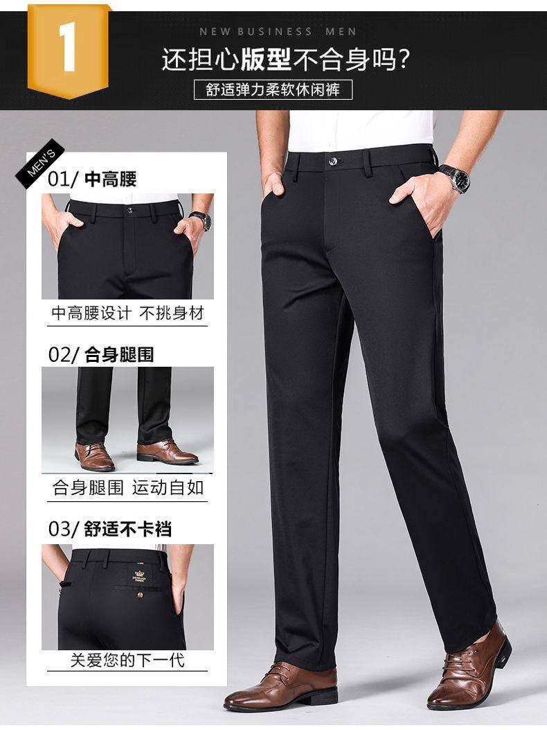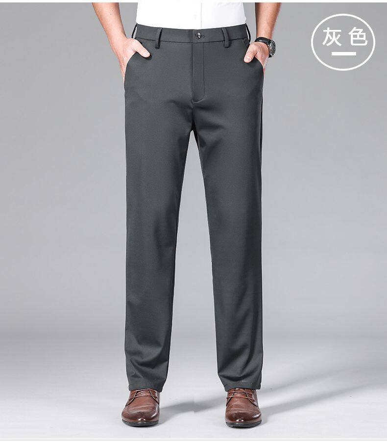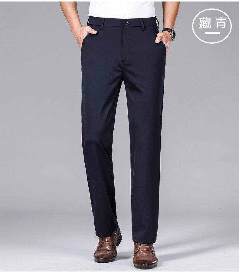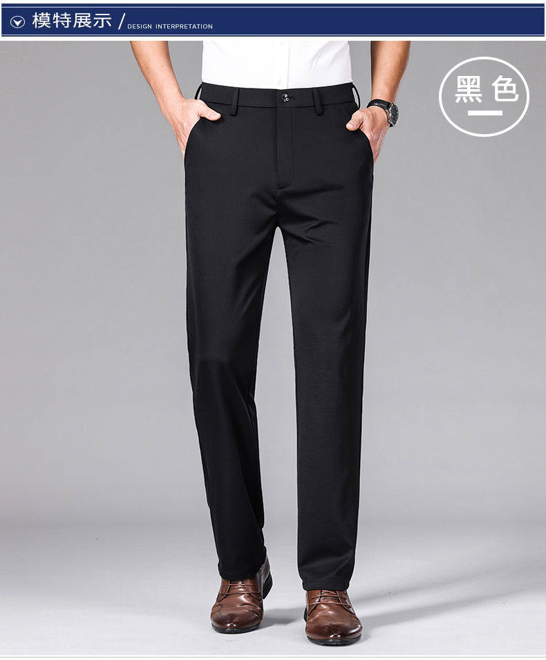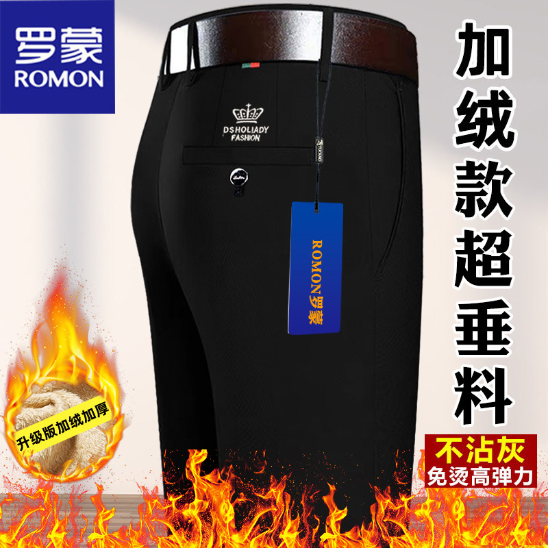 羅矇秋冬厚款彈力加絨休閒褲直筒高腰免燙寬鬆男褲子中年抗皺西褲