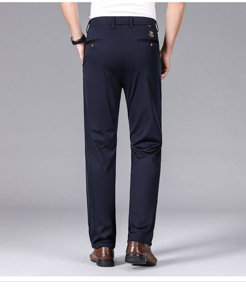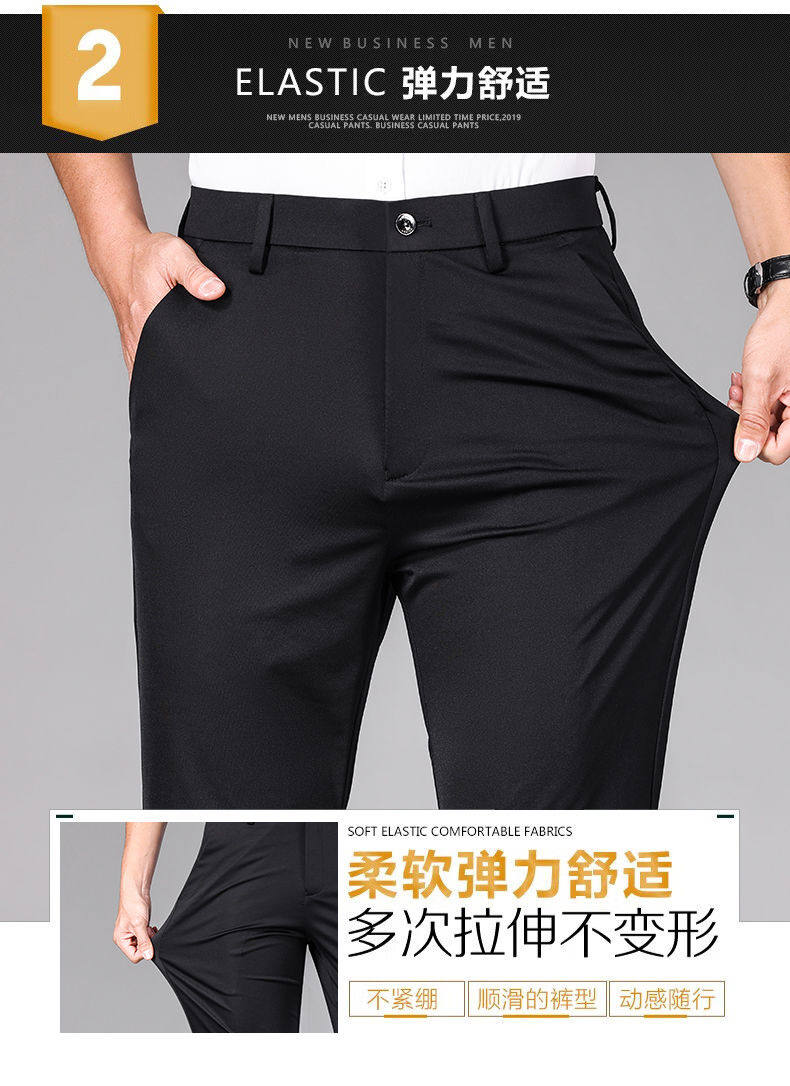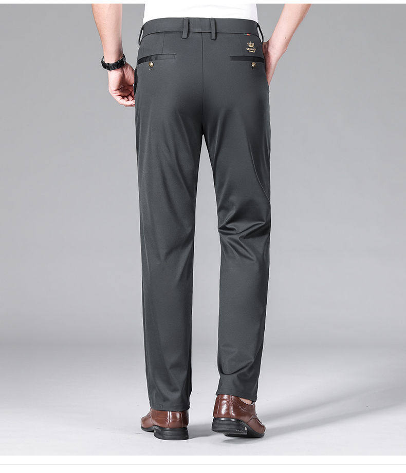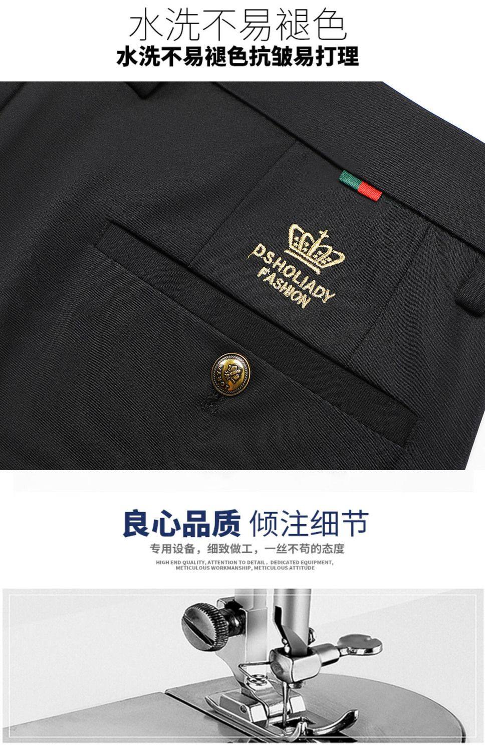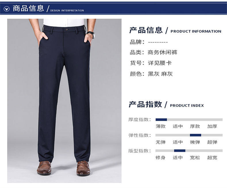 羅矇秋冬厚款彈力加絨休閒褲直筒高腰免燙寬鬆男褲子中年抗皺西褲