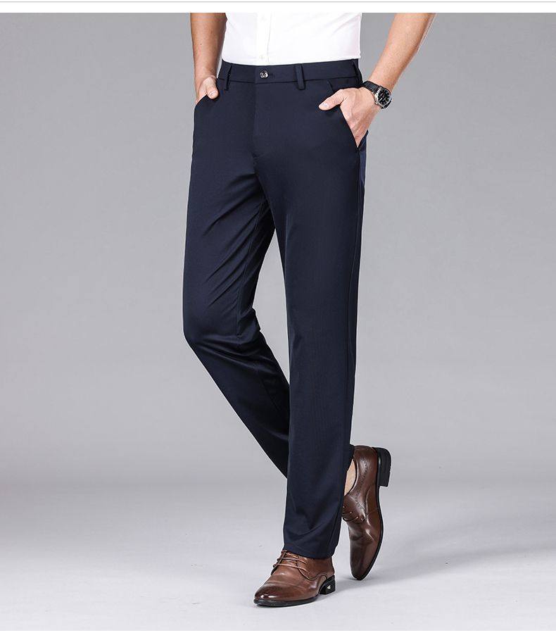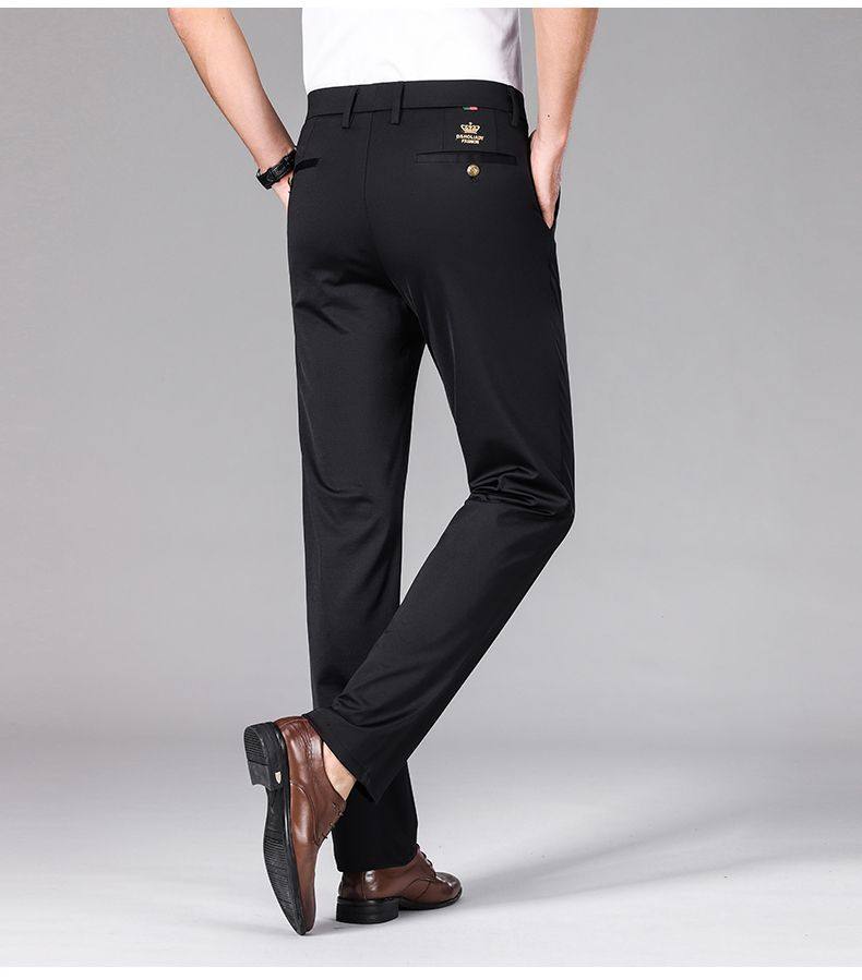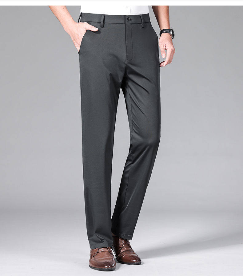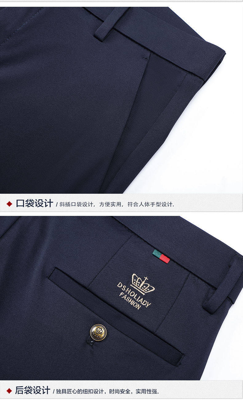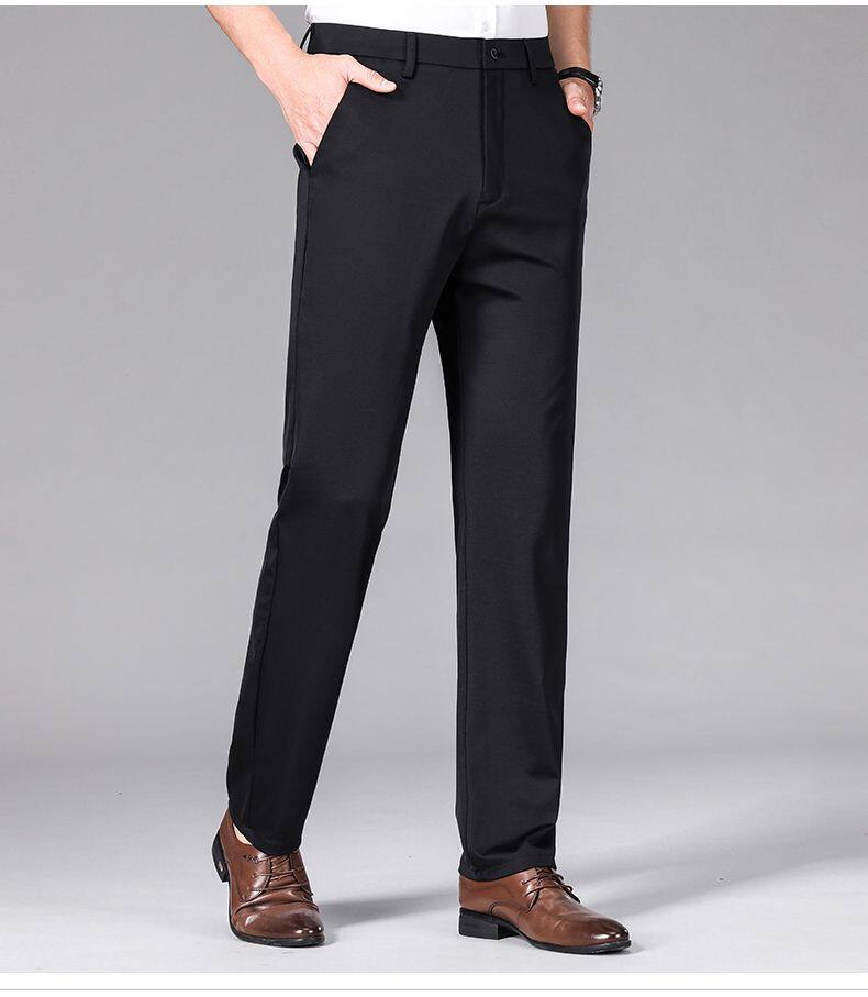 羅矇秋冬厚款彈力加絨休閒褲直筒高腰免燙寬鬆男褲子中年抗皺西褲