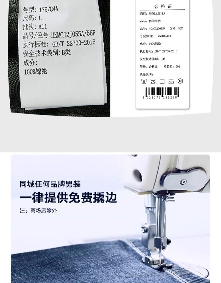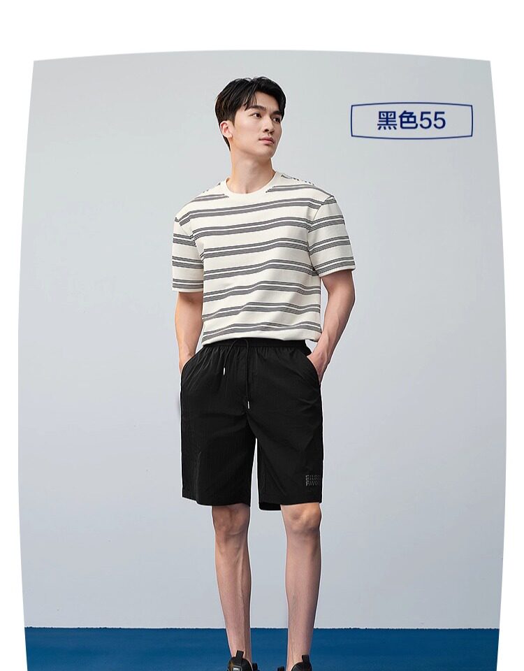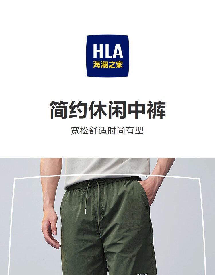 HLA/海瀾之家時尚寬鬆休閒短褲春夏簡約印花舒適五分褲子男