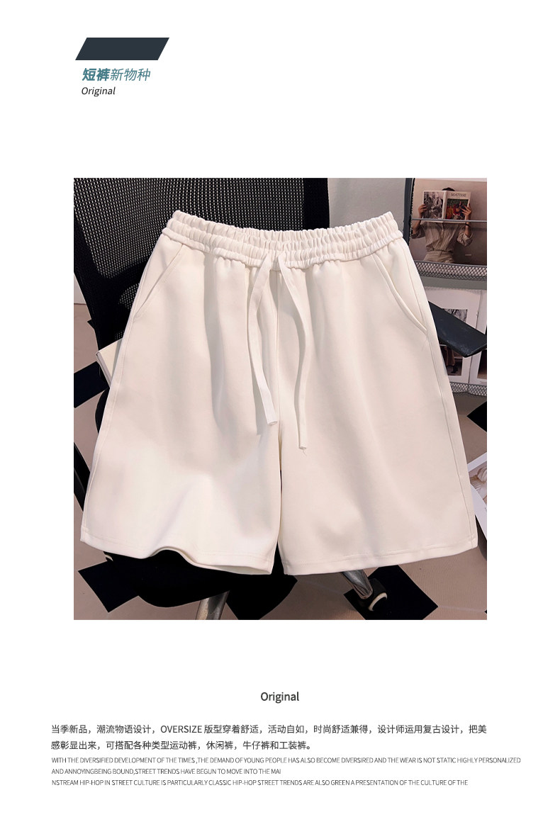 美式hiphop潮牌街頭百搭籃球運動短褲男夏季抽繩純色簡約五分褲