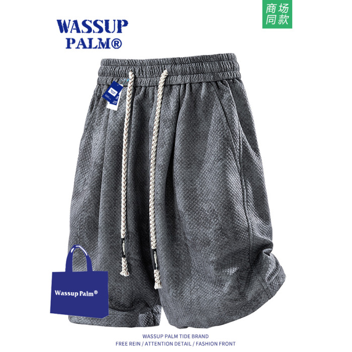WASSUP PALM短褲男2025新款夏季紥染薄款美式潮牌寬鬆大碼五分褲