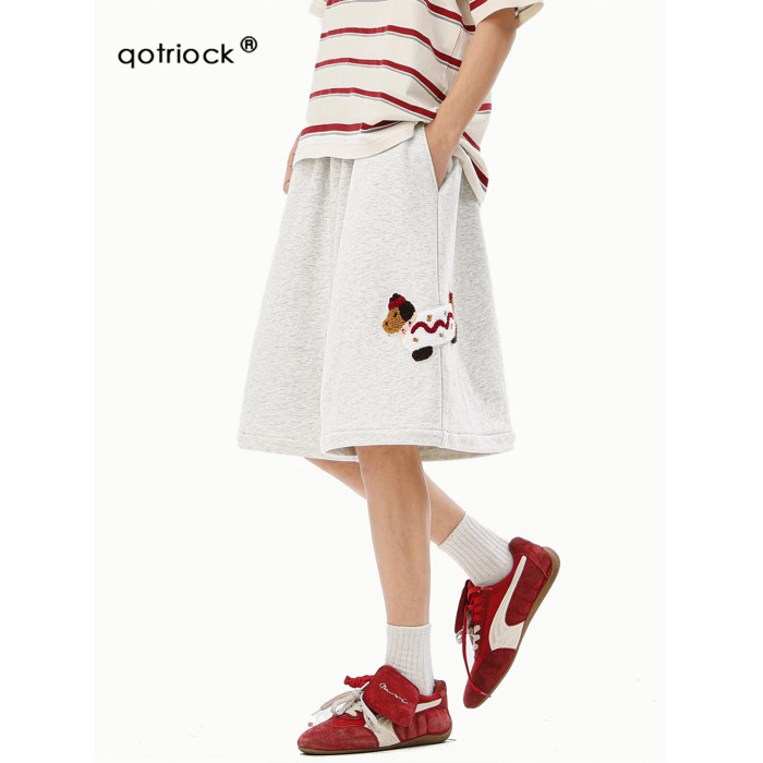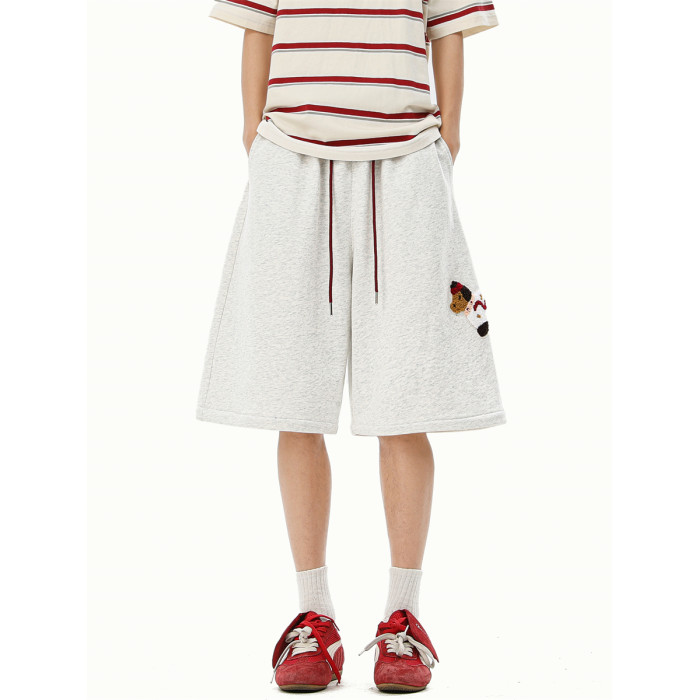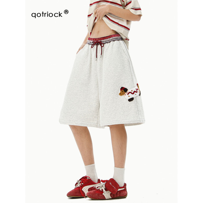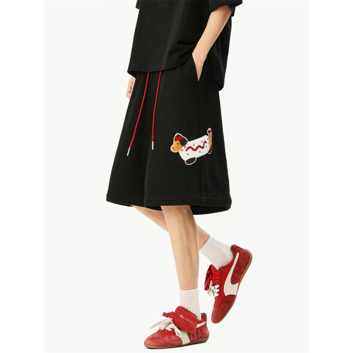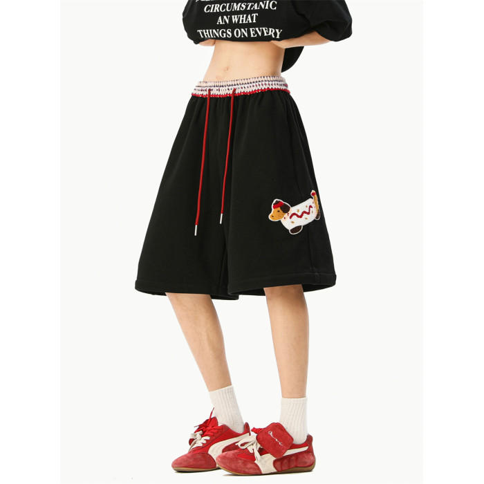 美式臘腸狗立體貼布短褲男夏季潮牌設計感撞色五分褲休閒情侶衛褲